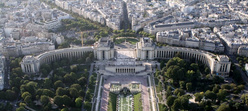 Trocadero square, garden, and Palais de Chaillot, Palais de Chaillot, A first building was erected there for the 1878 Expo. The semi-circular structure was kept and reused for a new building, the Palais de… Statue of Foch, a general who fought for France during World War I. Roland Garros stadium Labels
