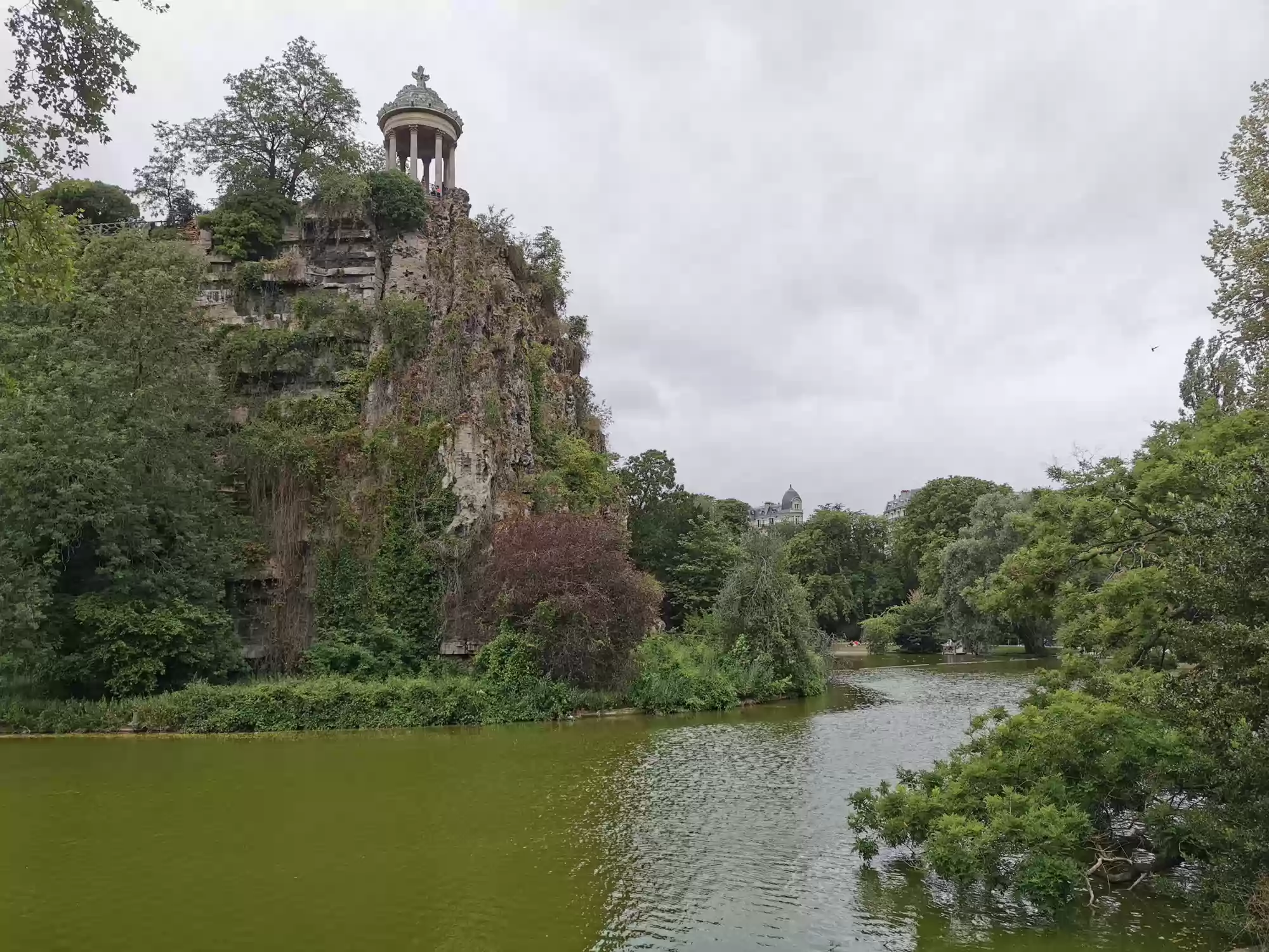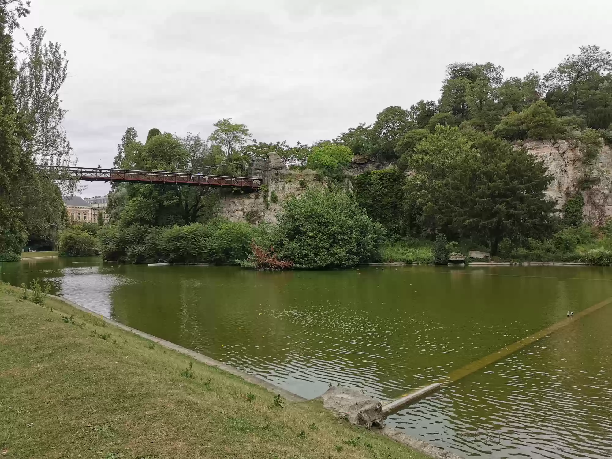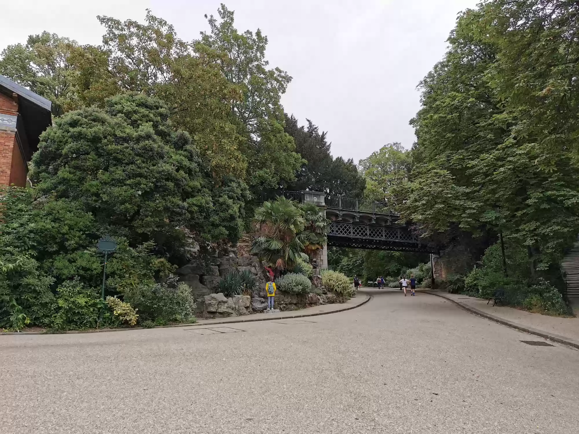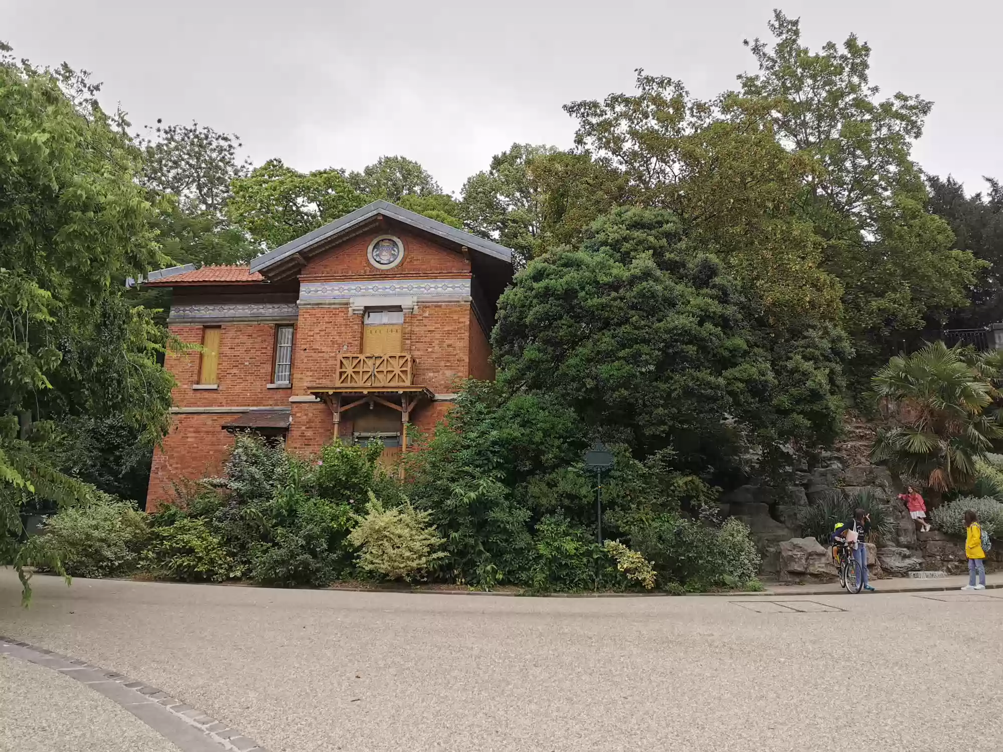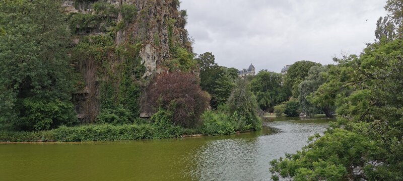 Buttes-Chaumont park, commissioned in 1864 by Napoleon III for the 1967 Paris universal exhibit. Eiffel bridge. Tivoli rotunda. Tivoli rotunda. Great cascade. Petite couronne railway, a circular train line around Paris no longer in used. Espace Niemeyer Labels