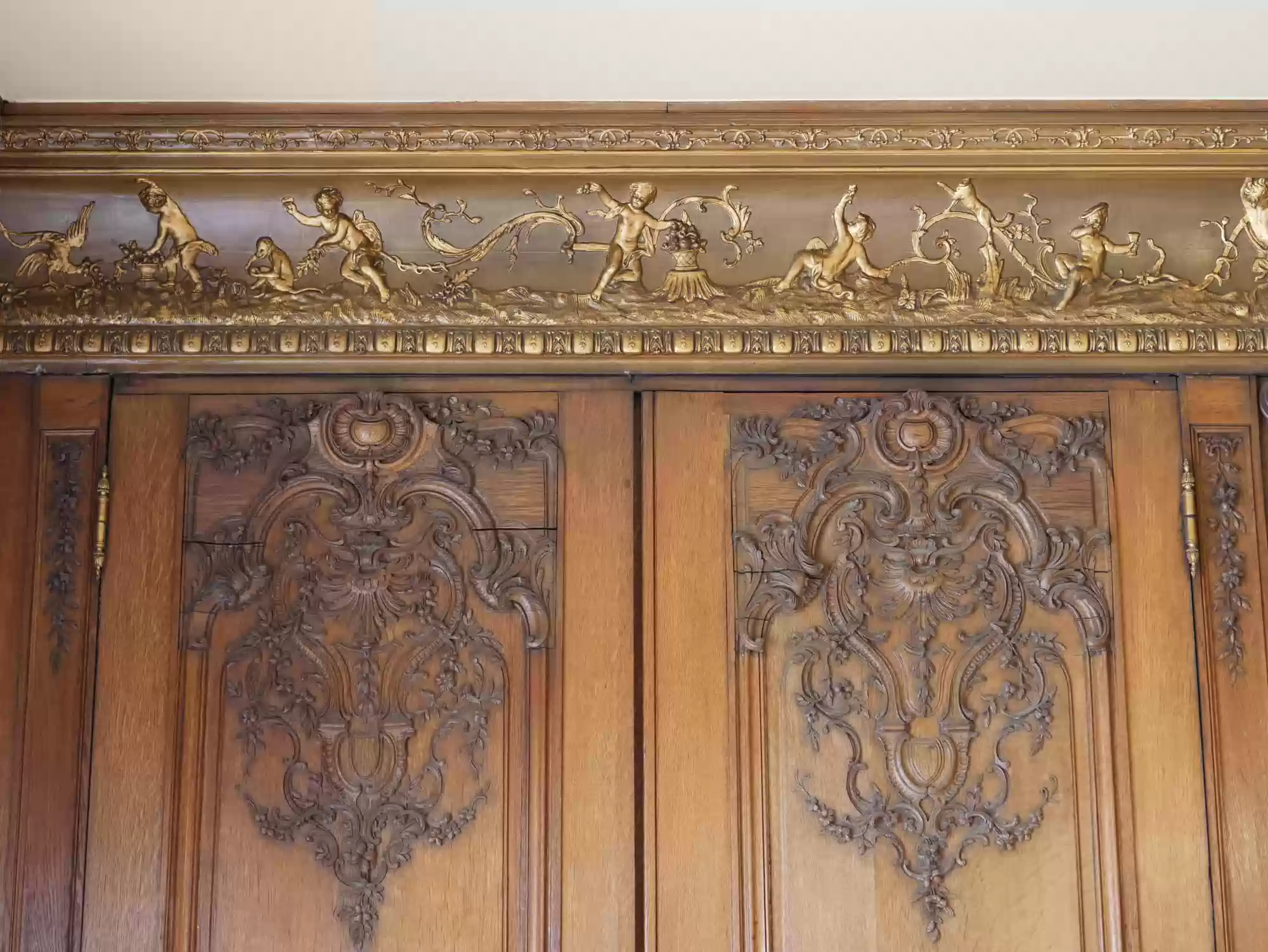 Grand Room, wooden panelling remade in the mid 19th century, after an 18th century design.
