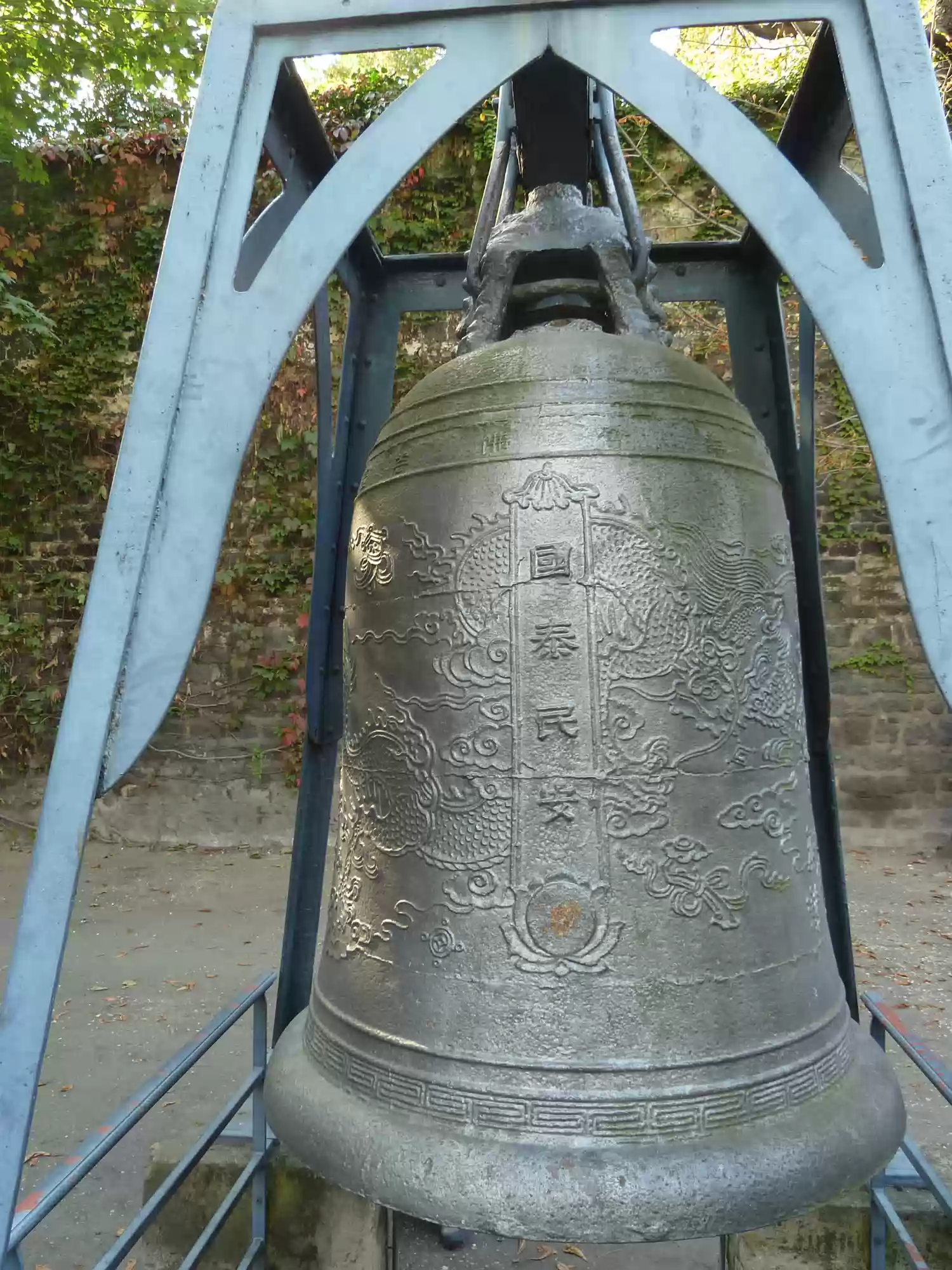 Chinese bell dedicated to Kouan-in (goddess of goodness) in 1721 and brought back from Guangzhu in 1858.