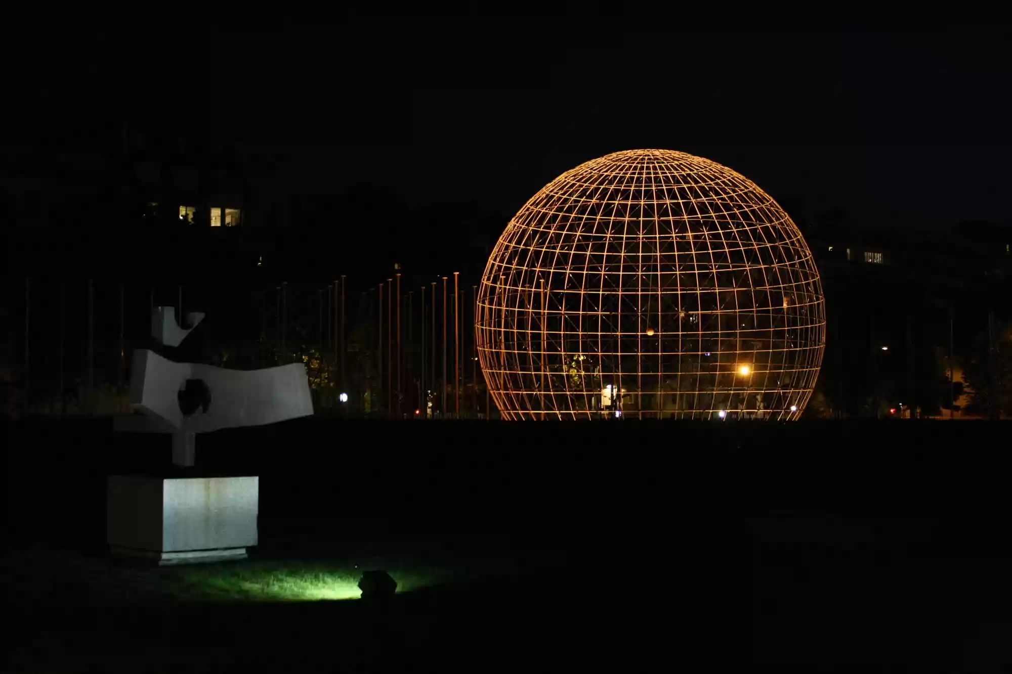 Aluminum sphere by Danish artist Erik Reitzel, 1995.