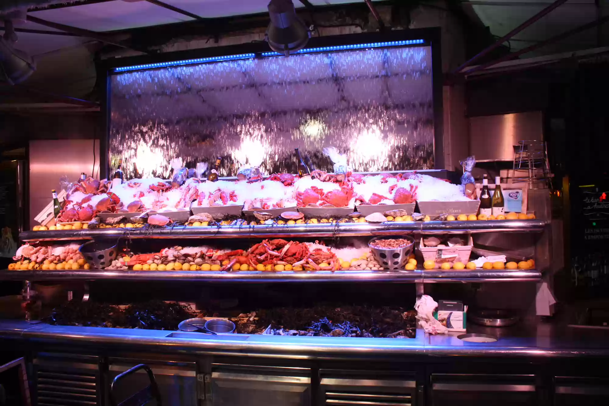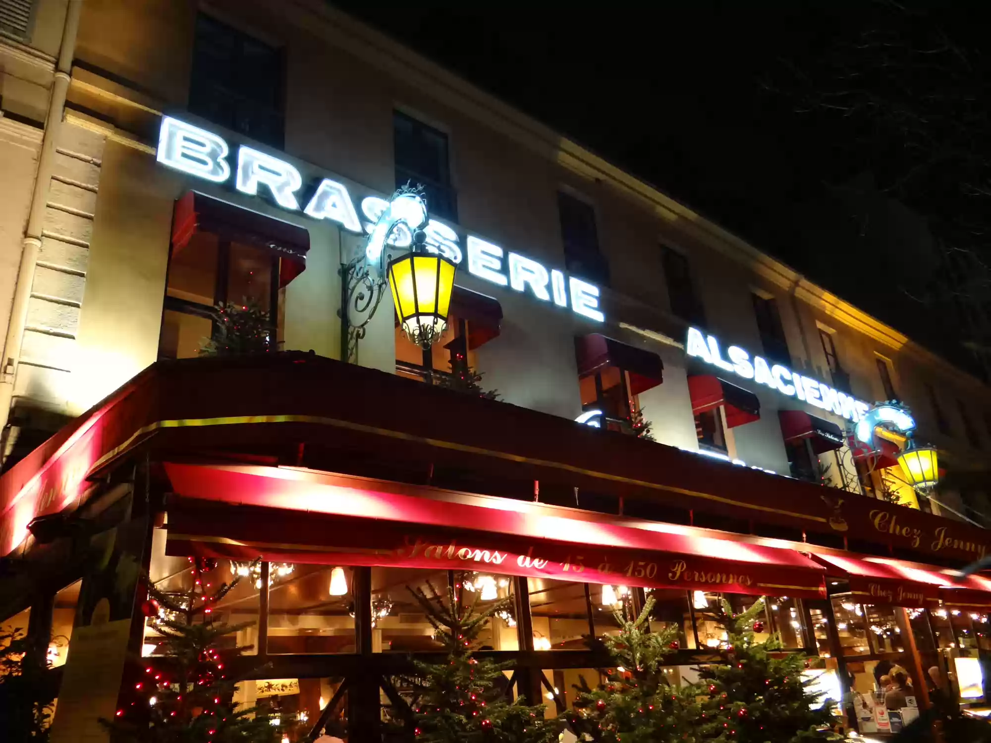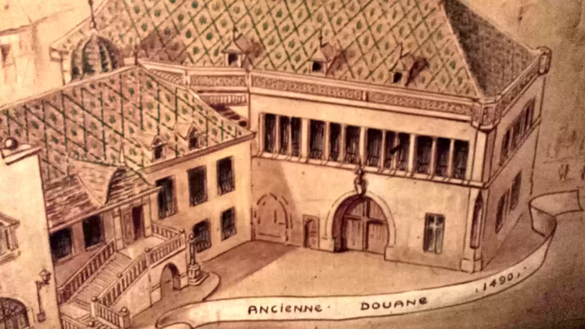 Restaurant room at Jenny's, mid 19th century. The map in the background depicts Colmar in Alsace.