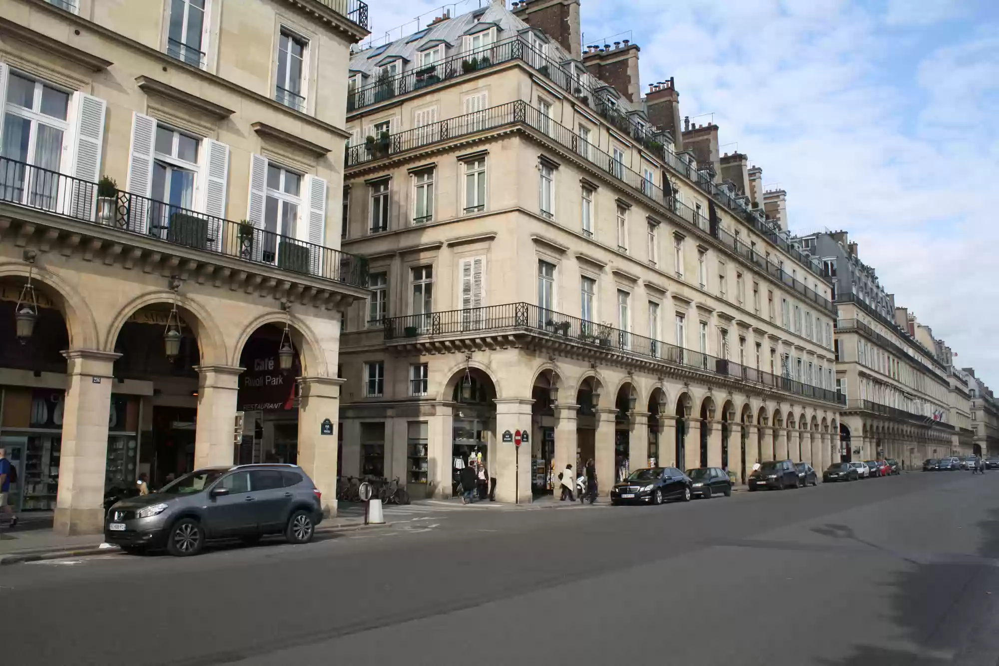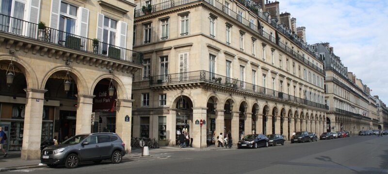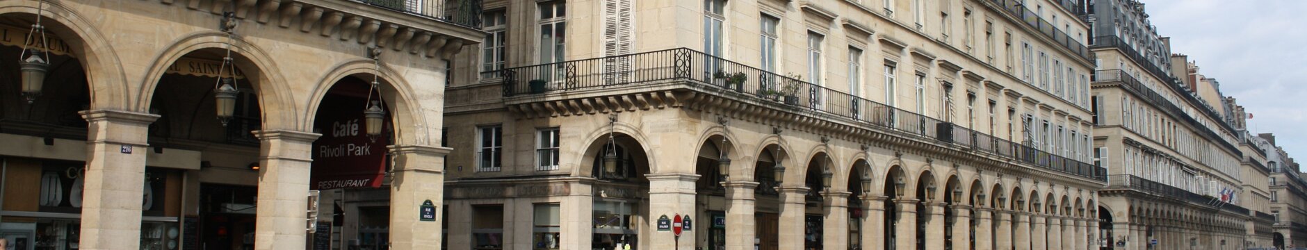 Rivoli street, across Le Louvre and the Tuileries gardens.