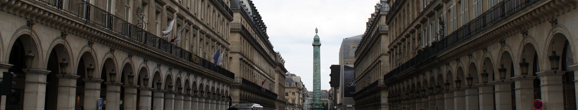 Vendôme column on Vendôme square, 1699. Ministry of Justice (center) and Ritz hotel (right). Vendôme column, 1875, 42 meters tall. On top: statue of Napoleon, 1863. Vendôme column. Vendôme column. Soltykoff hotelVivienne gallery Labels