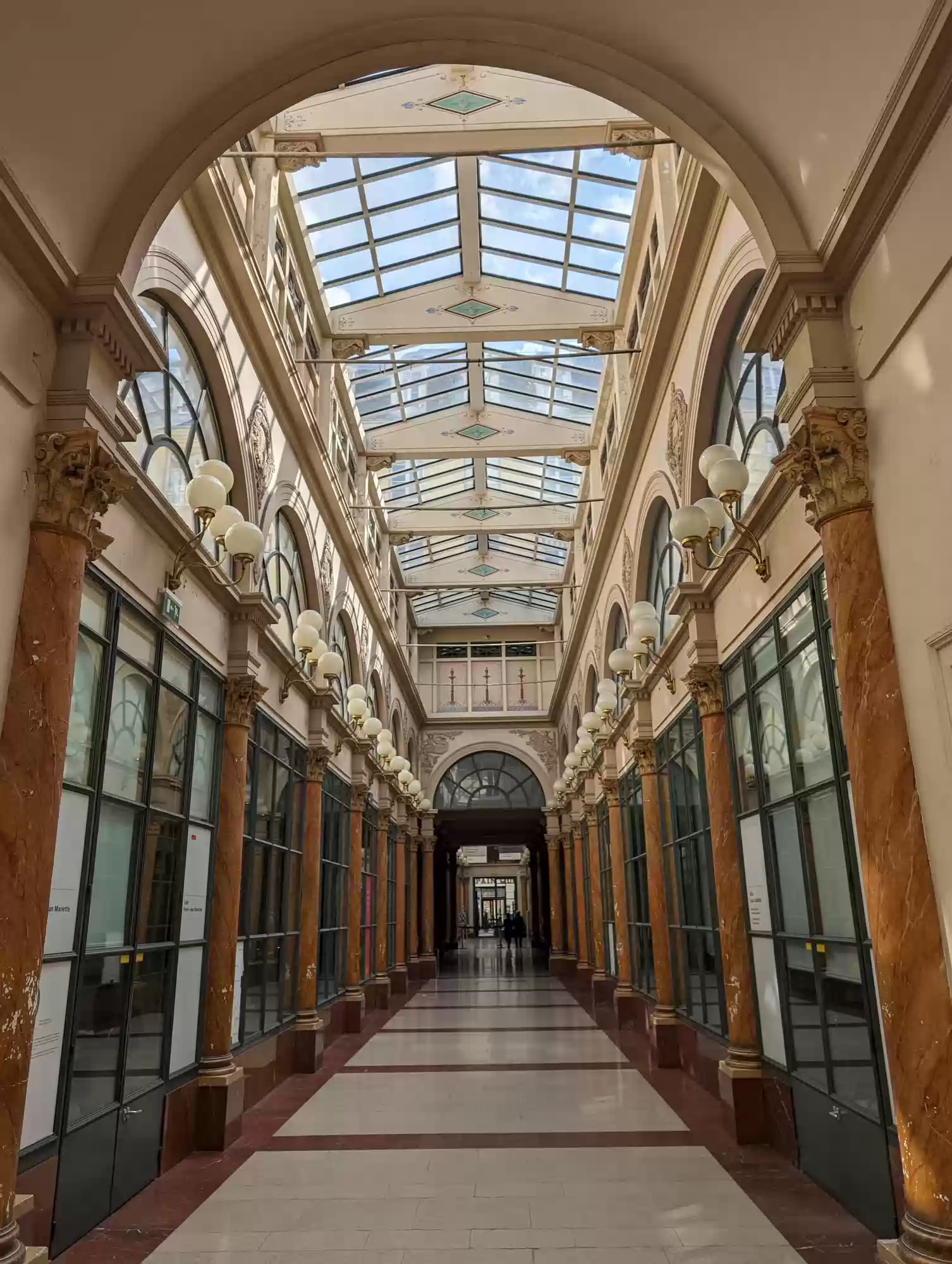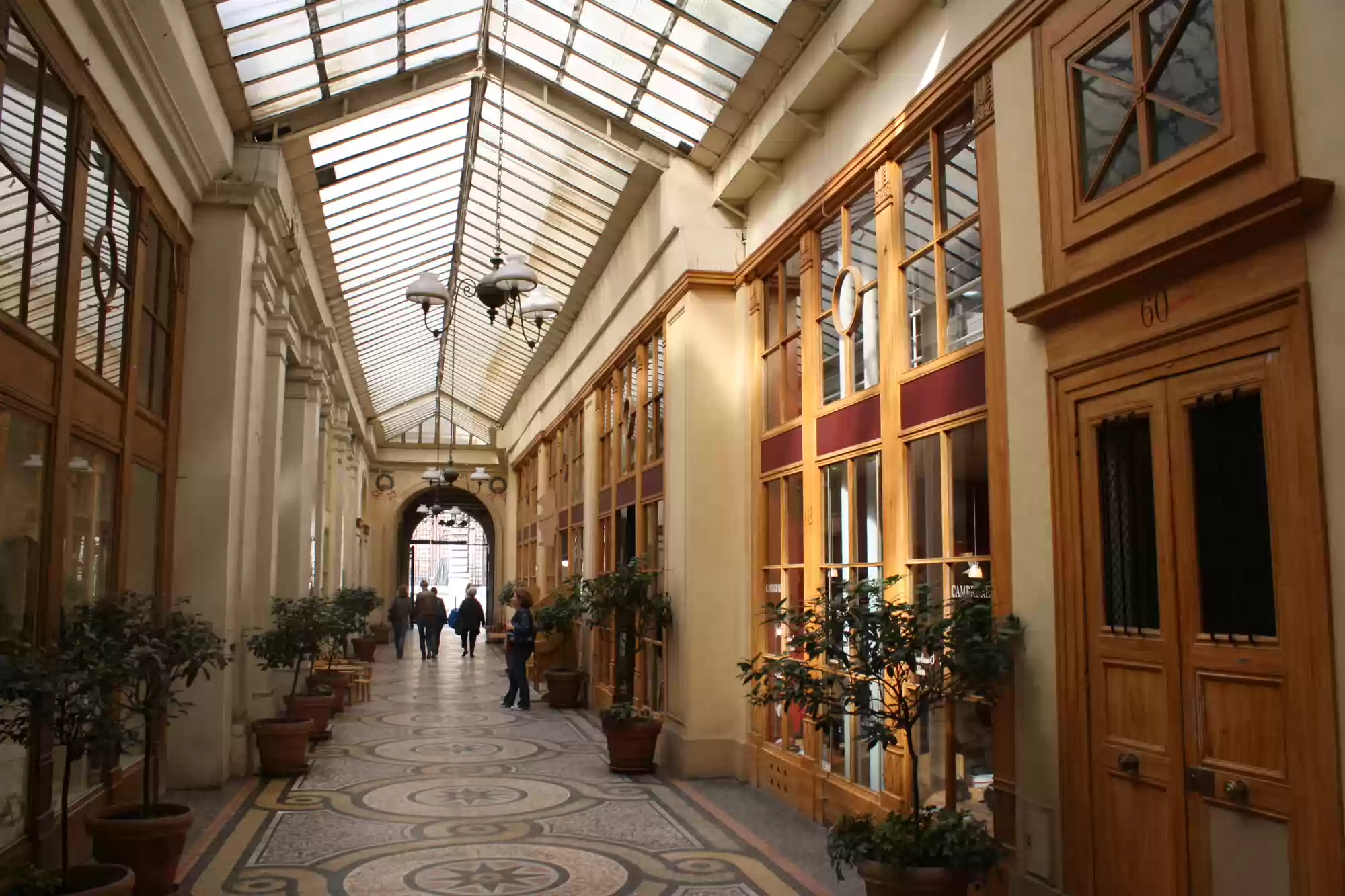 The Galerie Vivienne was built in 1826. Covered galeries between streets were then a novelty in Paris.