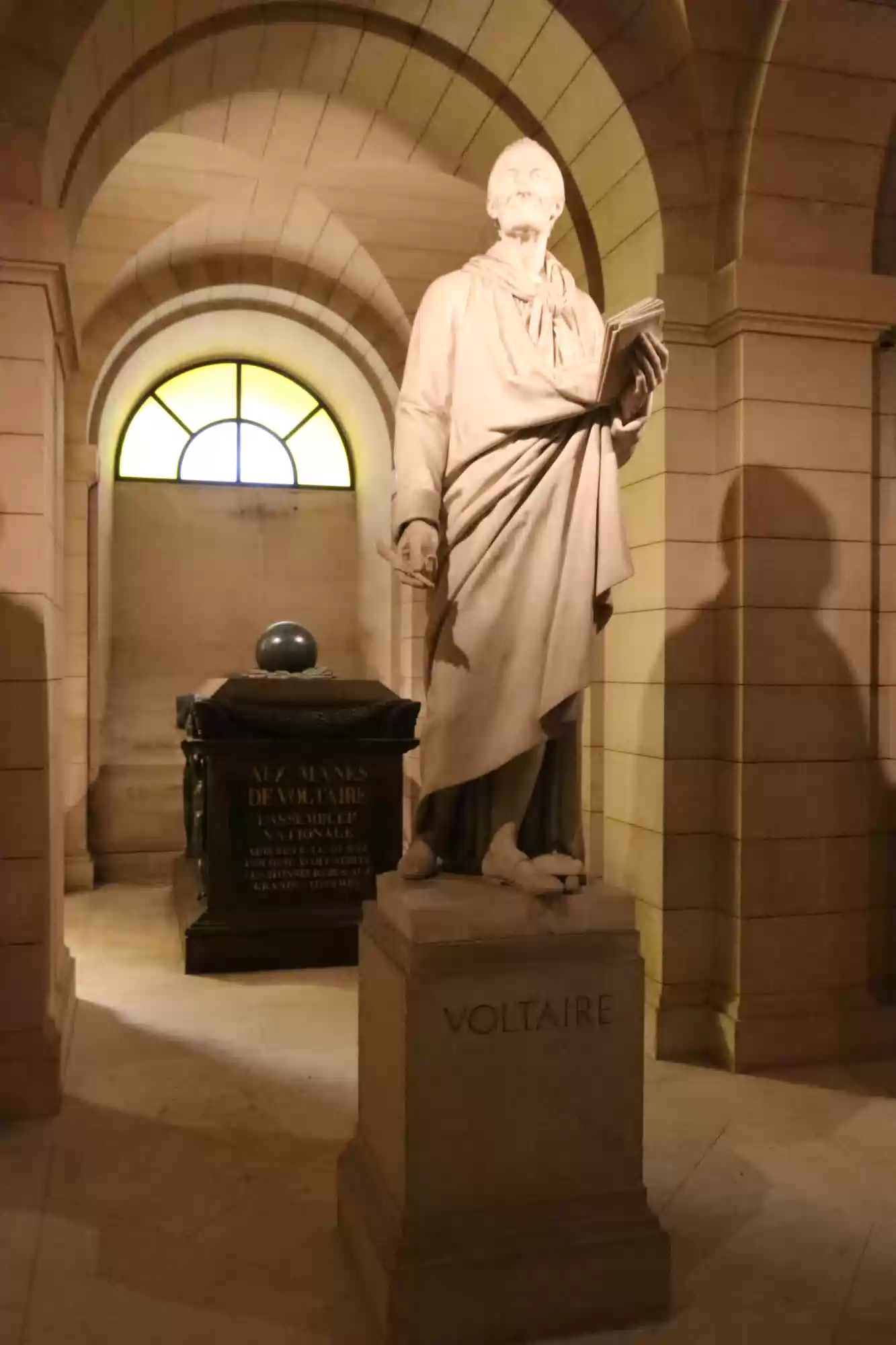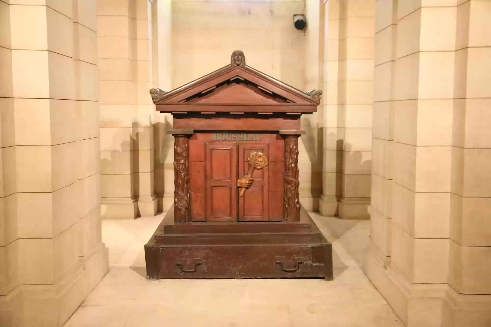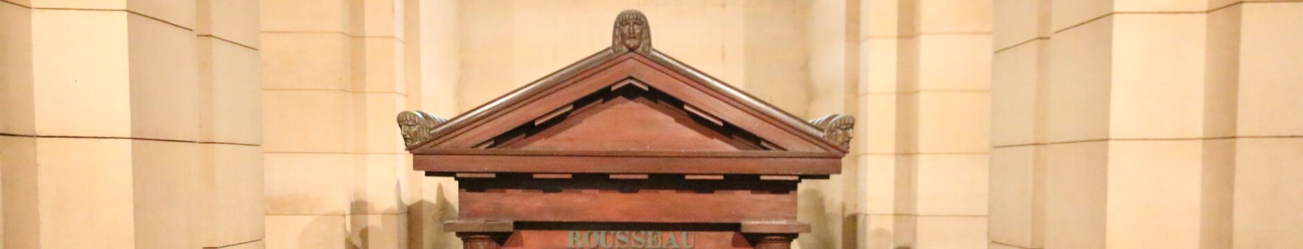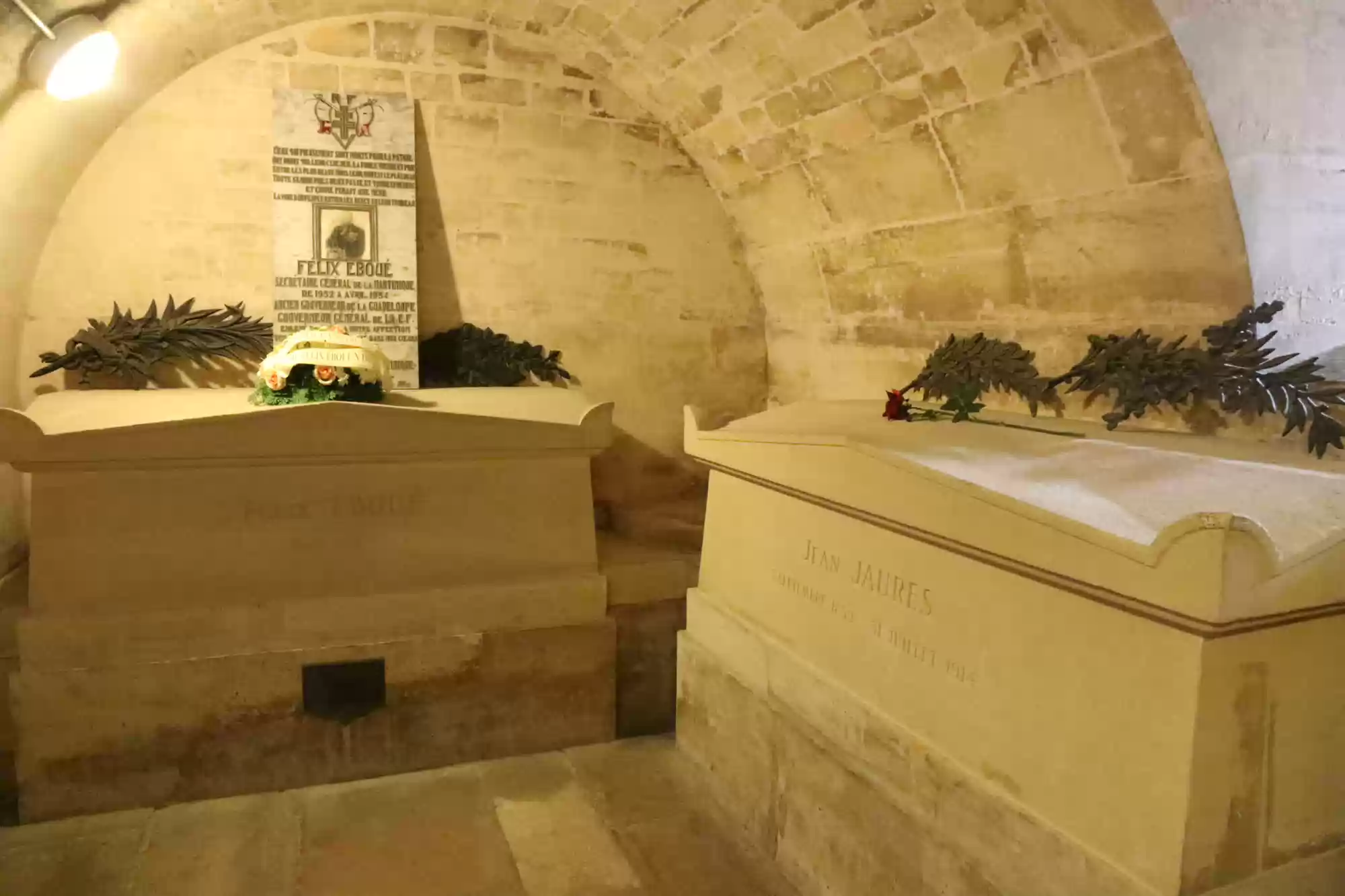 Jean-Jacques Rousseau. Voltaire. Alexandre Dumas. Marie and Pierre Curie. Felix Eboué and Jean Jaurès. Labels