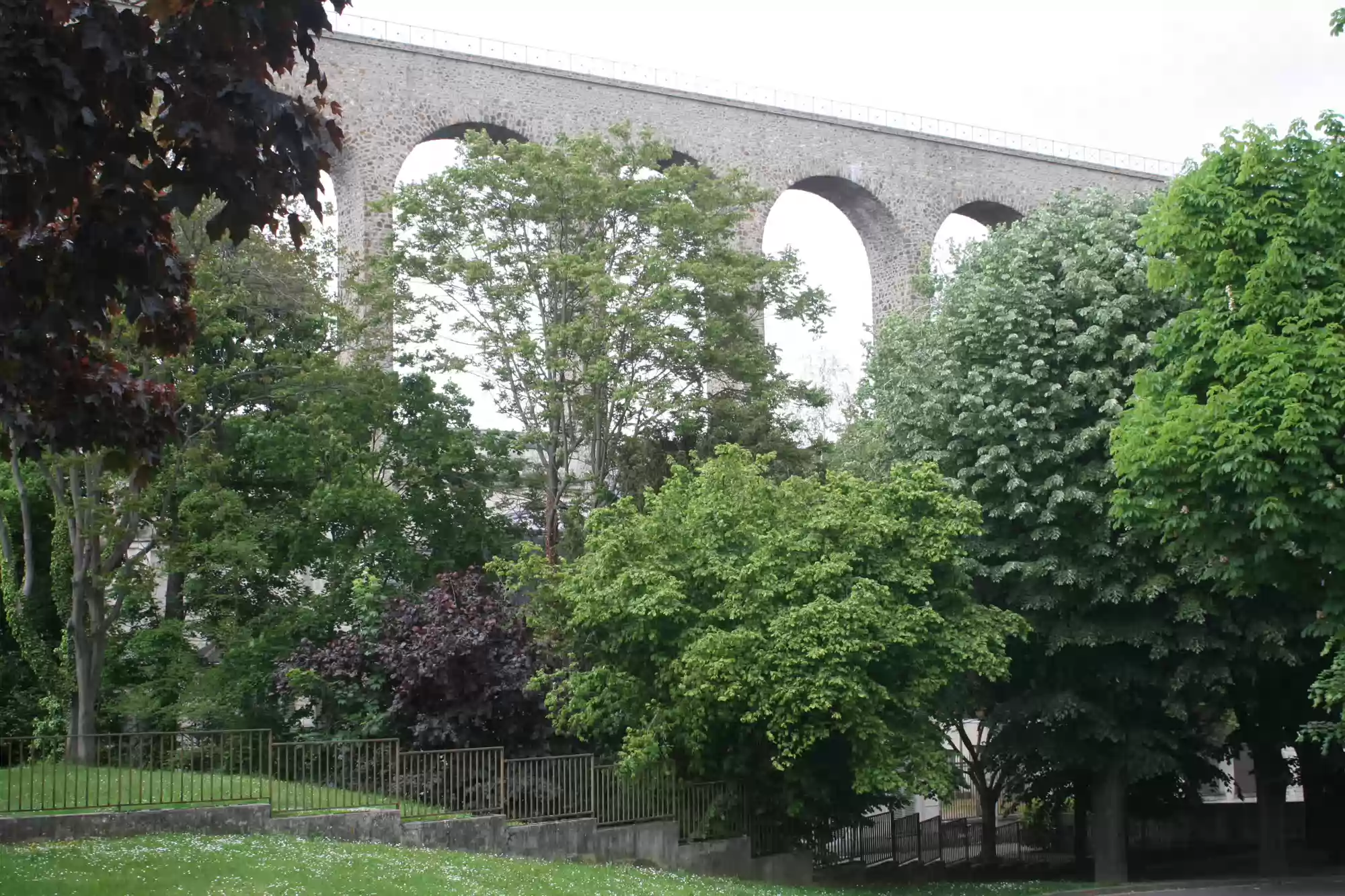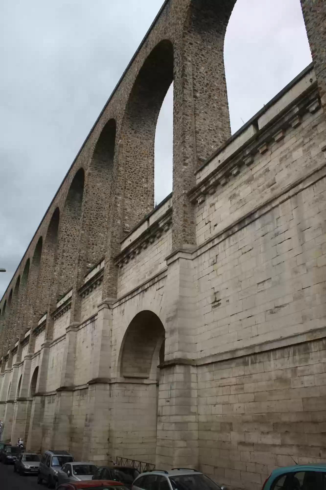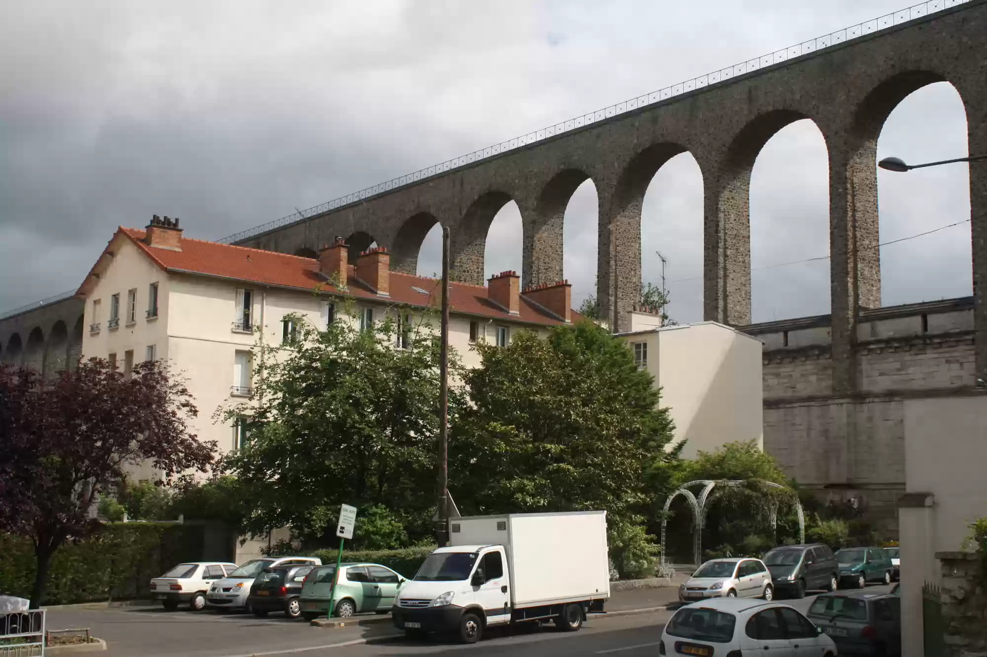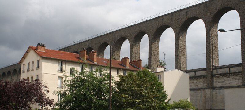Two aqueducts are stacked: the Medicis aqueduct (bottom) was built in 1613, and the Vanne aqueduct (top) built in the late 19th century.