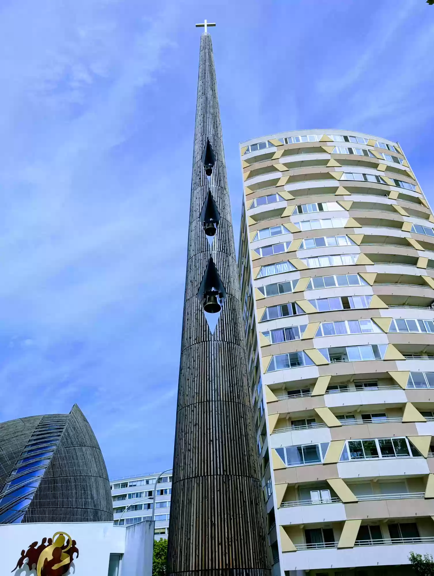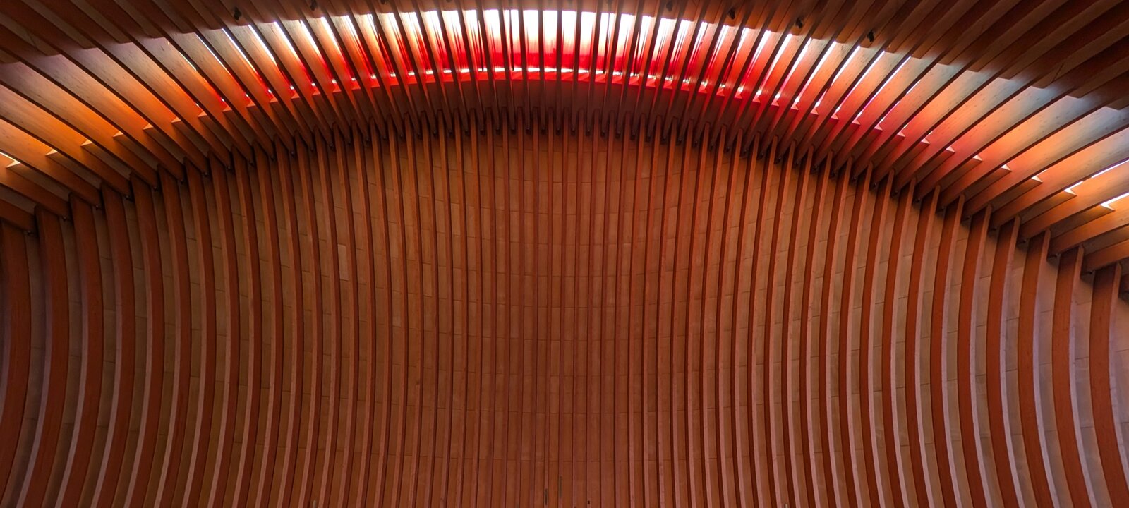 Cathedral built in 2015, replacing the previous 1976 church (then cathedral in 1987). Steeple. Wooden shell. Wooden shell. Wooden shell. Labels