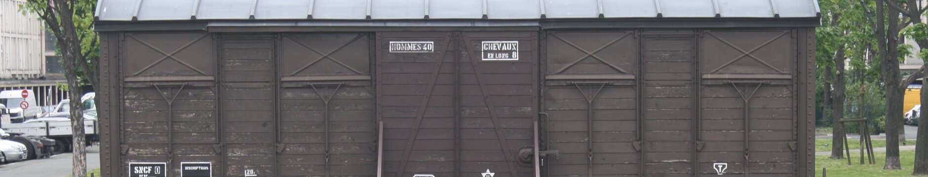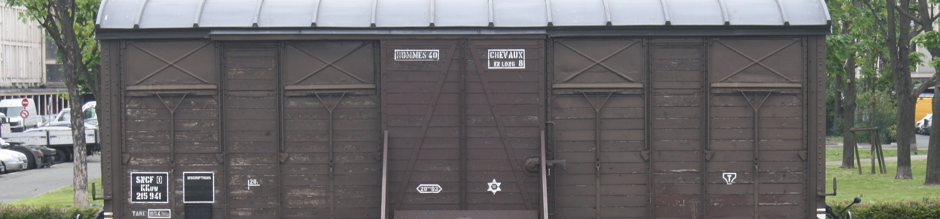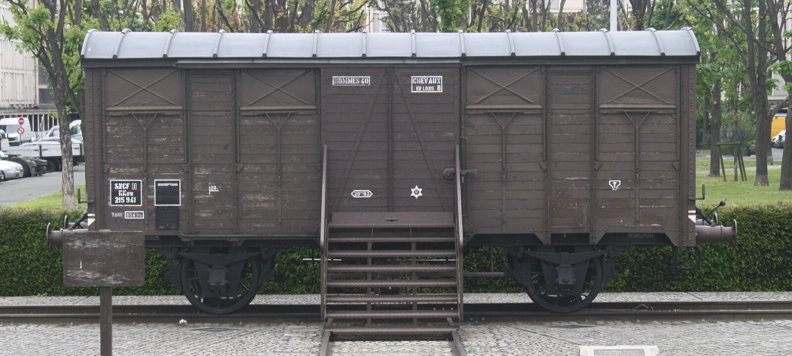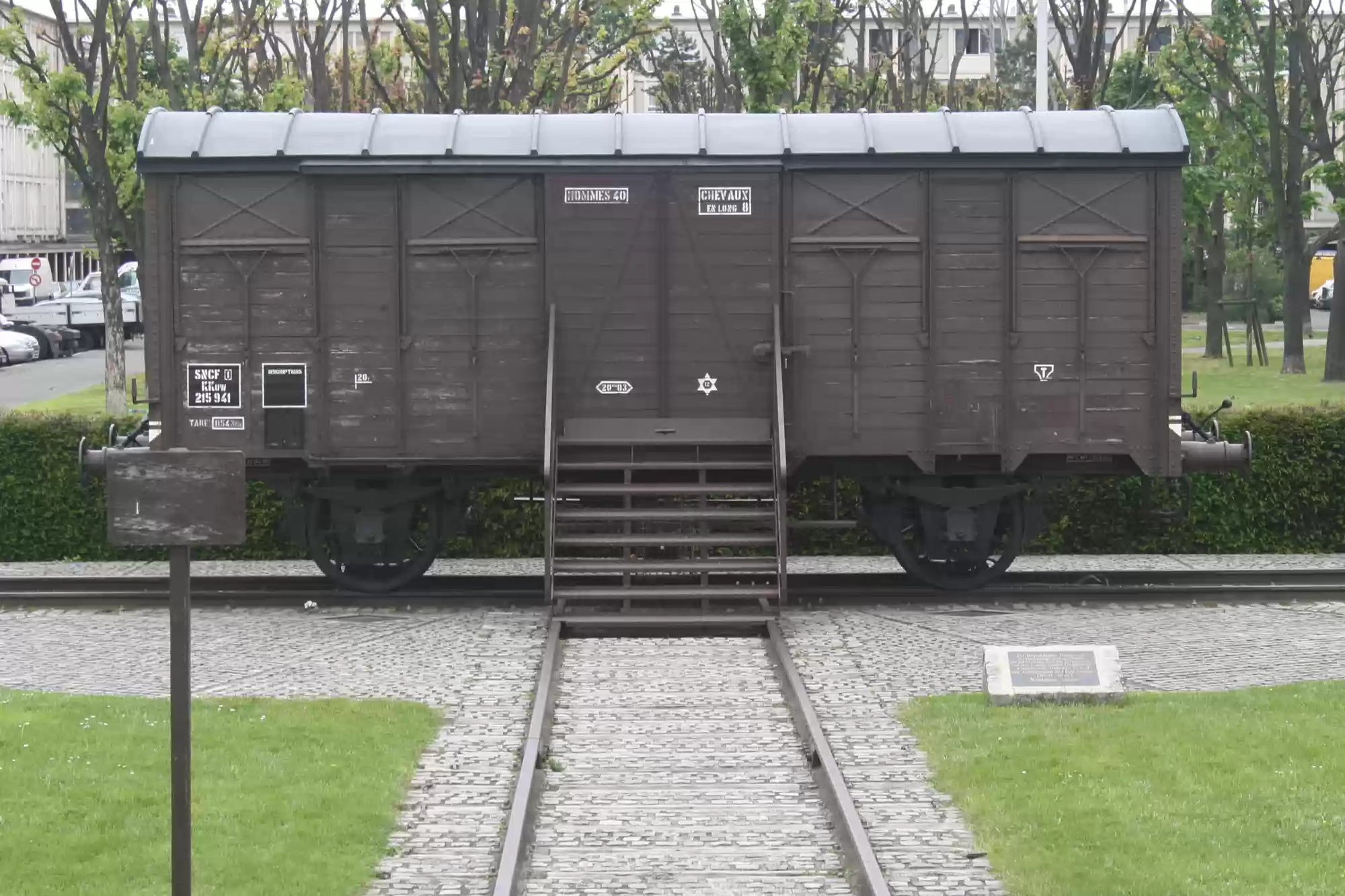 Model of a train coach used to send Jews and Gipsies from Drancy to Auschwitz, where they were exterminated.