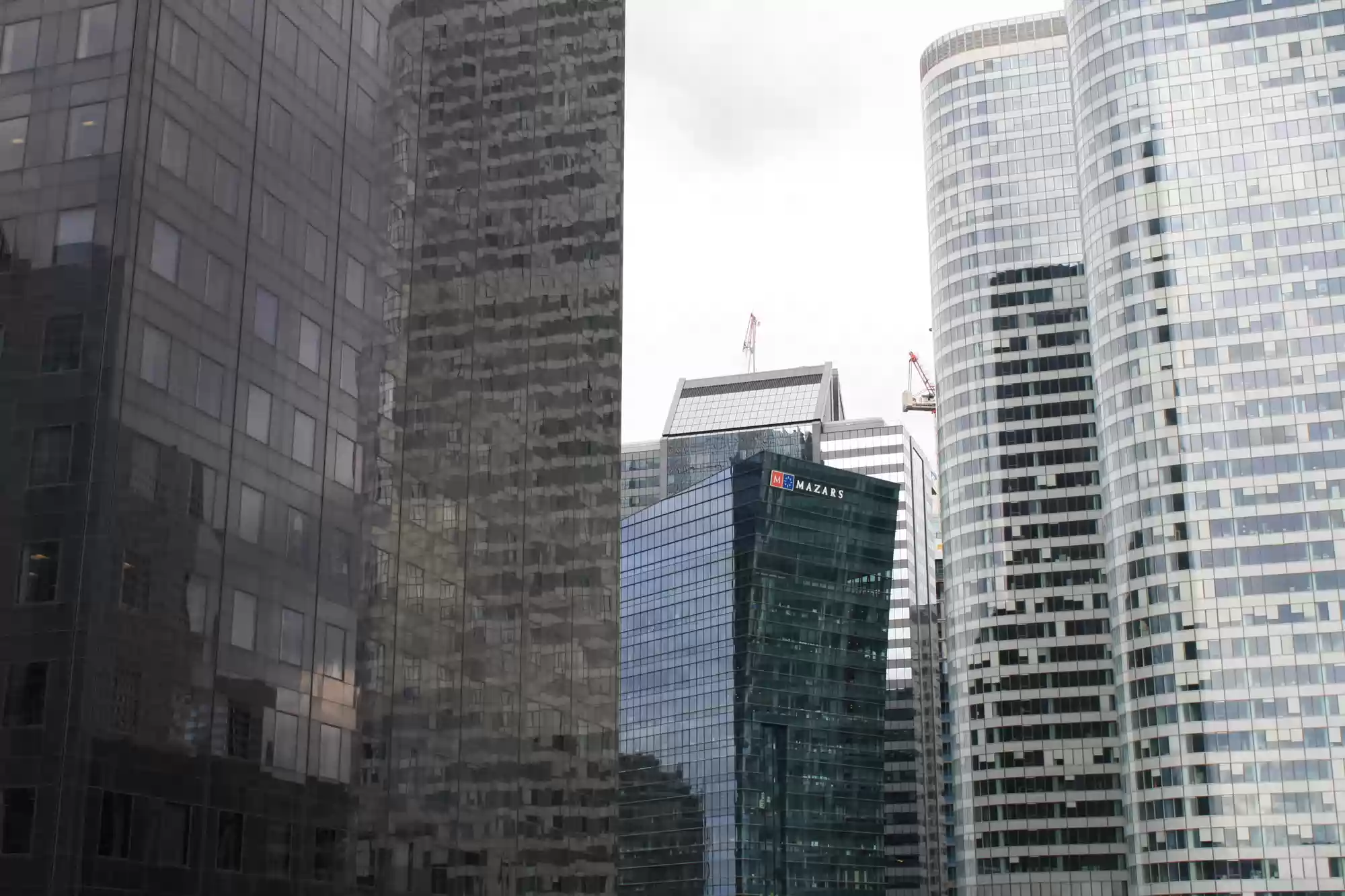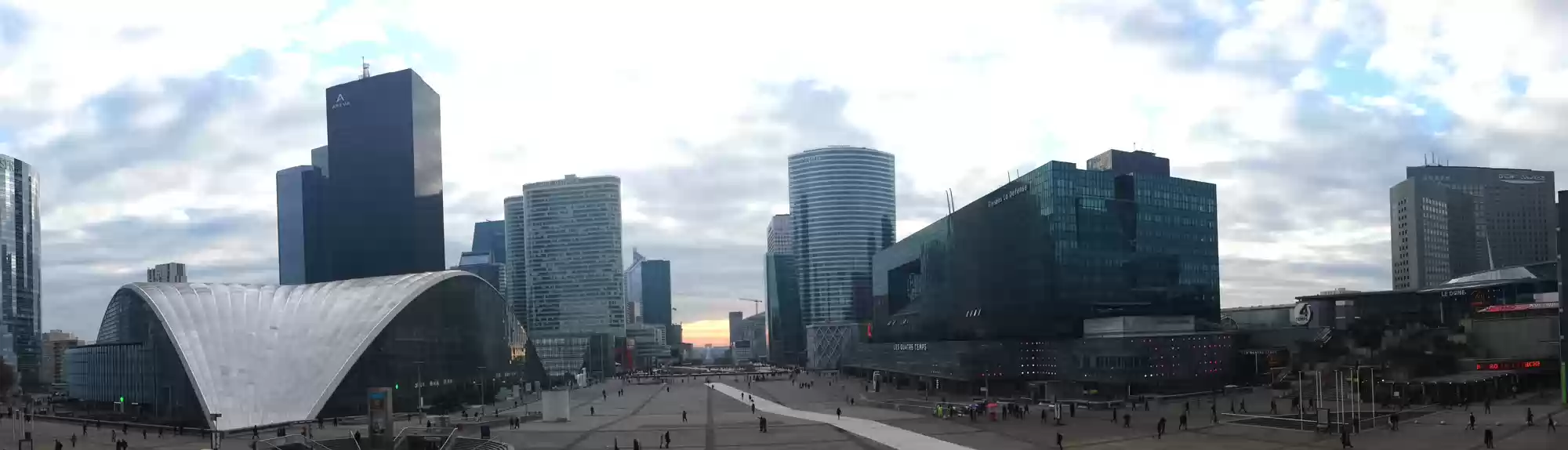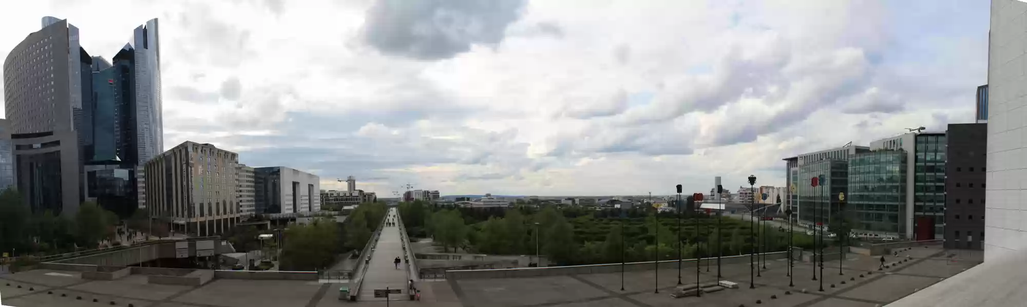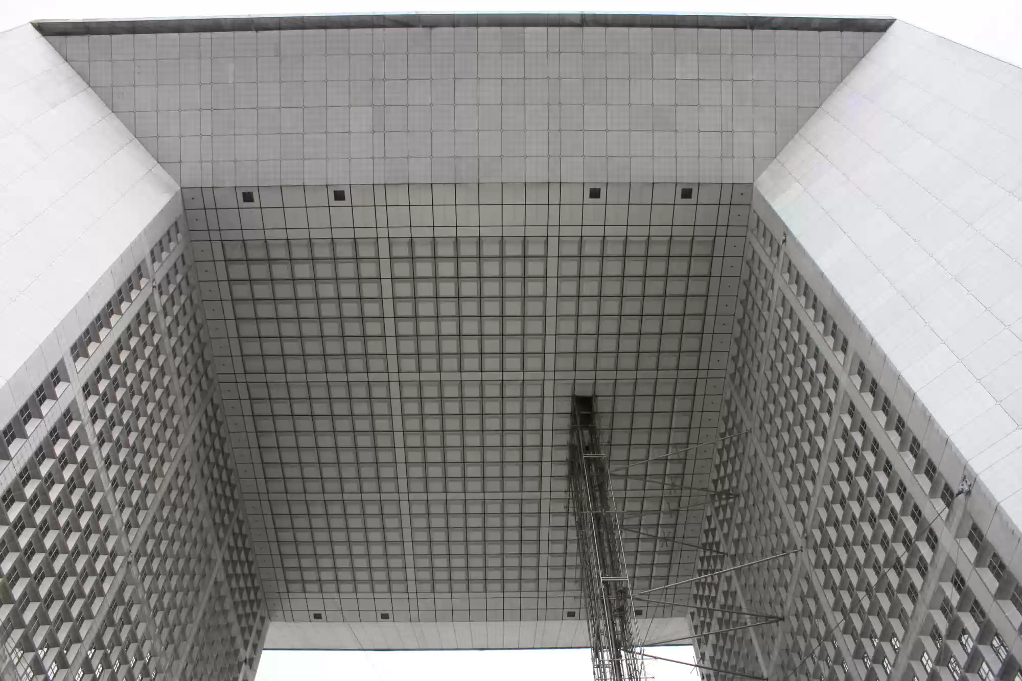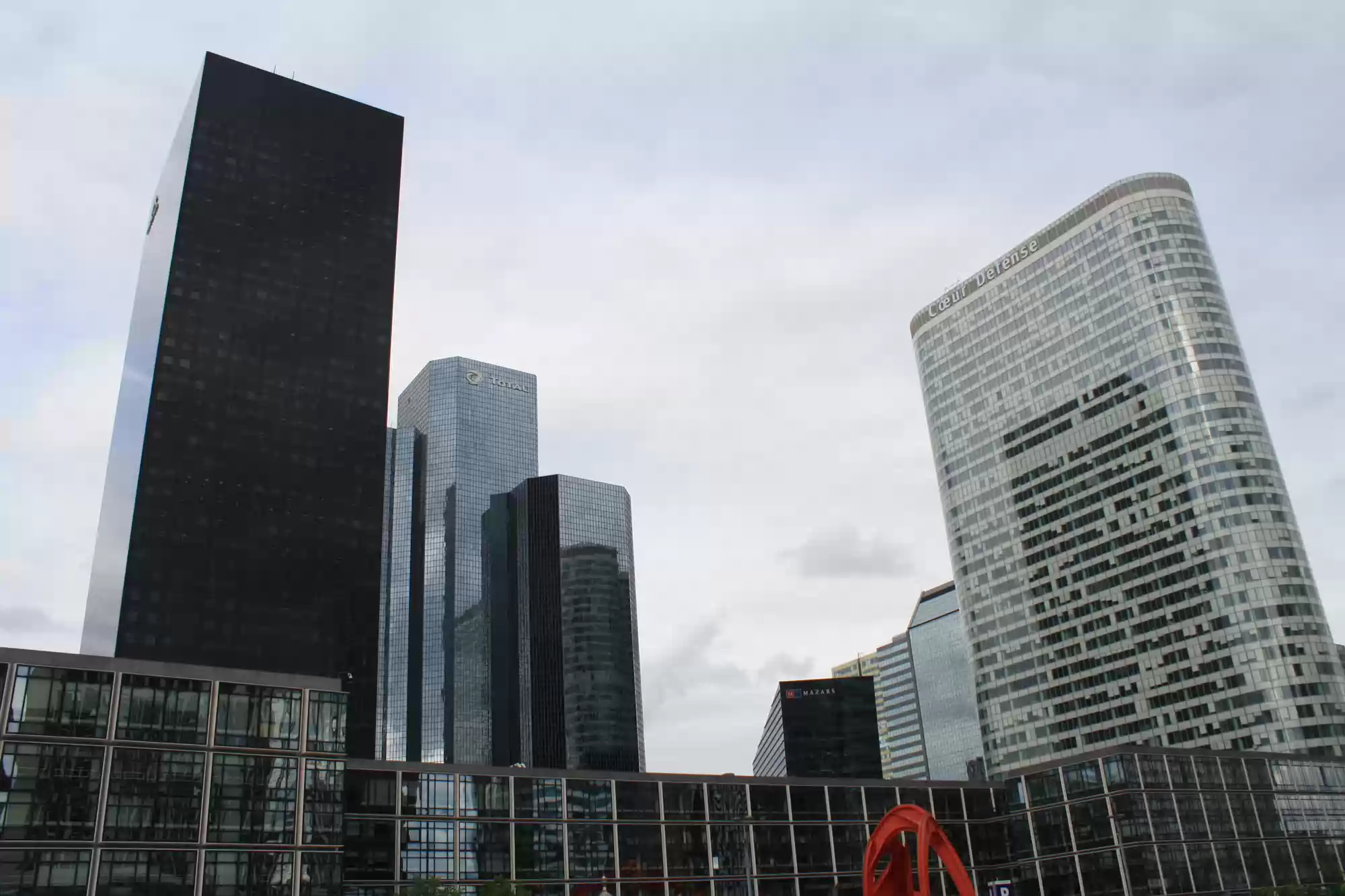 La Defense is a modern business district just outside Paris, featuring steel-and-glass towers and the "Grande Arche" (great arch).