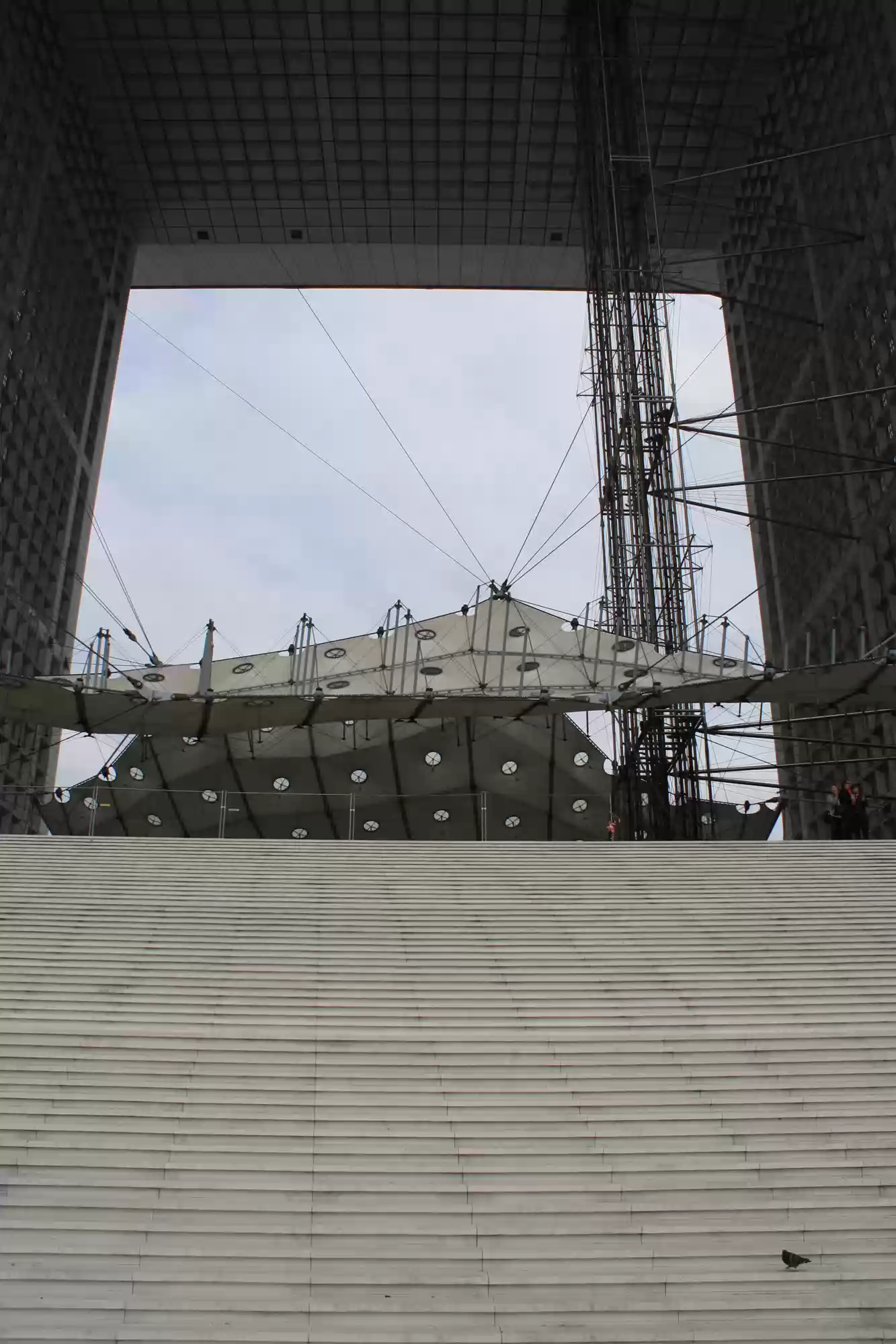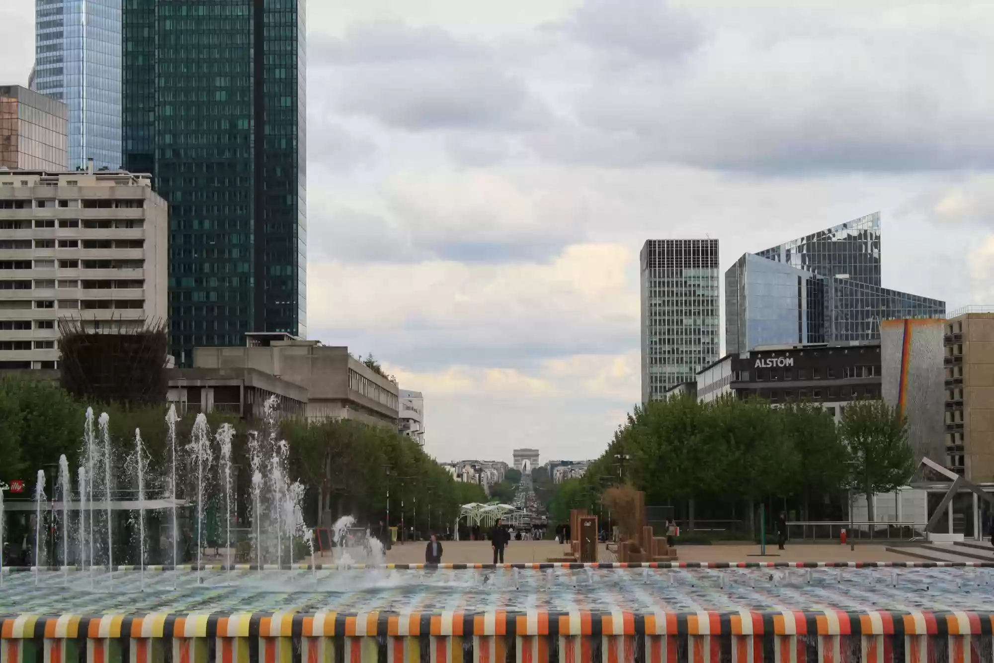 La Defense is in the same axis as the Champs Elysees and the Arc de Triomphe can be seen from the Arche.