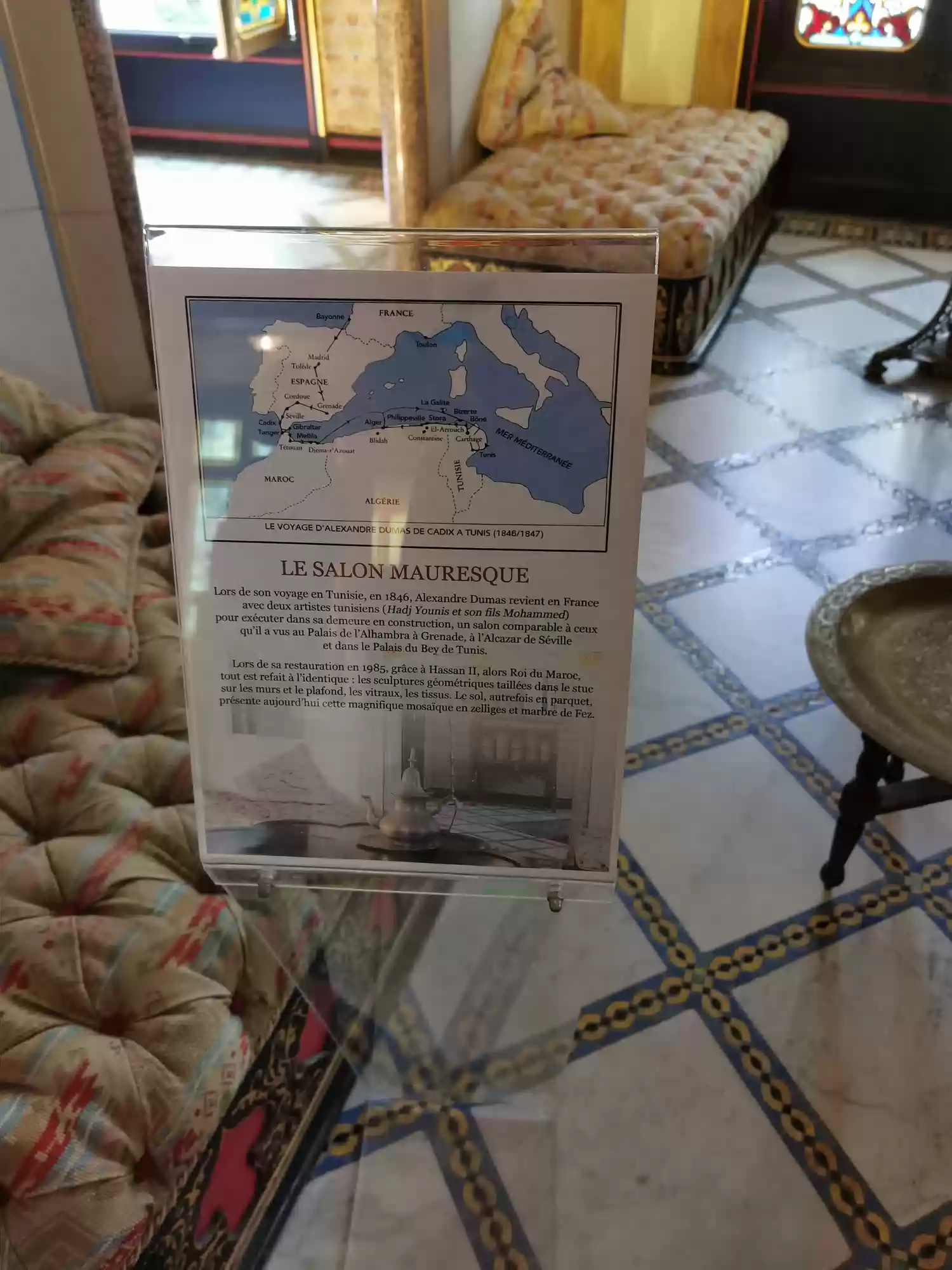 Mauresque room. Alexandre Dumas had seen similar rooms in Spain and Tunisia, and in 1846 he asked two Tunisian artists to build such a room in his castle.
