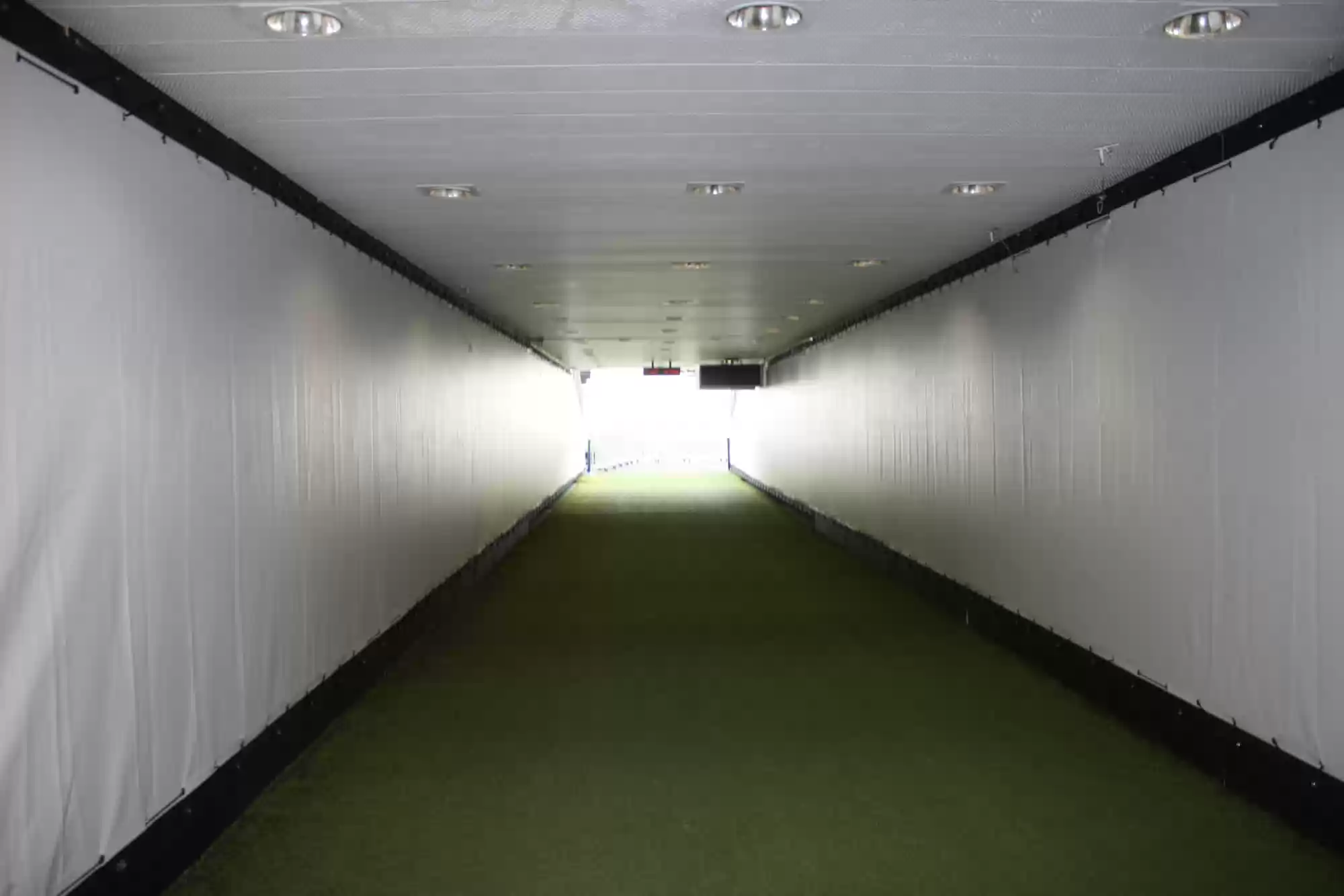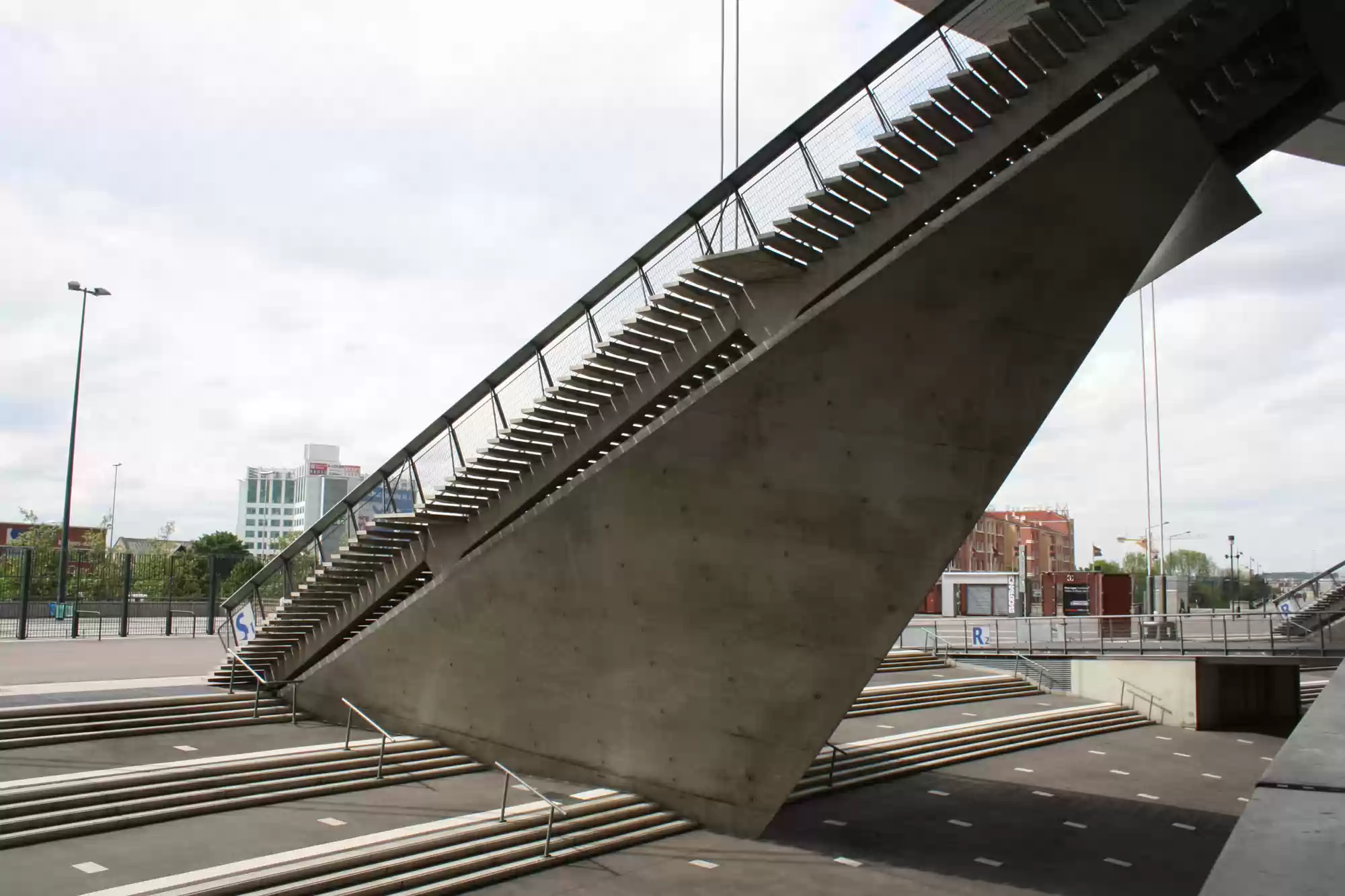 18 grand staircases lead to the upper of 3 levels of seating areas. The middle level can be retracted to make room for the athletics track.