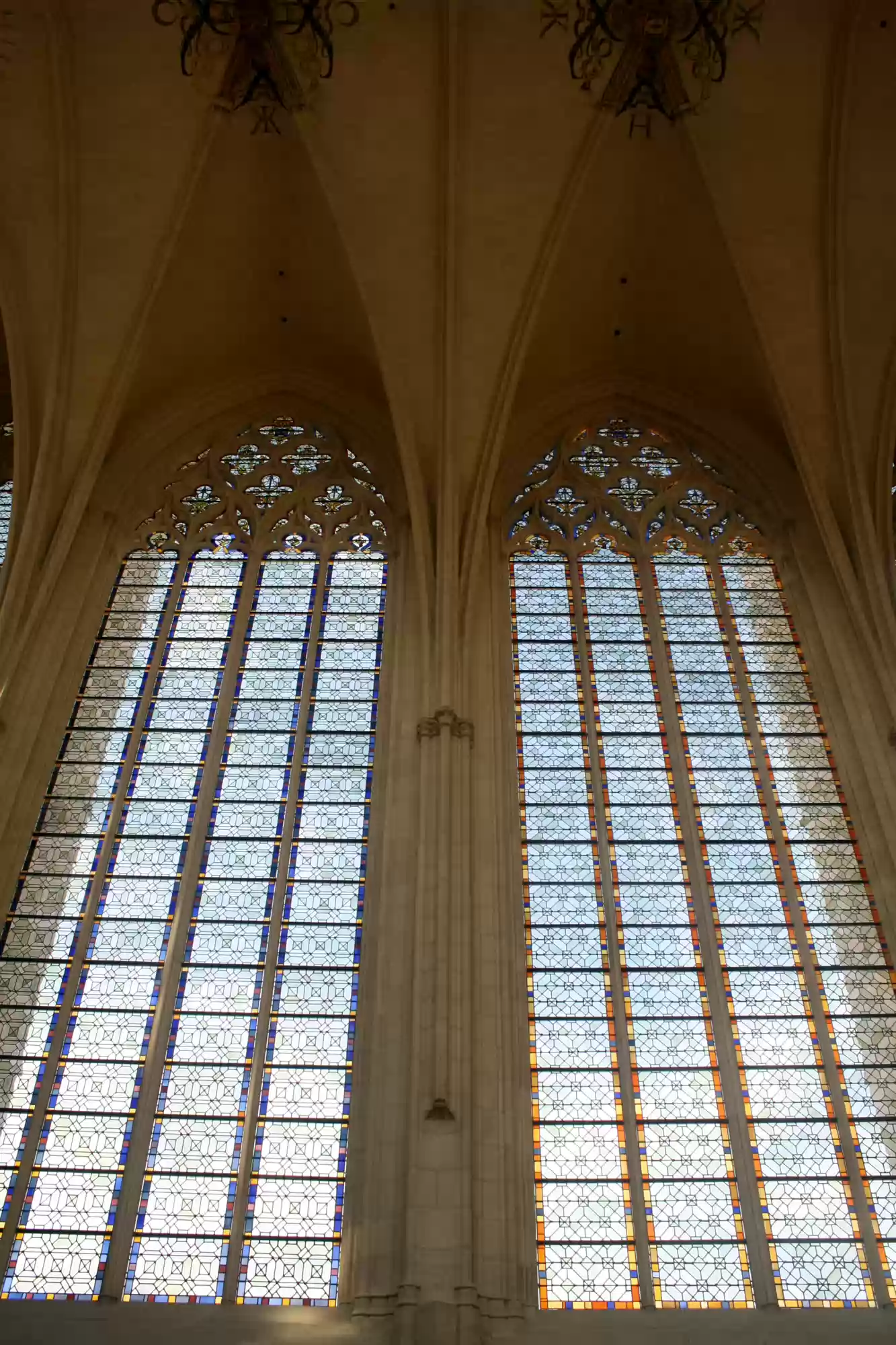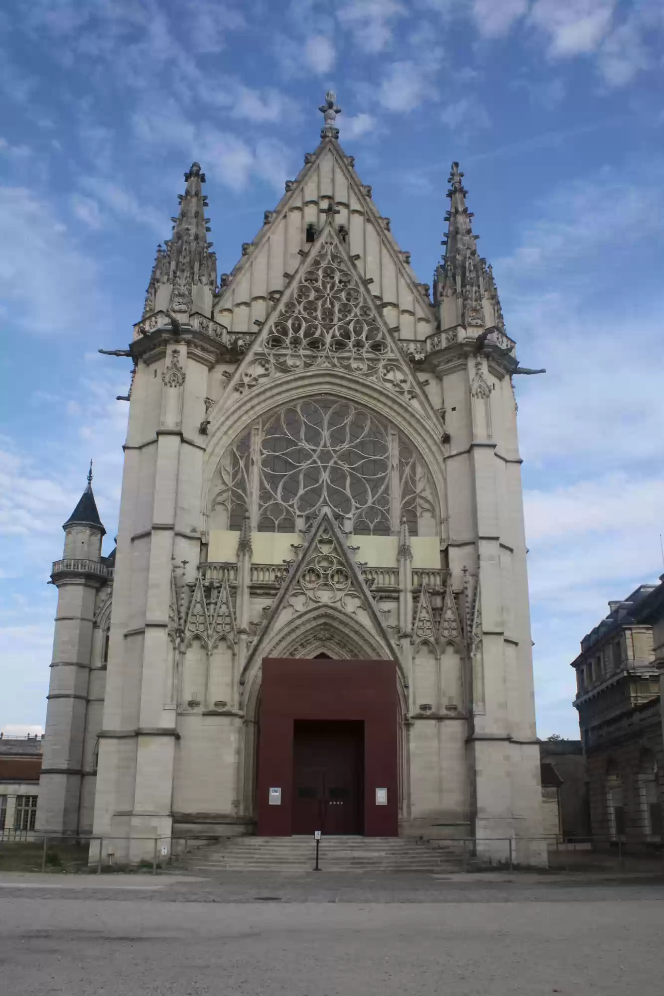 The chapel is modelled on the Sainte Chapelle of the Palais de la Cit&eaute; in Paris, though it has only one floor, with oratories reserved for the queen on…