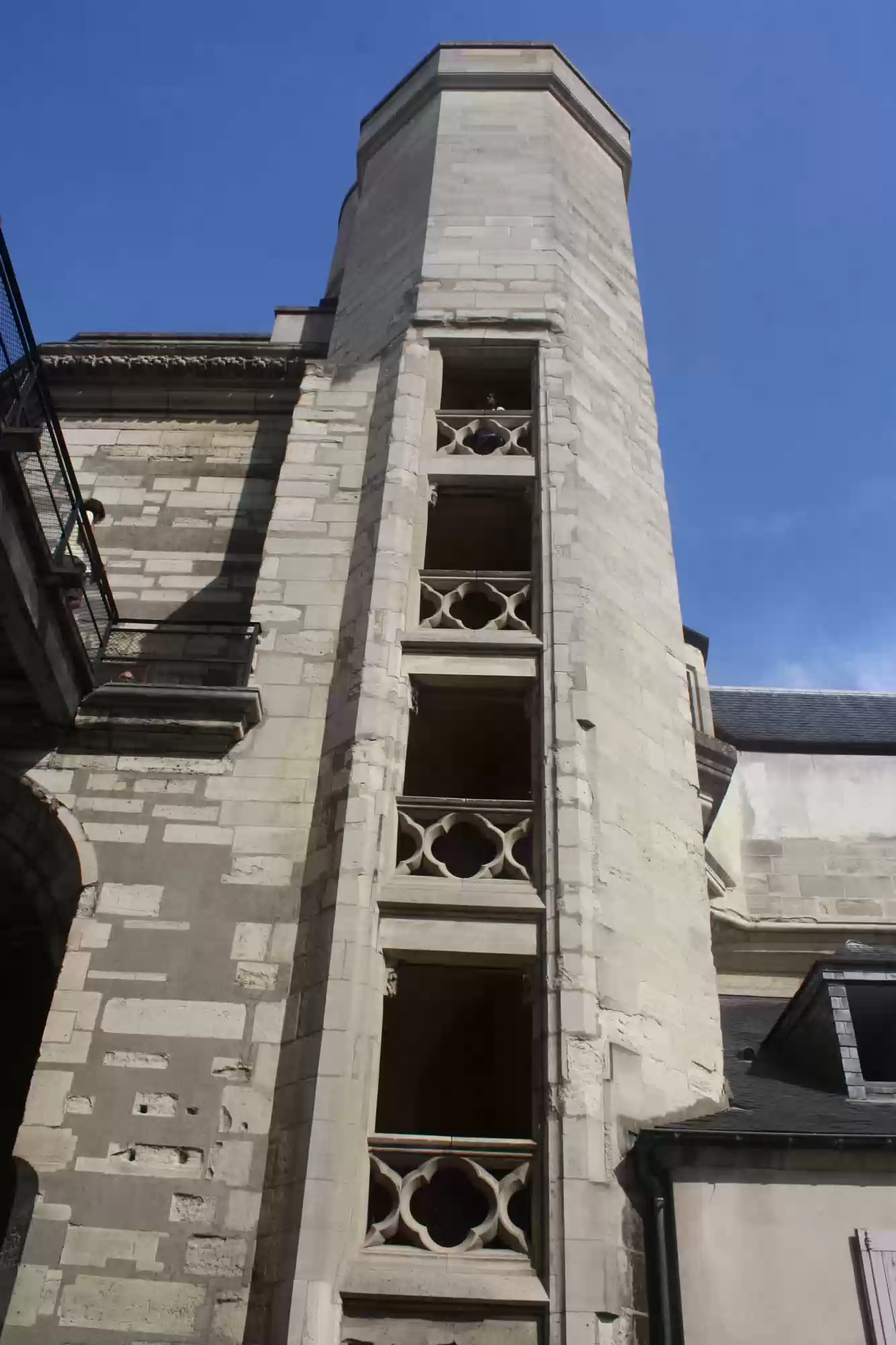The grand staircase in the chatelet. The slightly projecting staircase which opened from the chatelet onto the courtyard was an innovation by Raymond du…