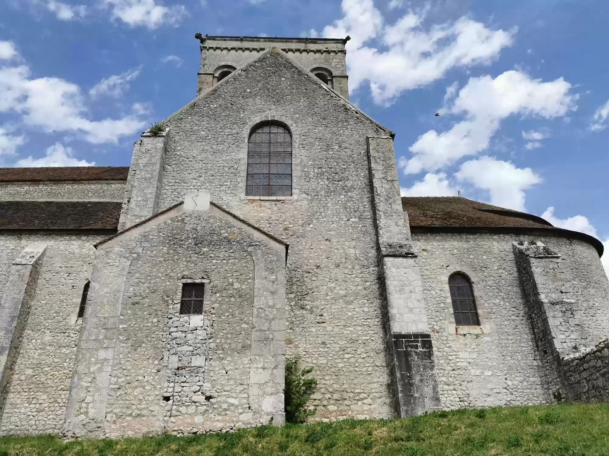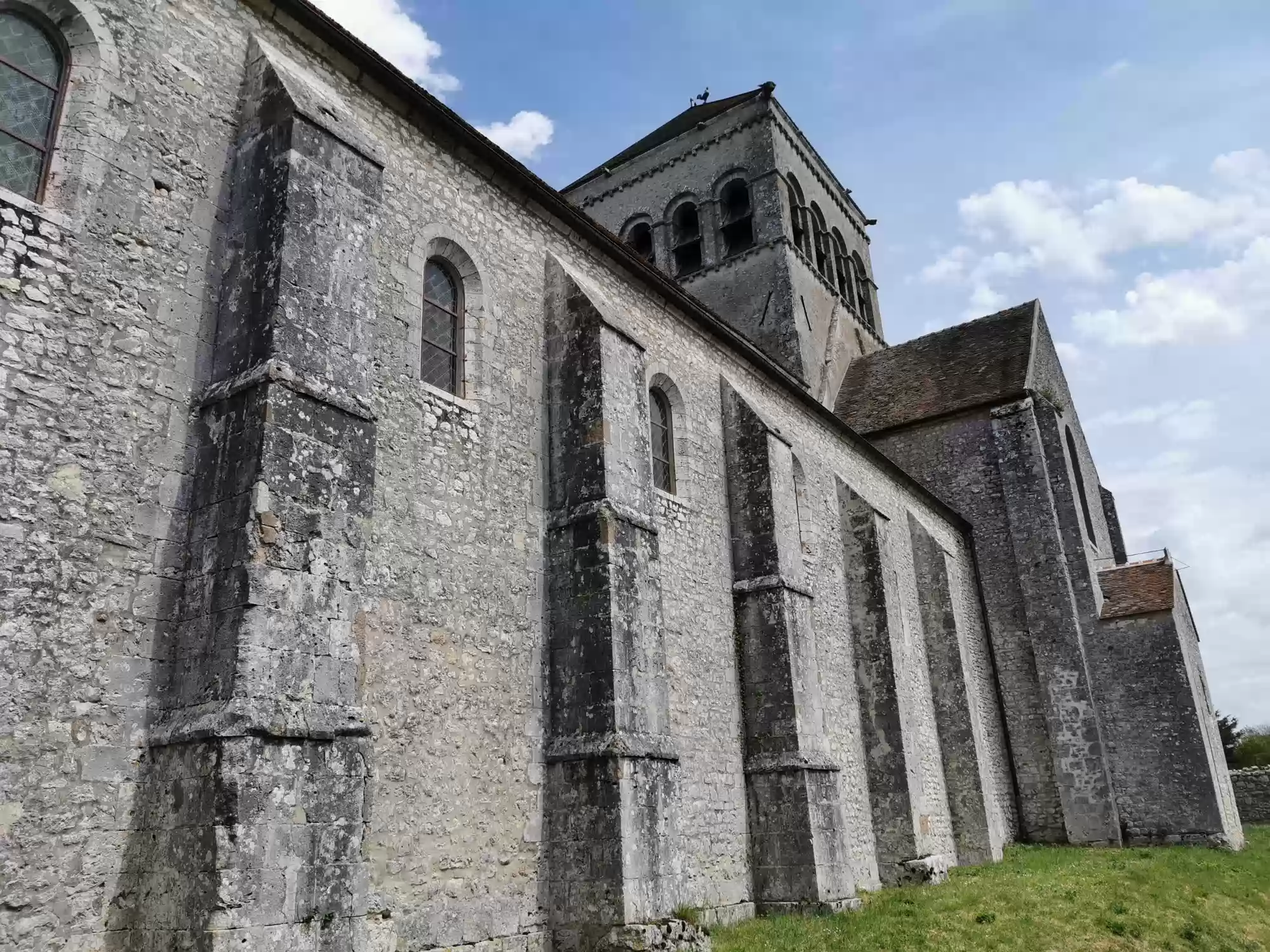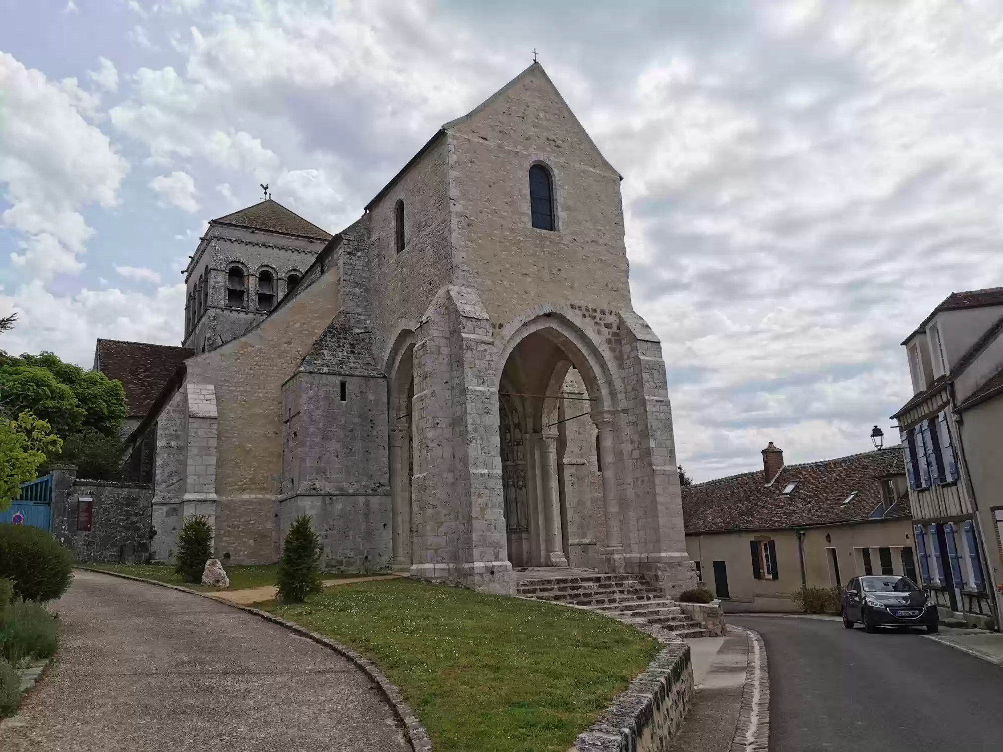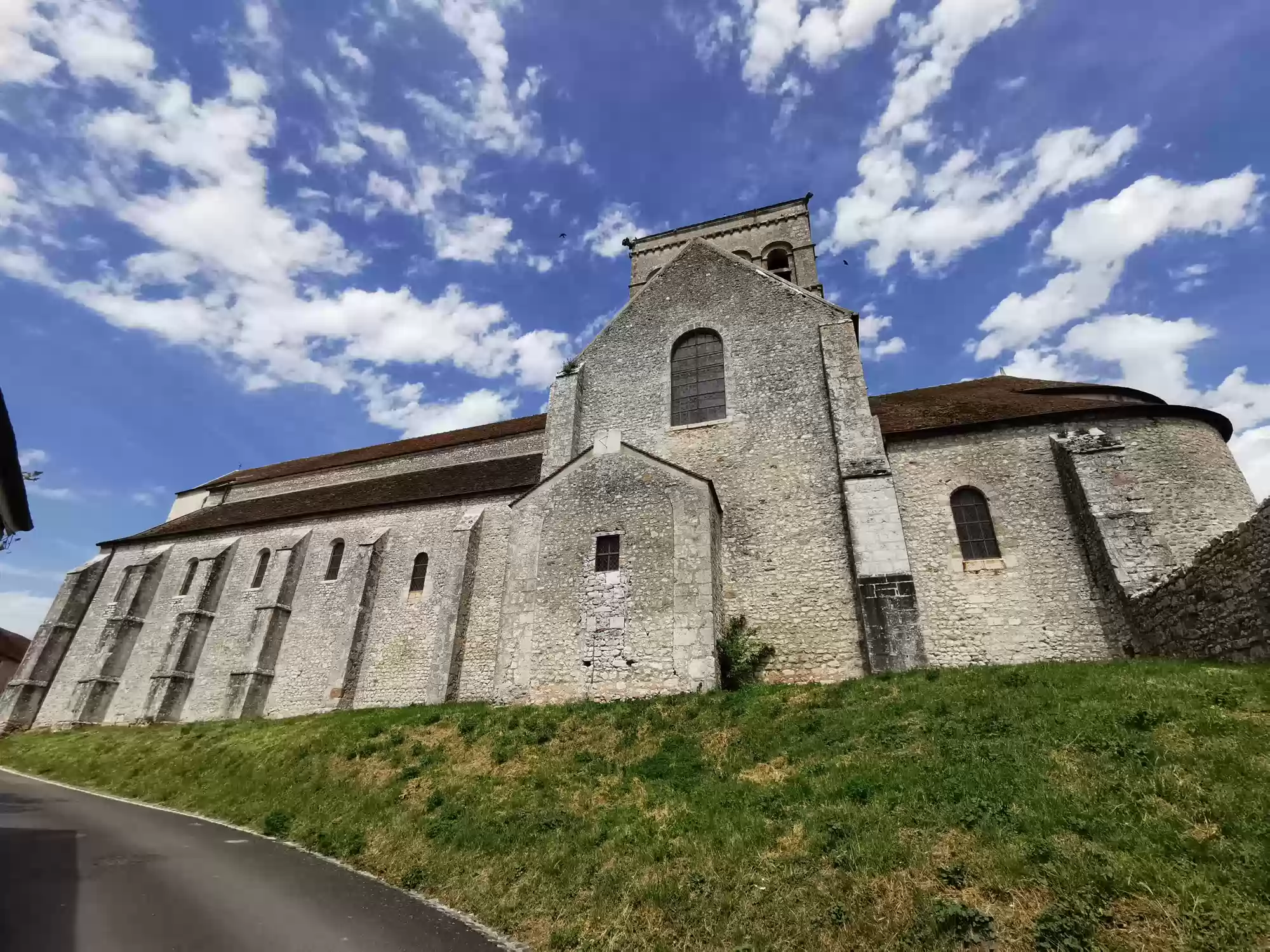 Former priory church, 12th century, dedicated to Saint Loup of Sens. Tympanum: Christ and symbols of the evangelists. Arches: life and miracles of Saint Loup. Column statue between the doors: Saint Loup. Tympanum: Christ and symbols of the evangelists. Arches: life and miracles of Saint Loup. Life and miracles of Saint Loup. Life and miracles of Saint Loup. Life and miracles of Saint Loup. Altarpiece. Walnut wood statue, 19th century. Noyen-sur-SeineCaesar tower Labels