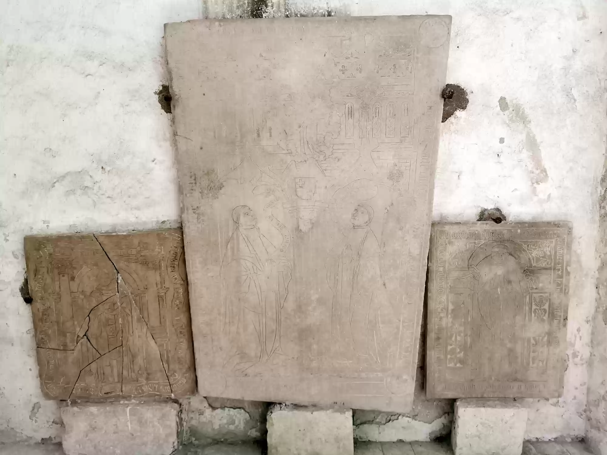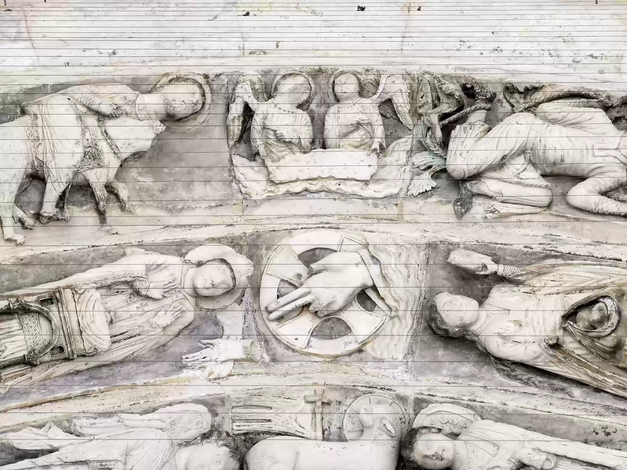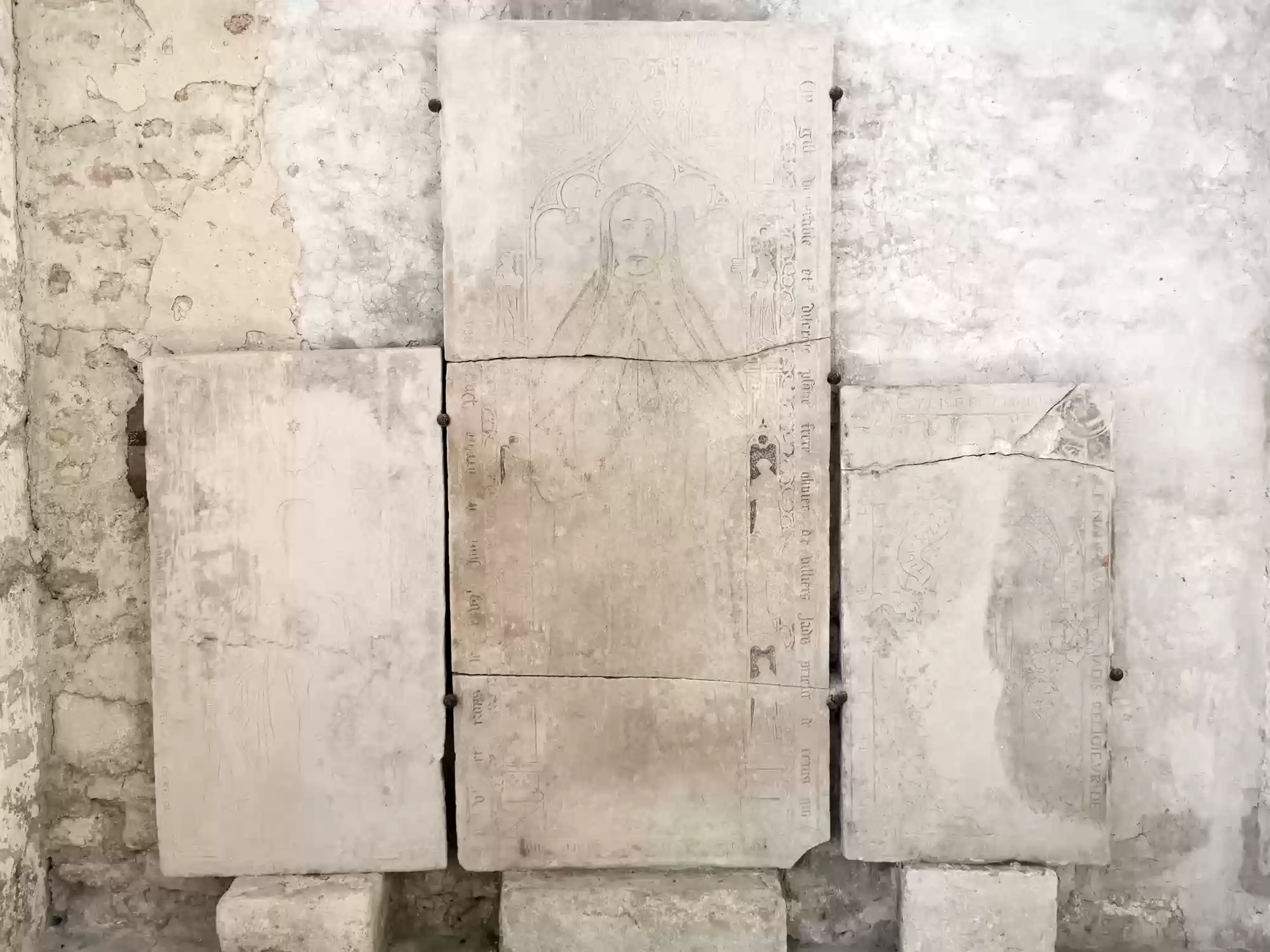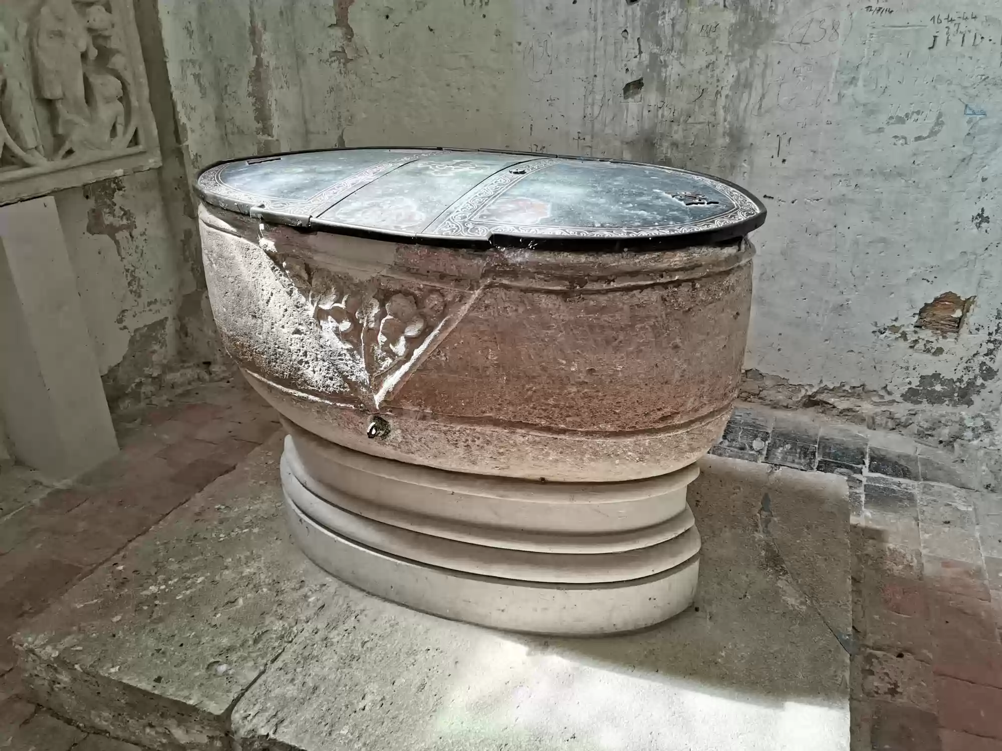 Former priory church, 12th century, dedicated to Saint Loup of Sens. Tympanum: Christ and symbols of the evangelists. Arches: life and miracles of Saint Loup. Column statue between the doors: Saint Loup. Tympanum: Christ and symbols of the evangelists. Arches: life and miracles of Saint Loup. Life and miracles of Saint Loup. Life and miracles of Saint Loup. Life and miracles of Saint Loup. Altarpiece. Walnut wood statue, 19th century. Noyen-sur-SeineCaesar tower Labels