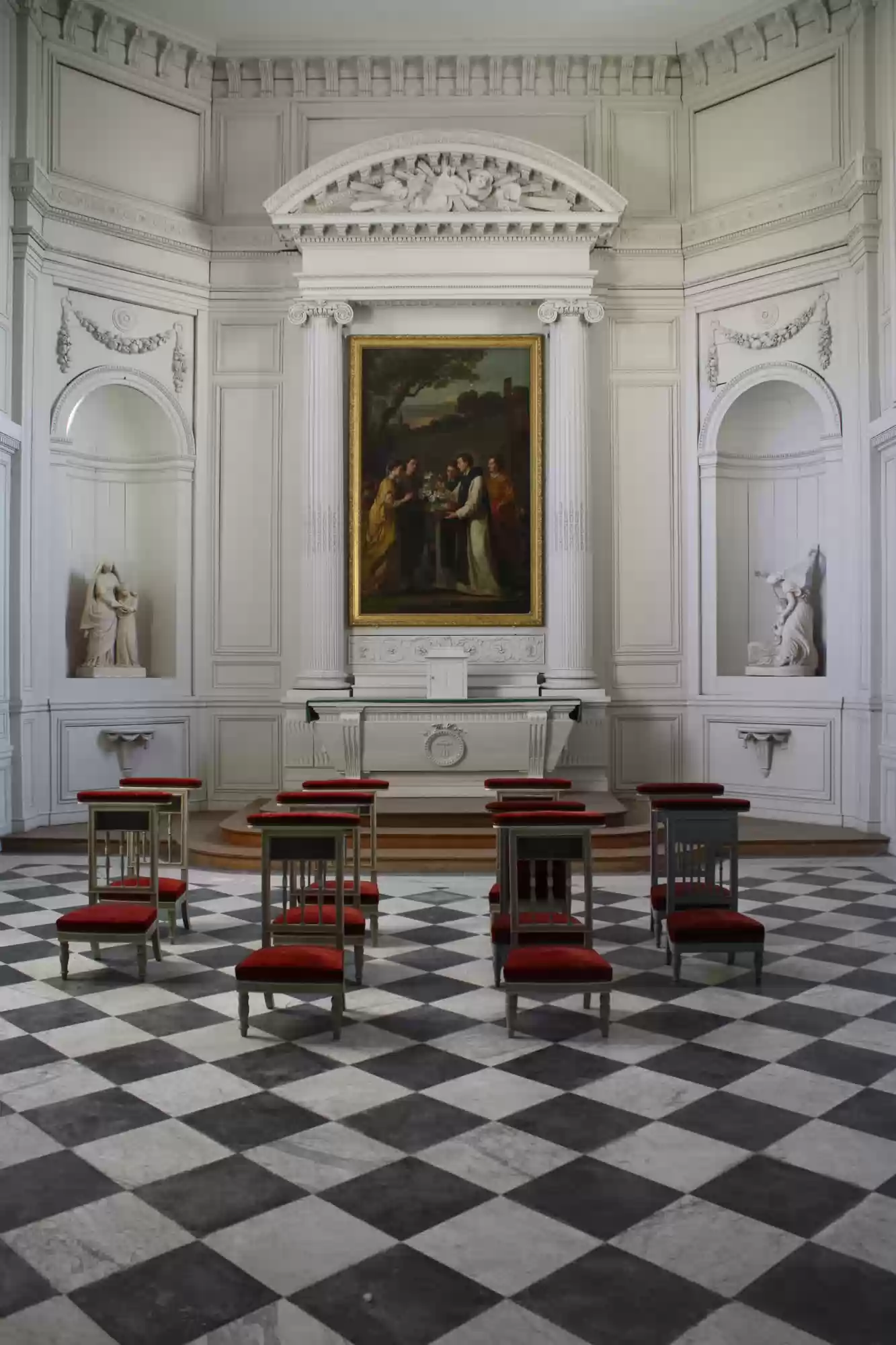 Chapel built in 1772 by Gabriel near the Petit Trianon. Chairs from 1838.