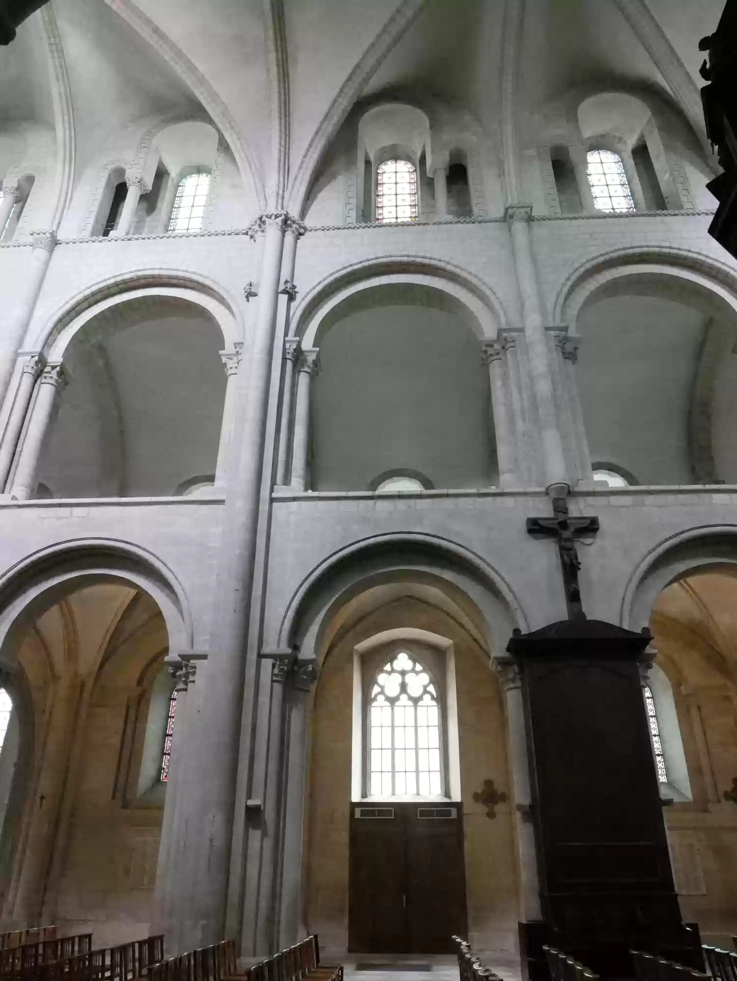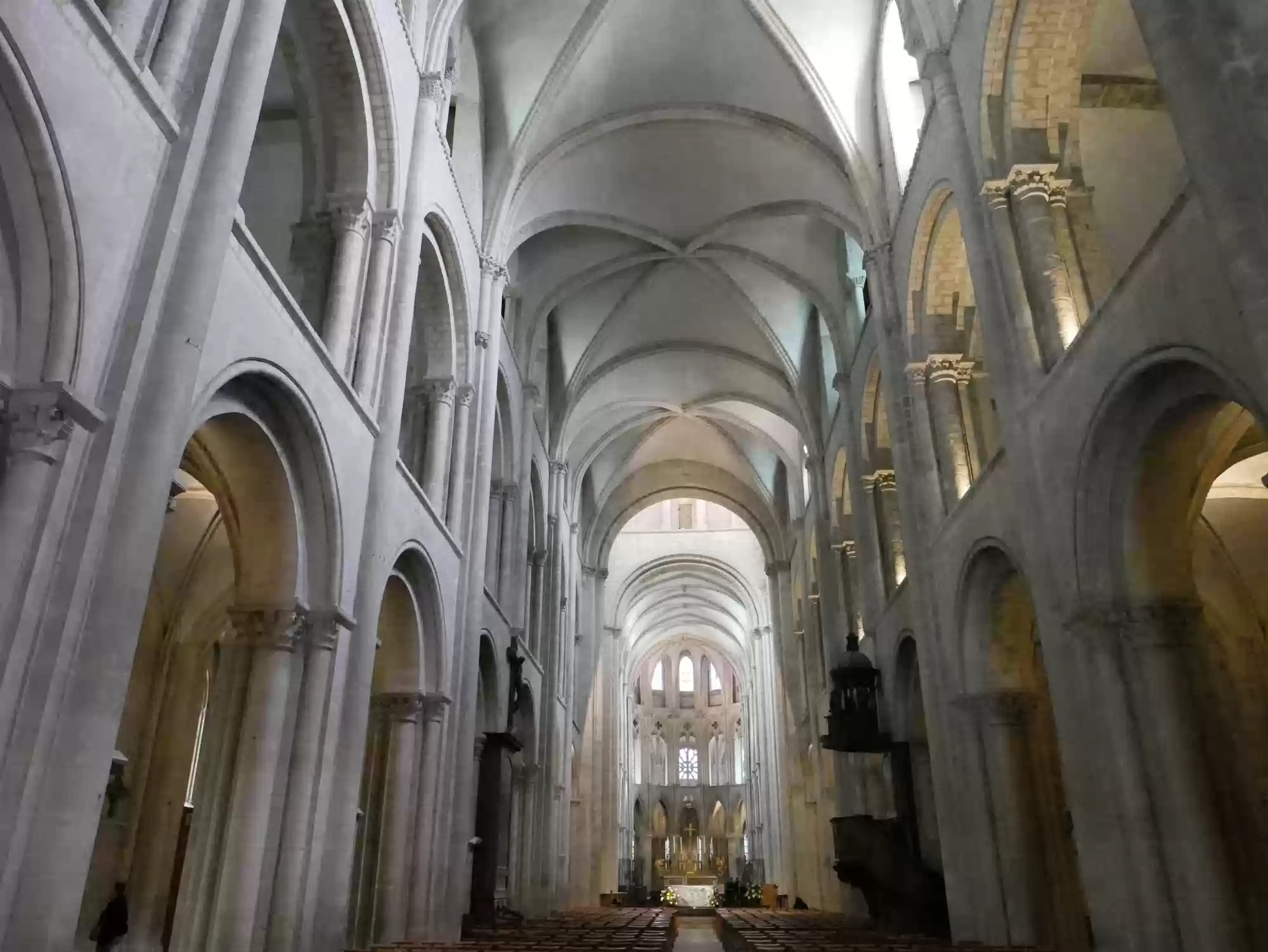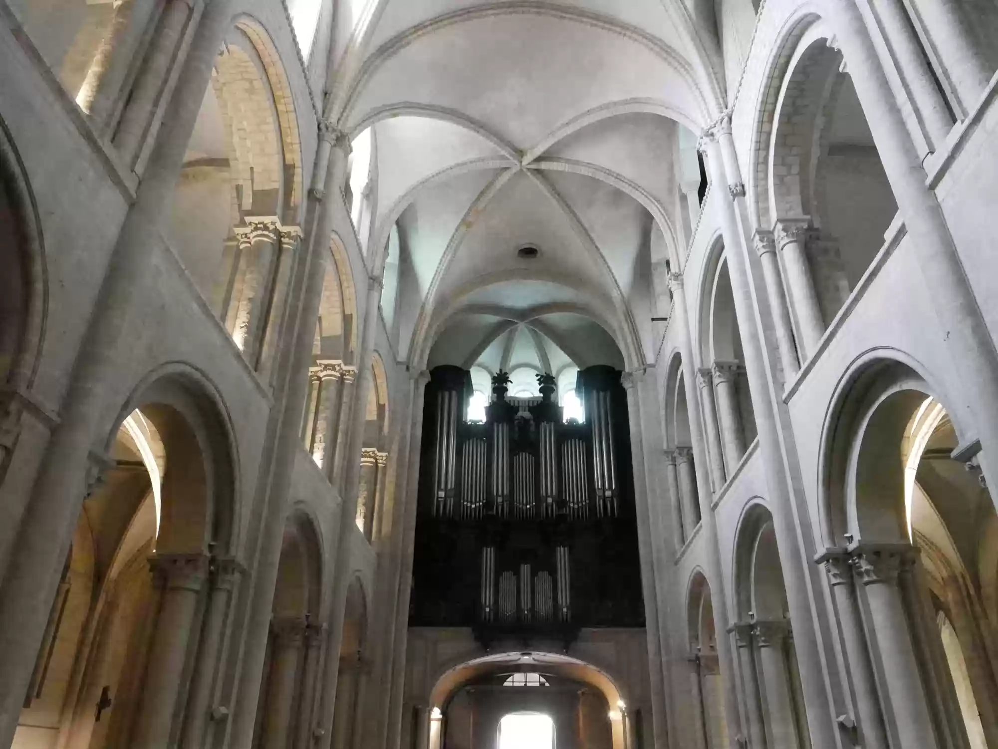 Abbey church, 1065-1077, choir and chapels from the 13th century; 110 meters long, 28 meters wide, towers: 80 meters tall.