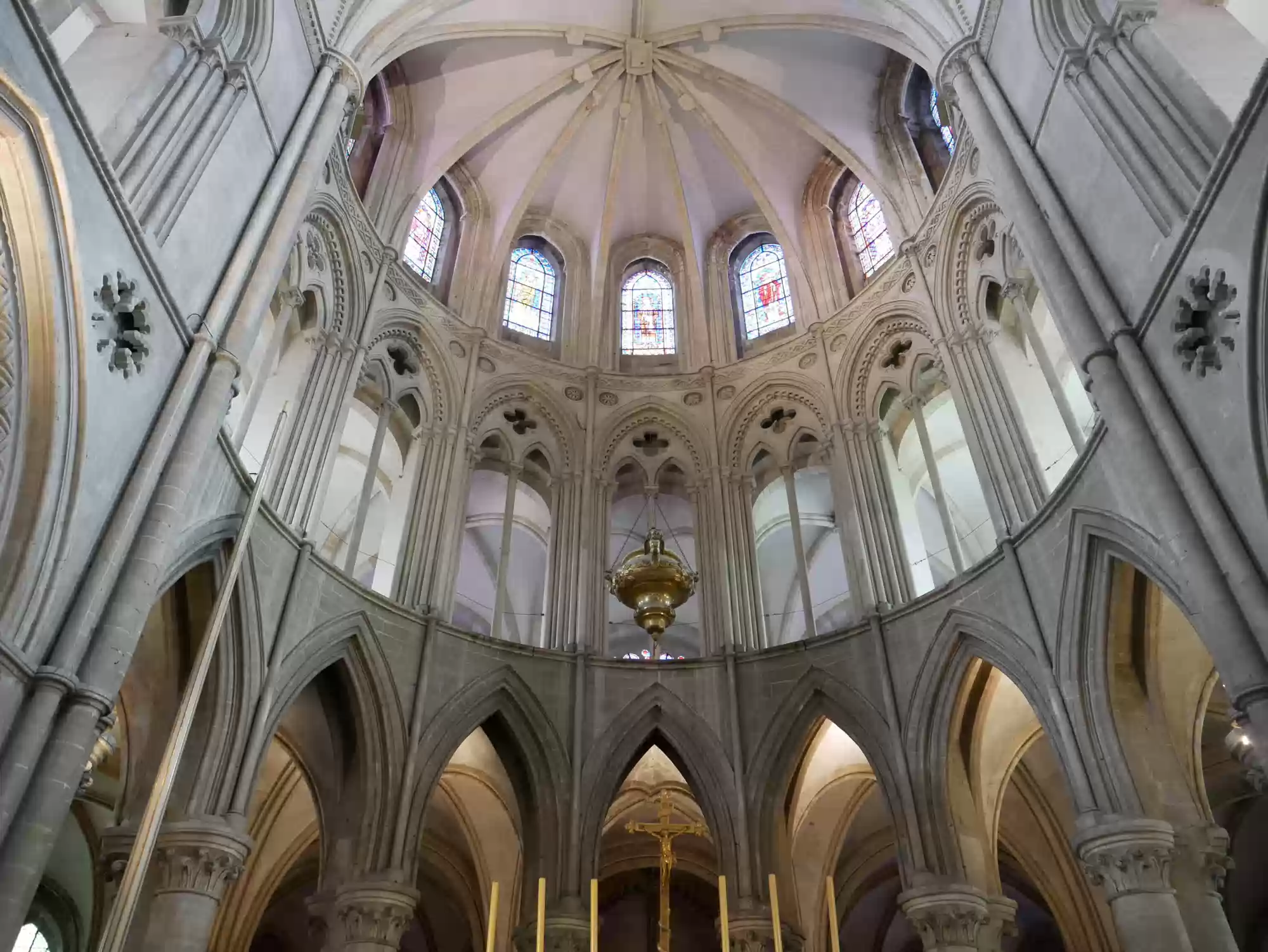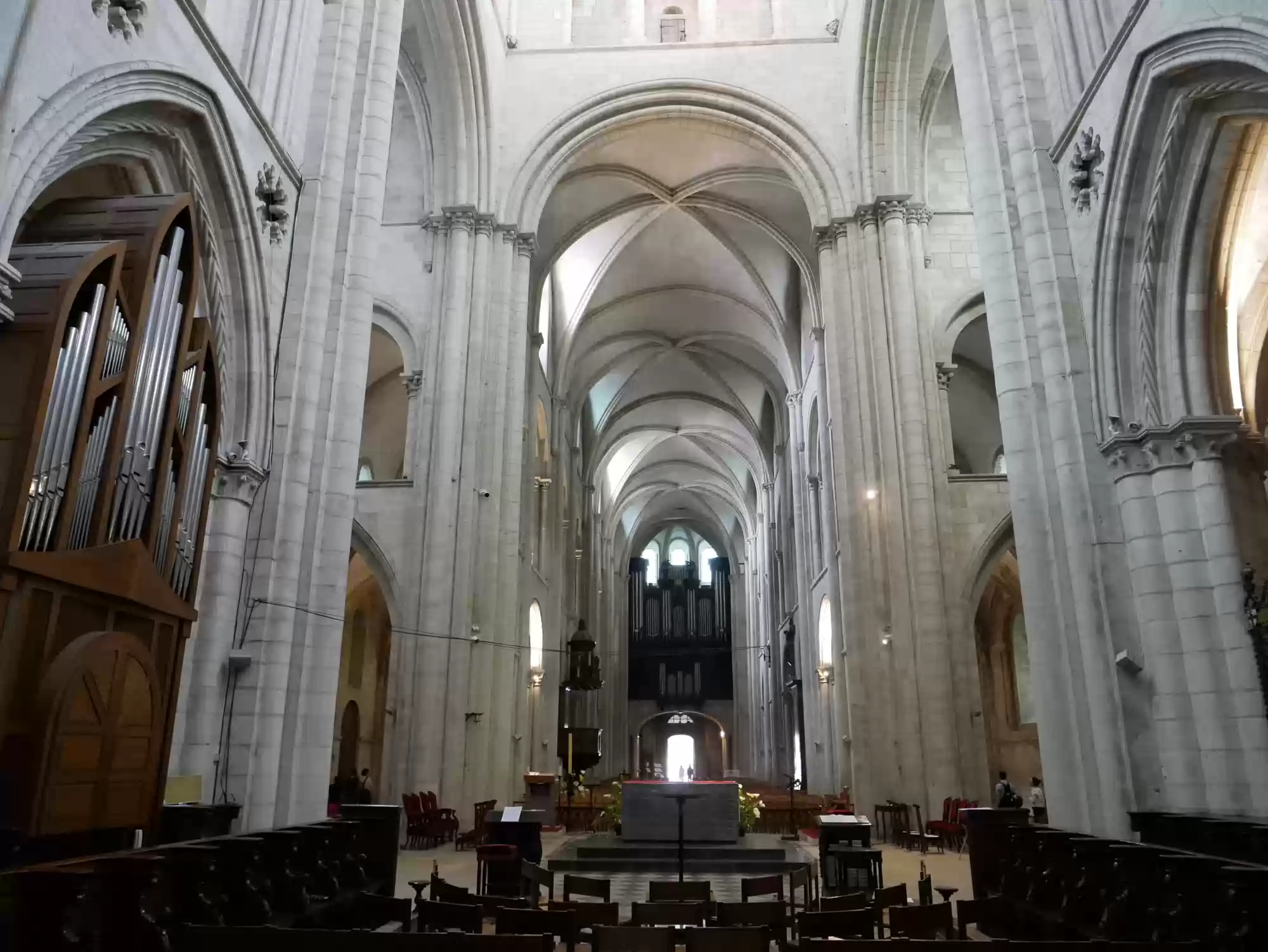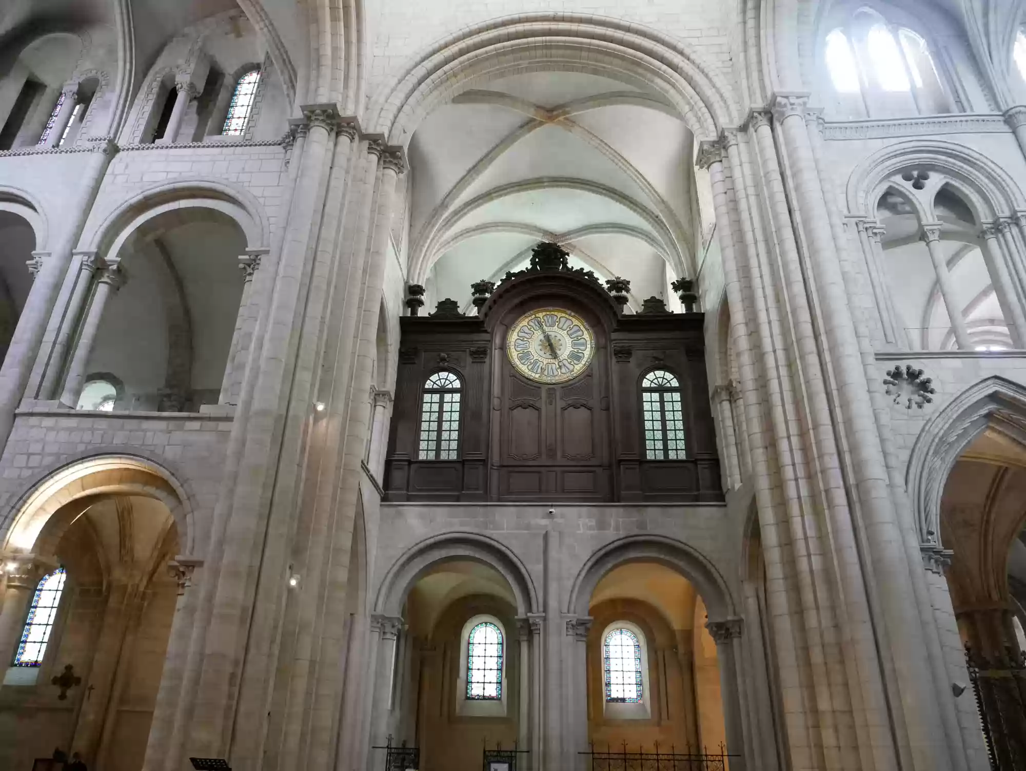 Abbey church, 1065-1077, choir and chapels from the 13th century; 110 meters long, 28 meters wide, towers: 80 meters tall.