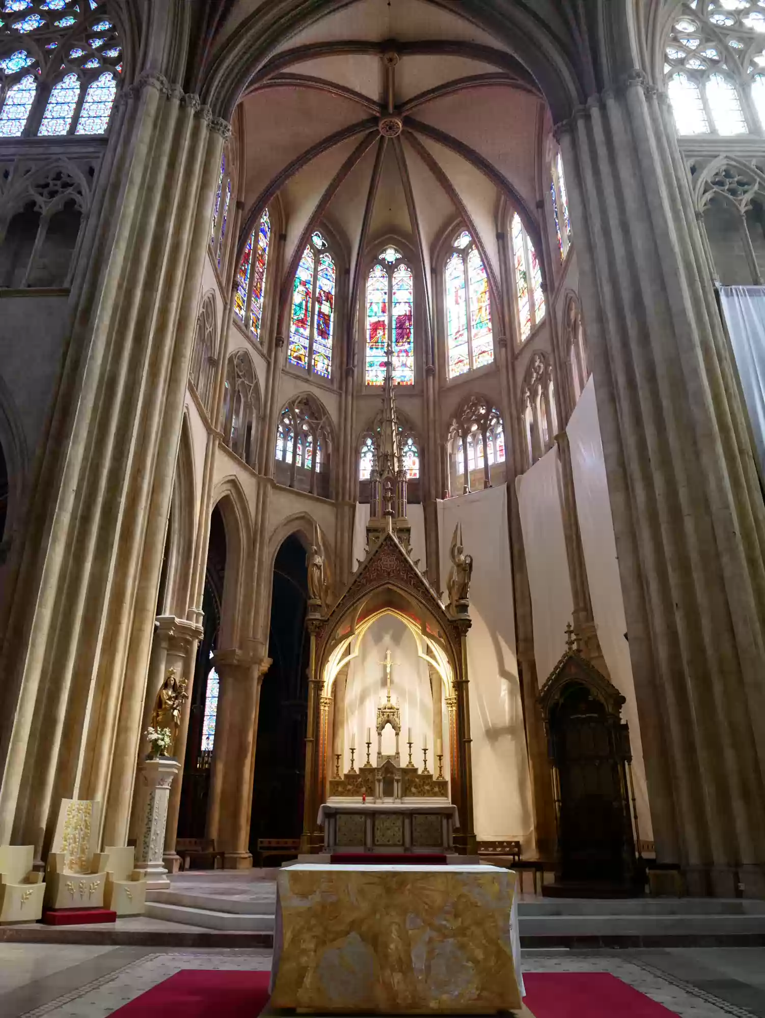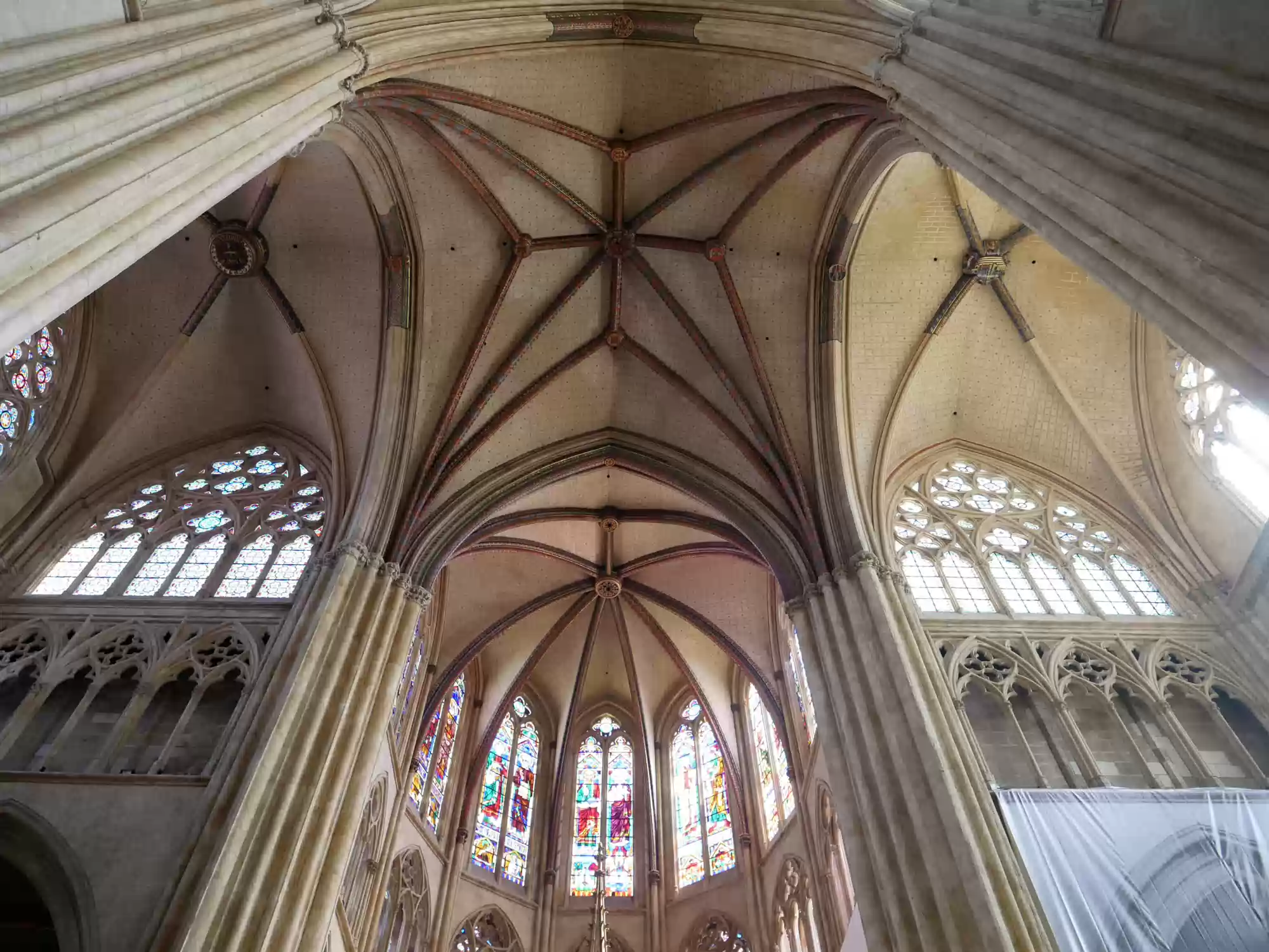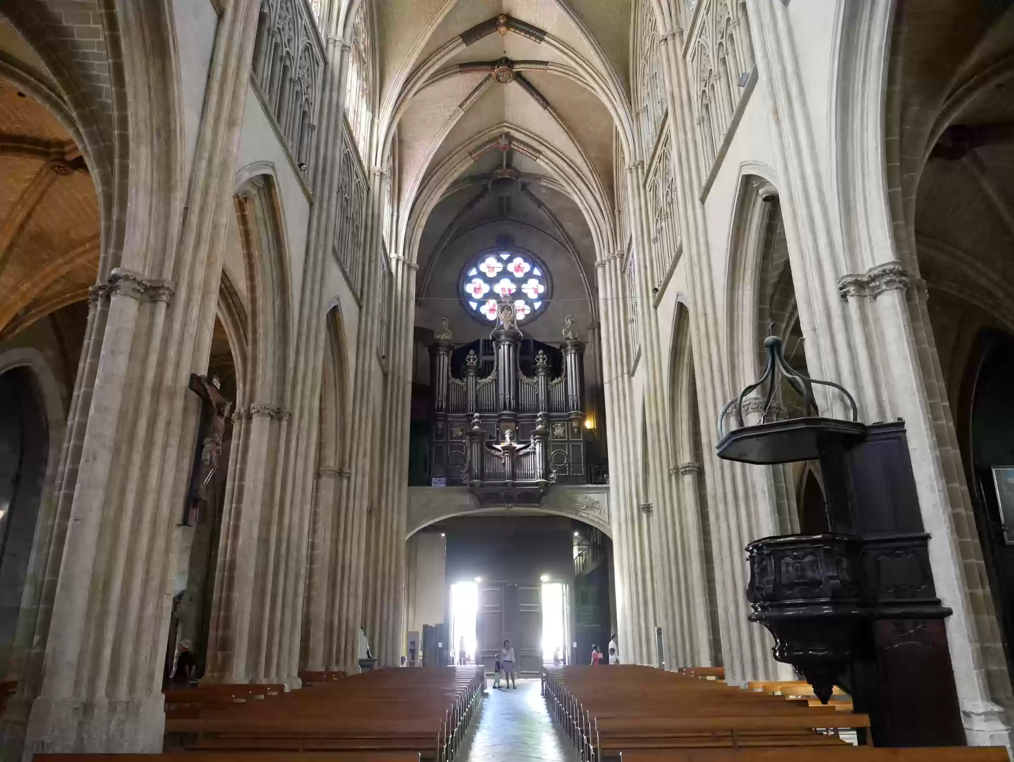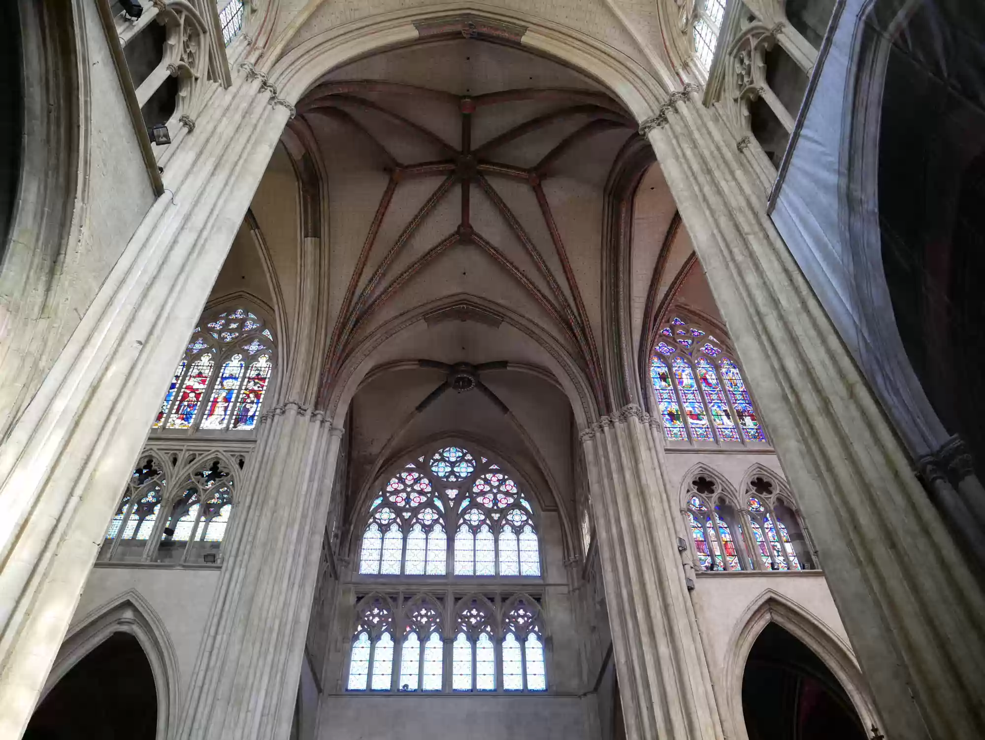 Cloister6 images Bayonne cathedral, 13-14th centuries, gothic. Bayonne cathedral, 13-14th centuries, gothic. Choir furniture, by Dominique Kaeppelin, 2003. Chapel. Canaanite stained-glass window, 1531, Renaissance. Healing of a daughter of a canaanite man by Jesus. Petit Bayonne Labels