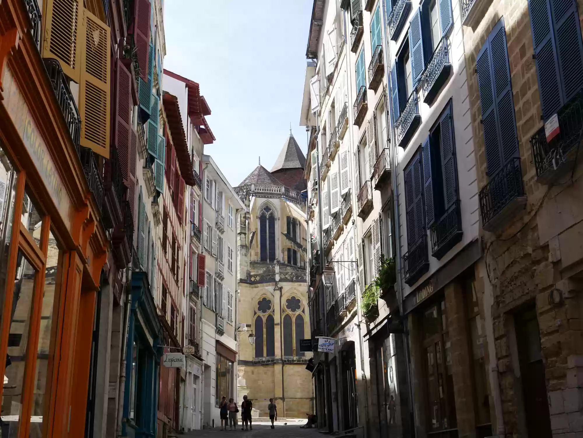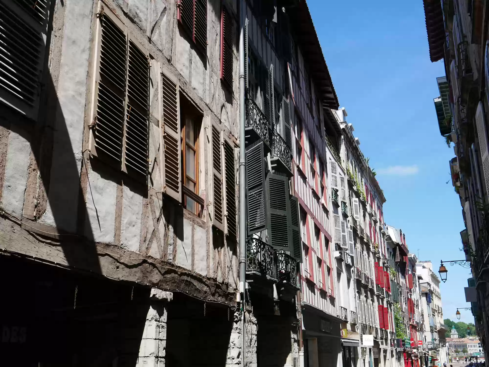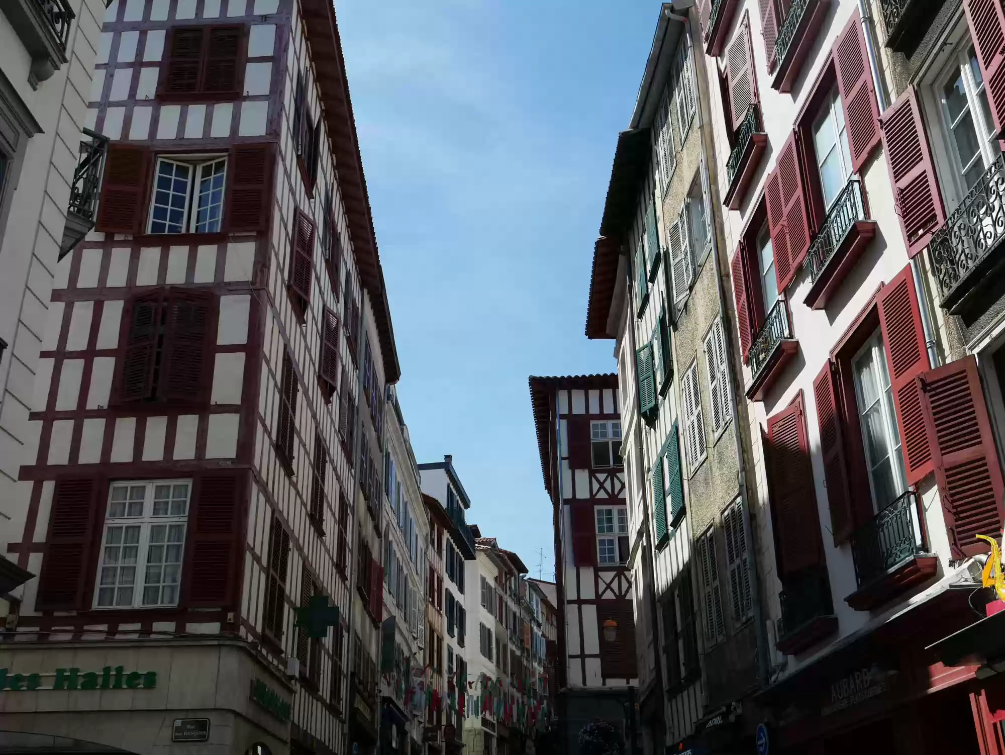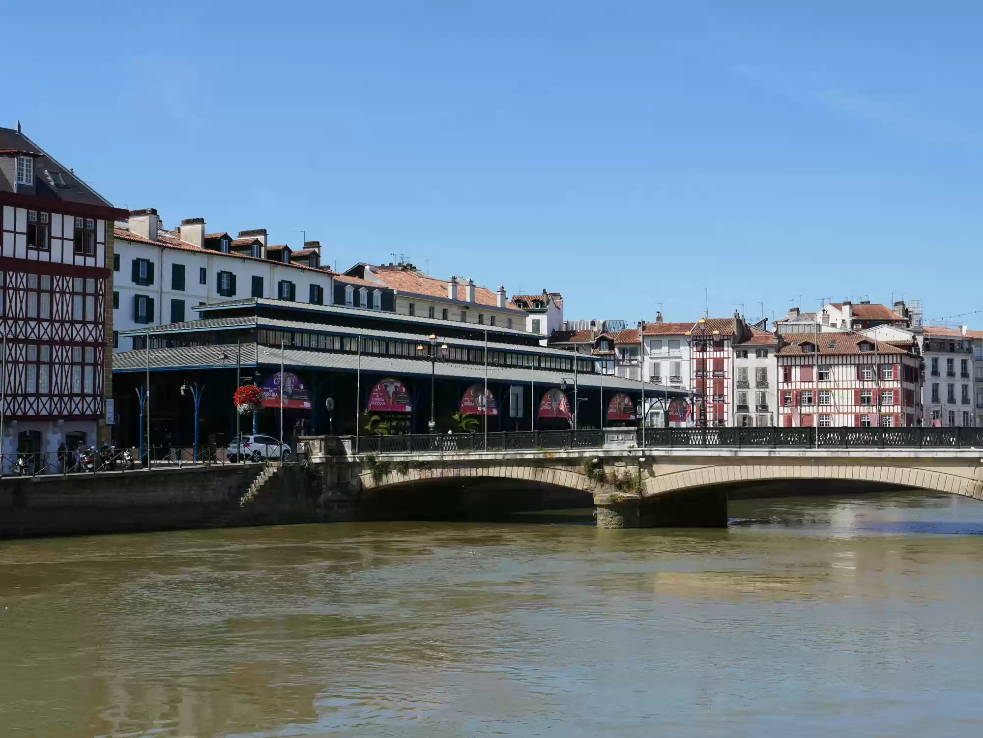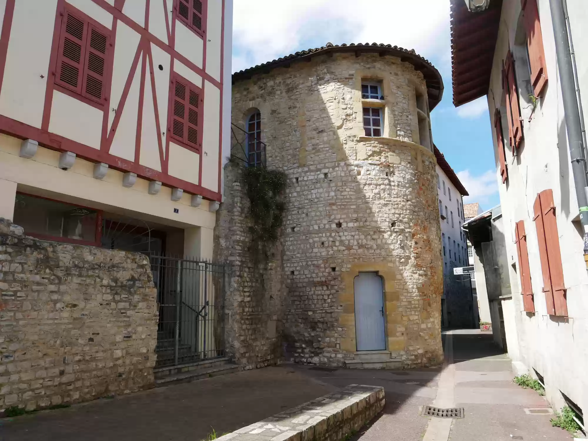 Covered market. Covered market. Roman tower and wall. Old castle, 11-17th centuries. 16th century building, the earliest one to feature a street-facing garble. Petit Bayonne Labels