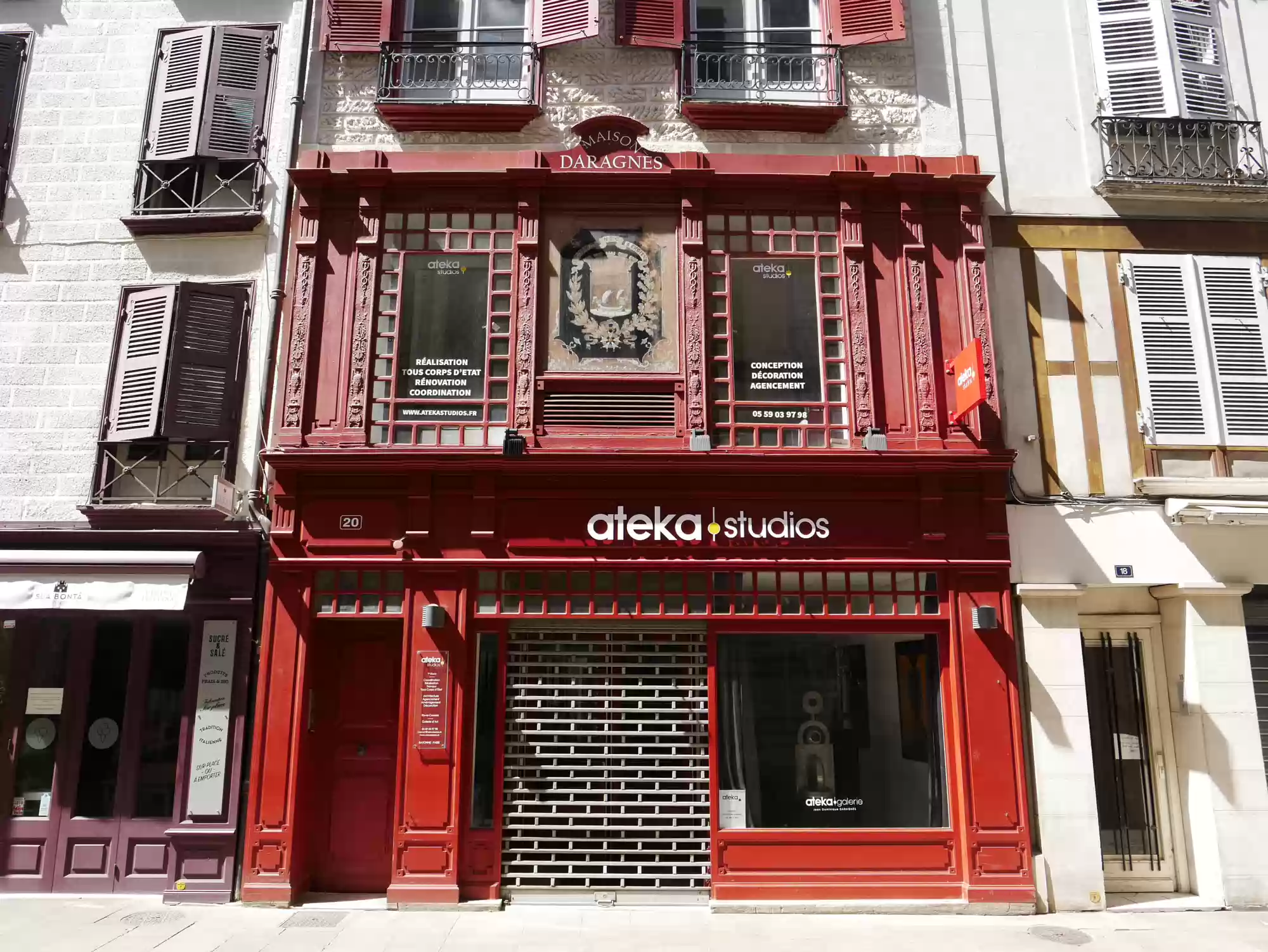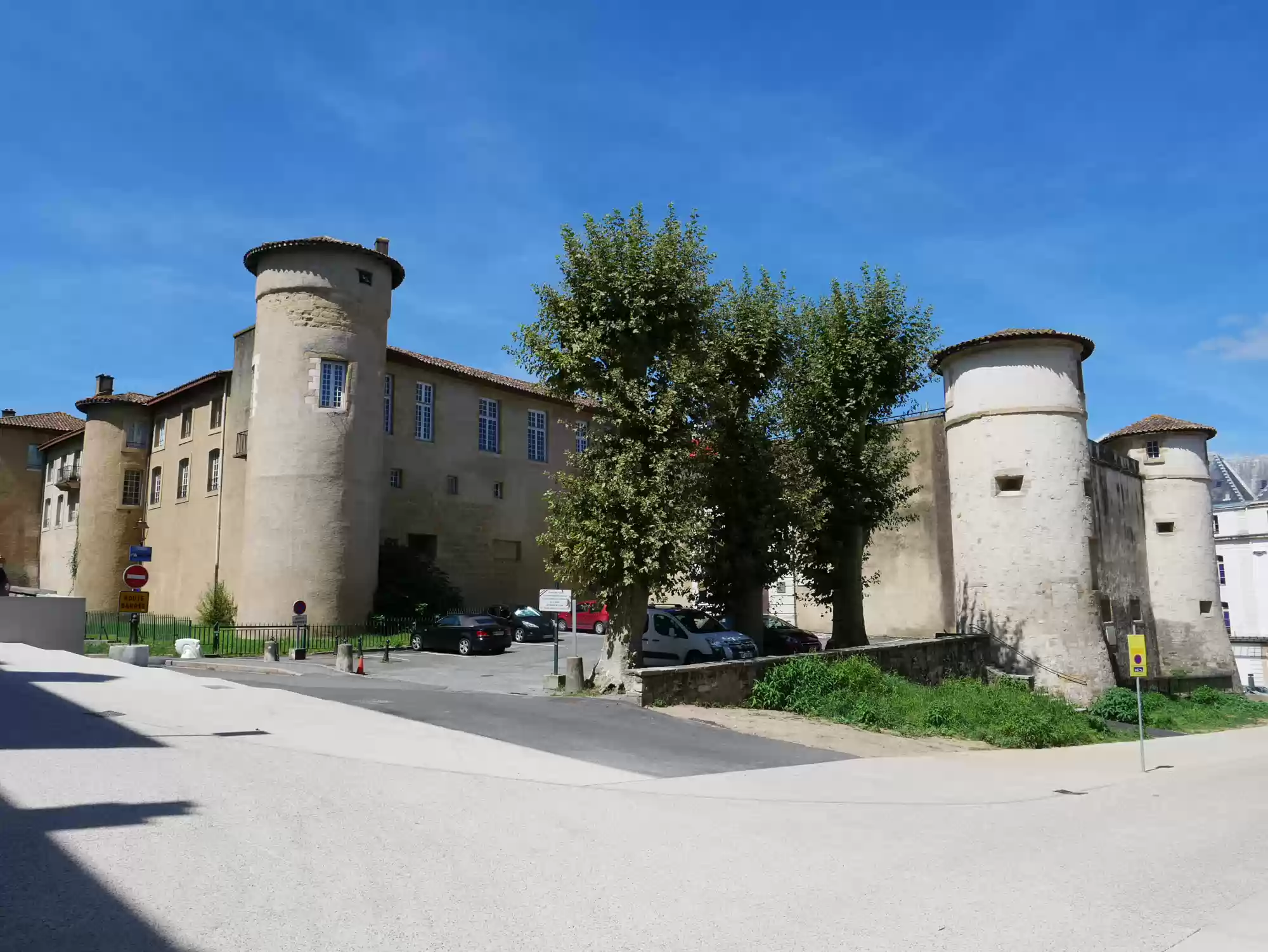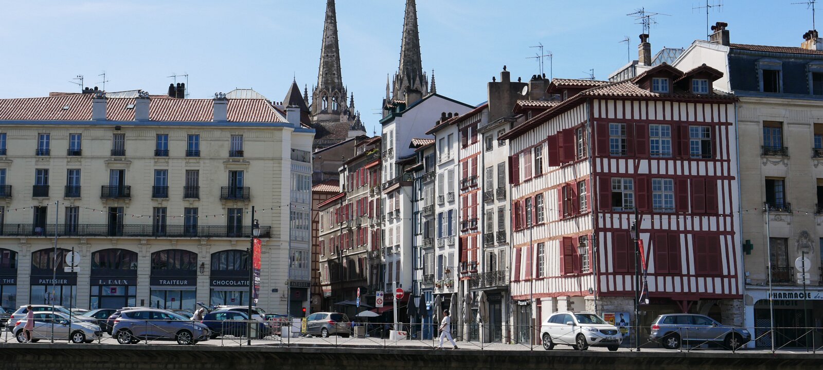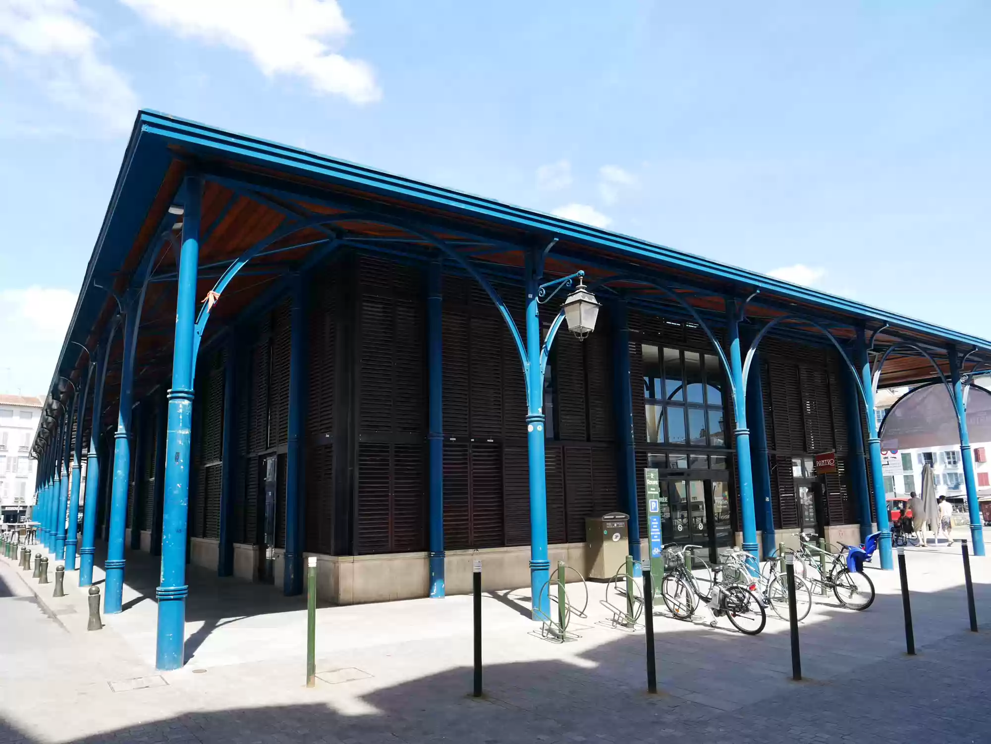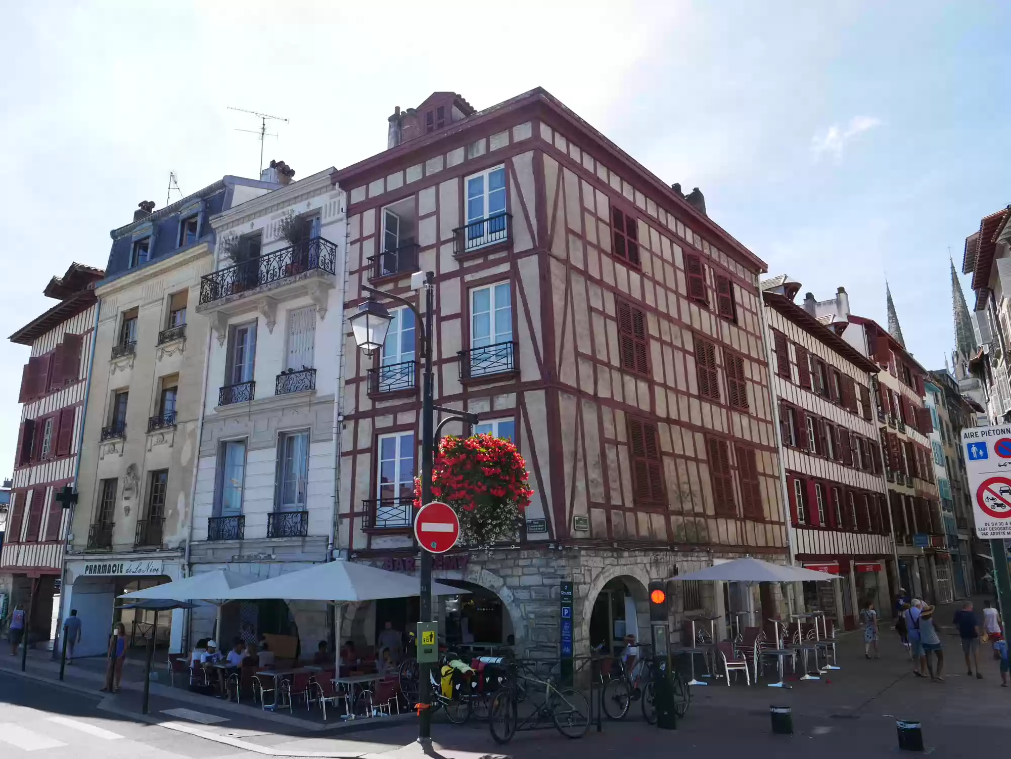 Covered market. Covered market. Roman tower and wall. Old castle, 11-17th centuries. 16th century building, the earliest one to feature a street-facing garble. Petit Bayonne Labels