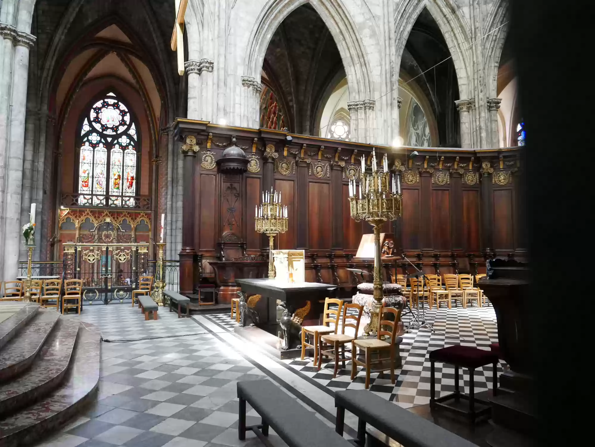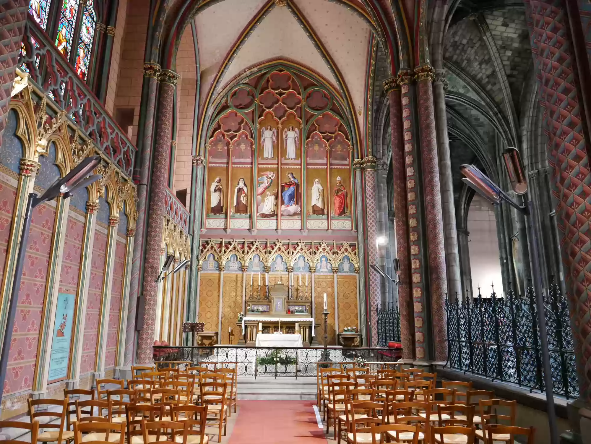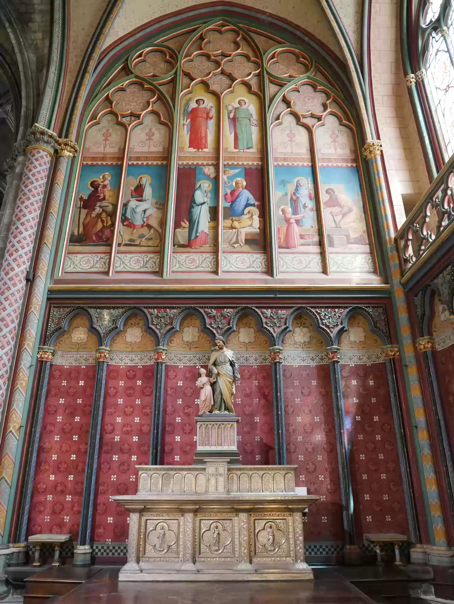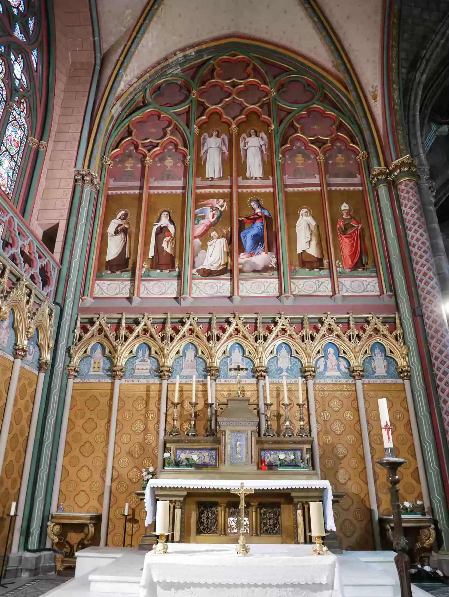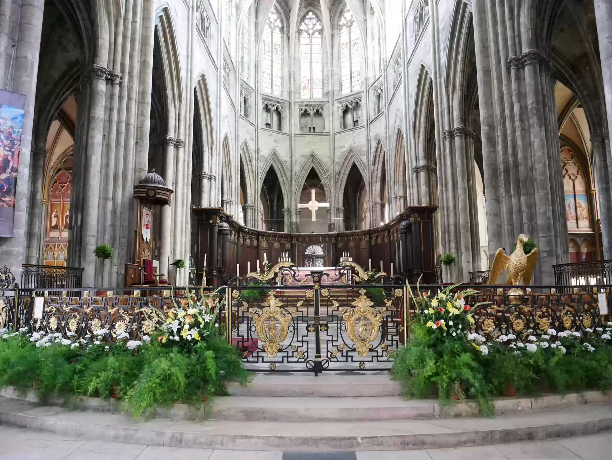 Nave, 2nd half of the 12th century. Nave, 2nd half of the 12th century. Choir, 1310-1330. Choir, 1310-1330. Choir. Saint Andrew. Saint Andrew. Mount Carmel chapel, wall paintings from 1861-1862. Mount Carmel chapel, wall paintings from 1861-1862. Mount Carmel chapel, wall paintings from 1861-1862. Saint Margaret chapel. Sacred heart chapel. Pey Berland tower Labels