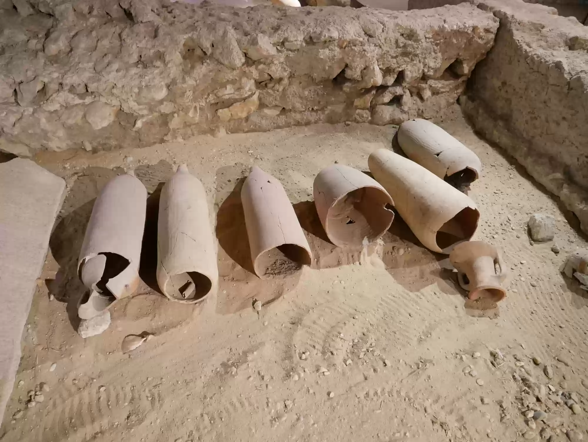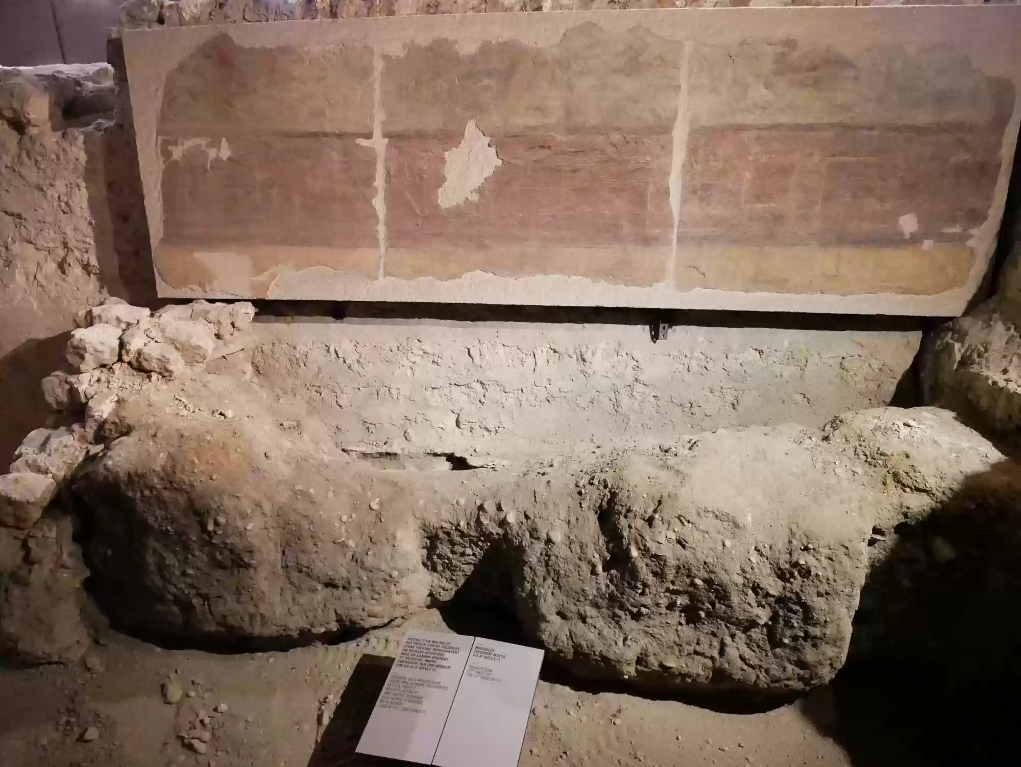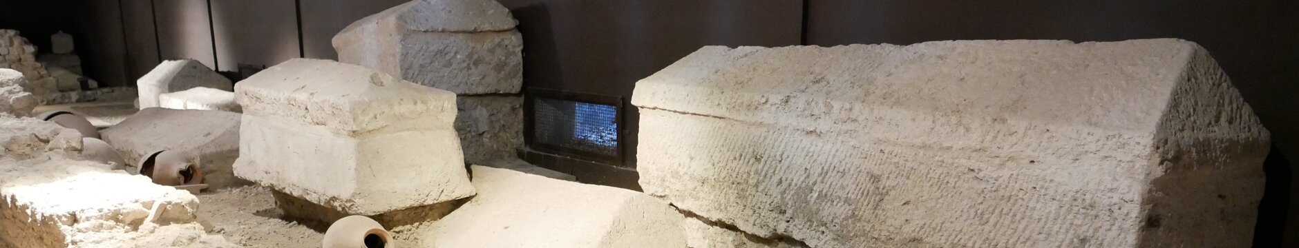 Paleochristian cemetery in the crypt of the church. 150 tombs were discovered. Foundation of a 4th-5th century building, maybe a church.