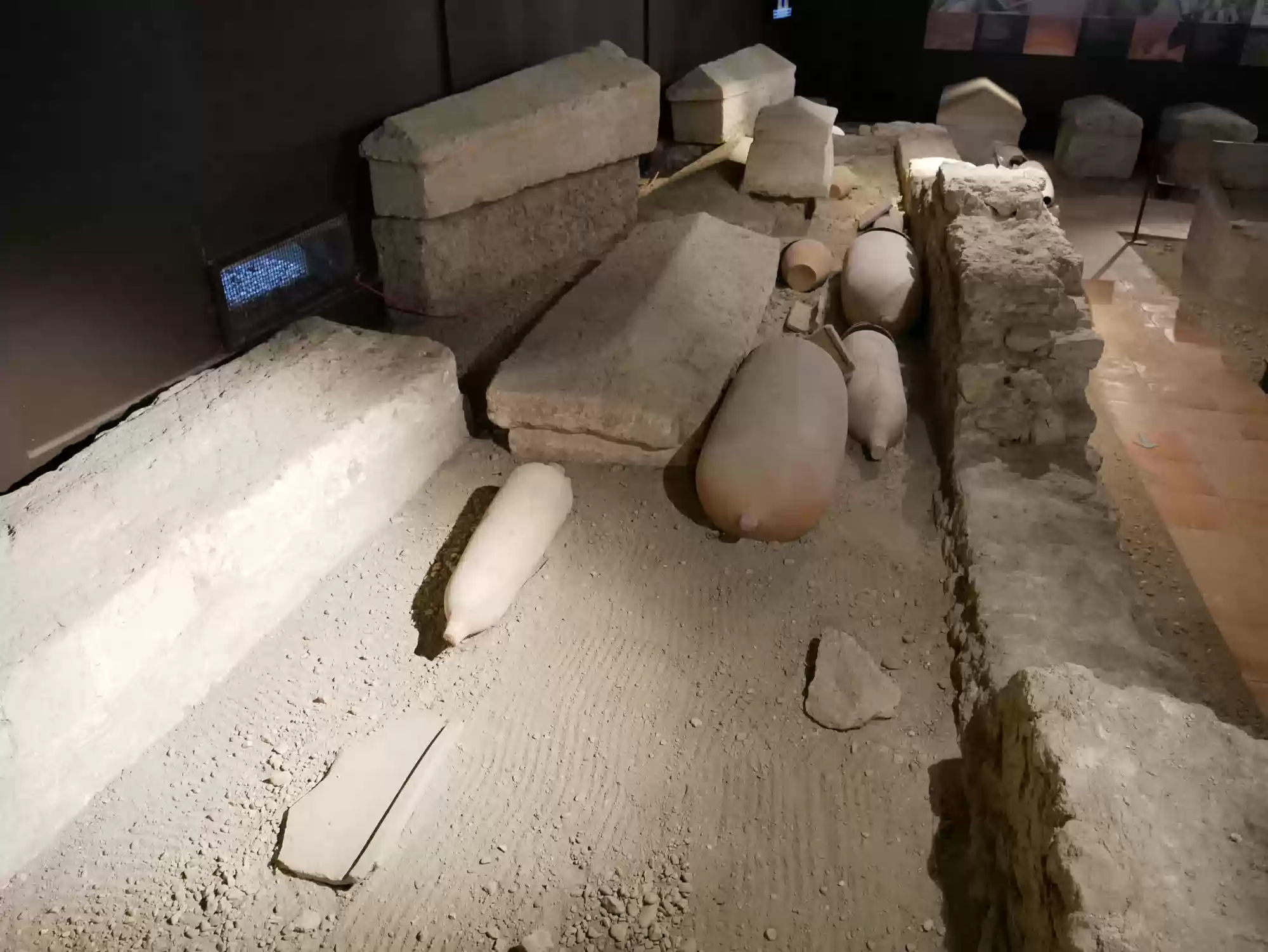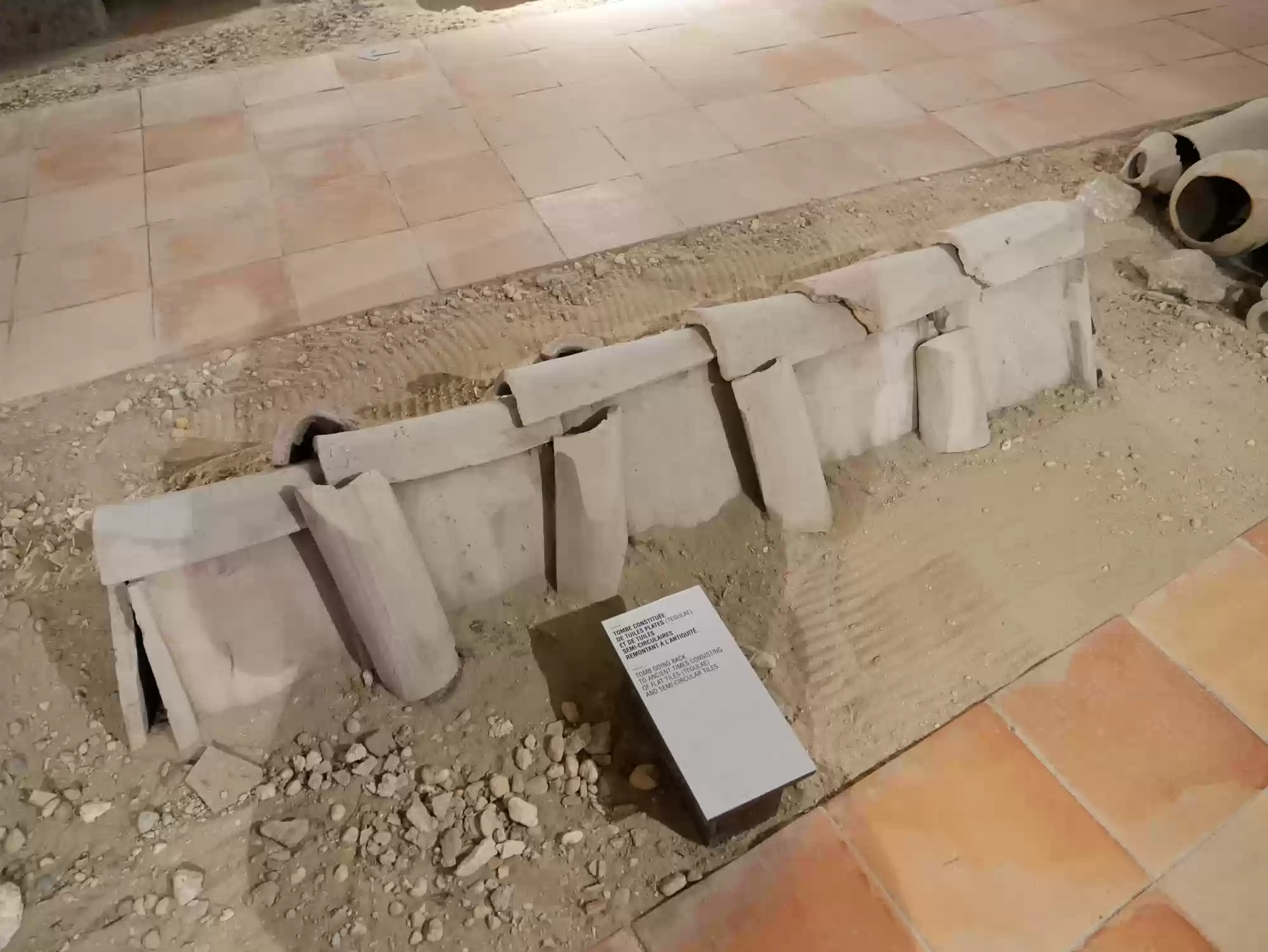 Tomb made of flat tiles (tegulae) and semi-circular tiles.