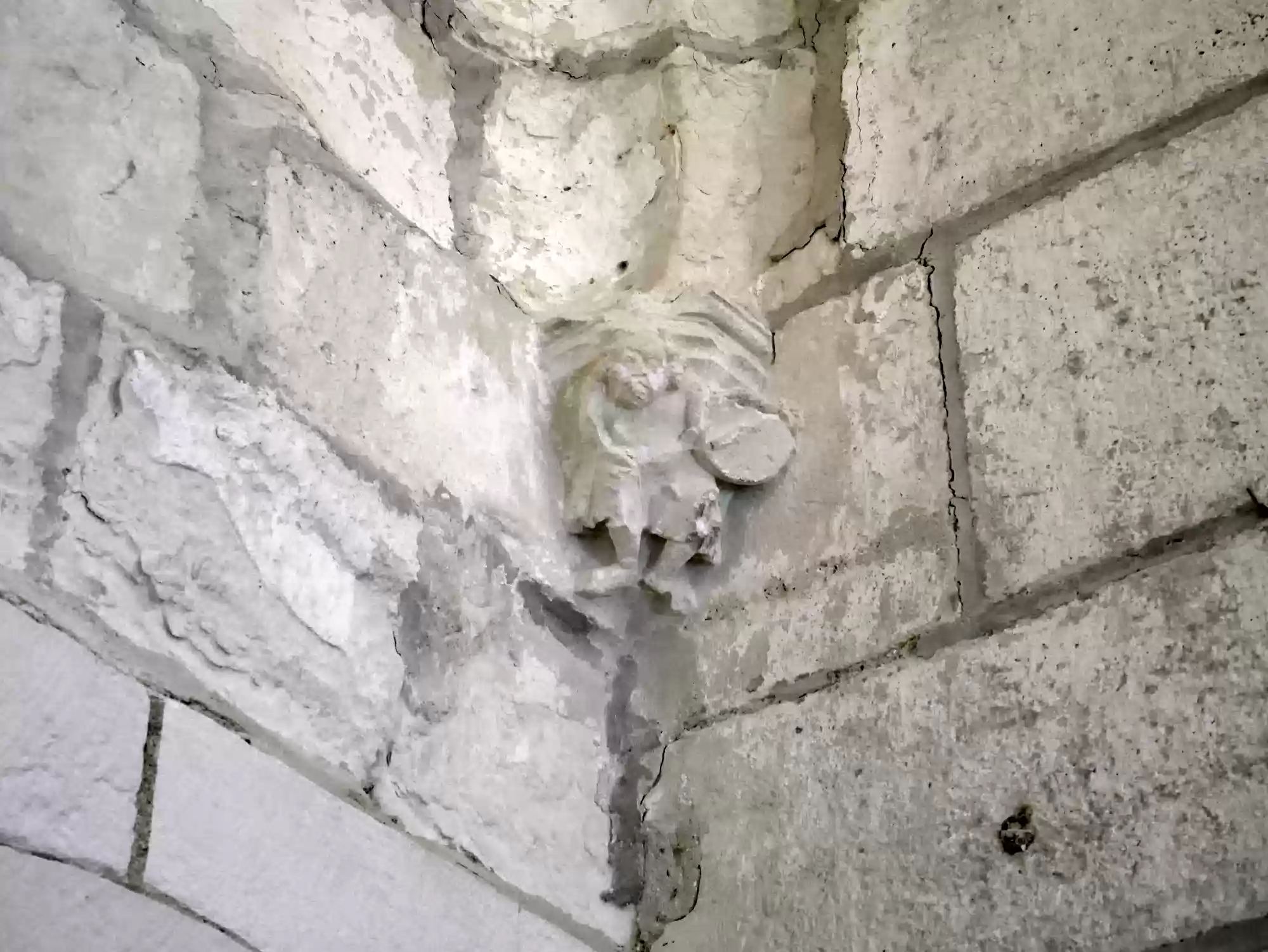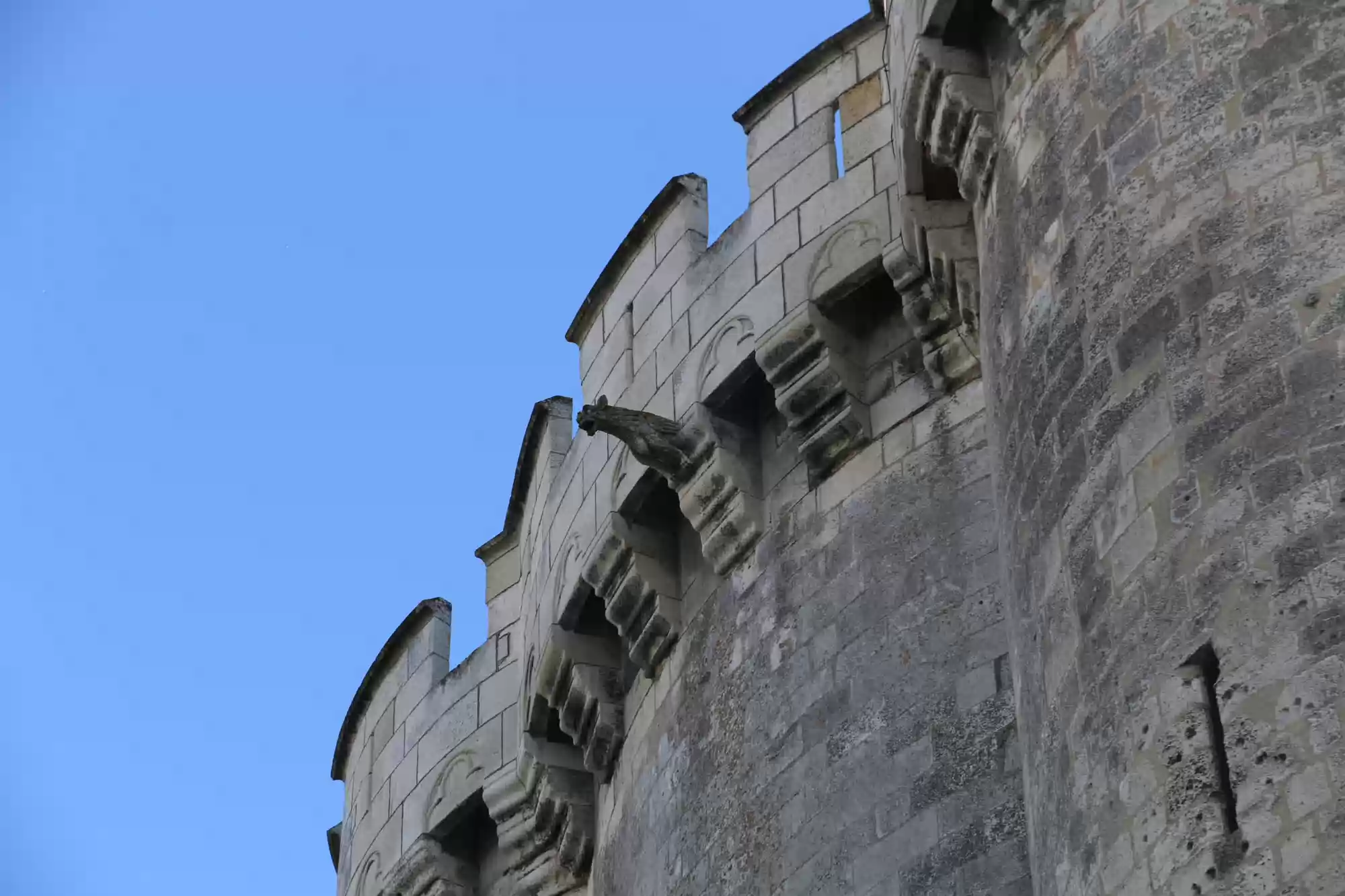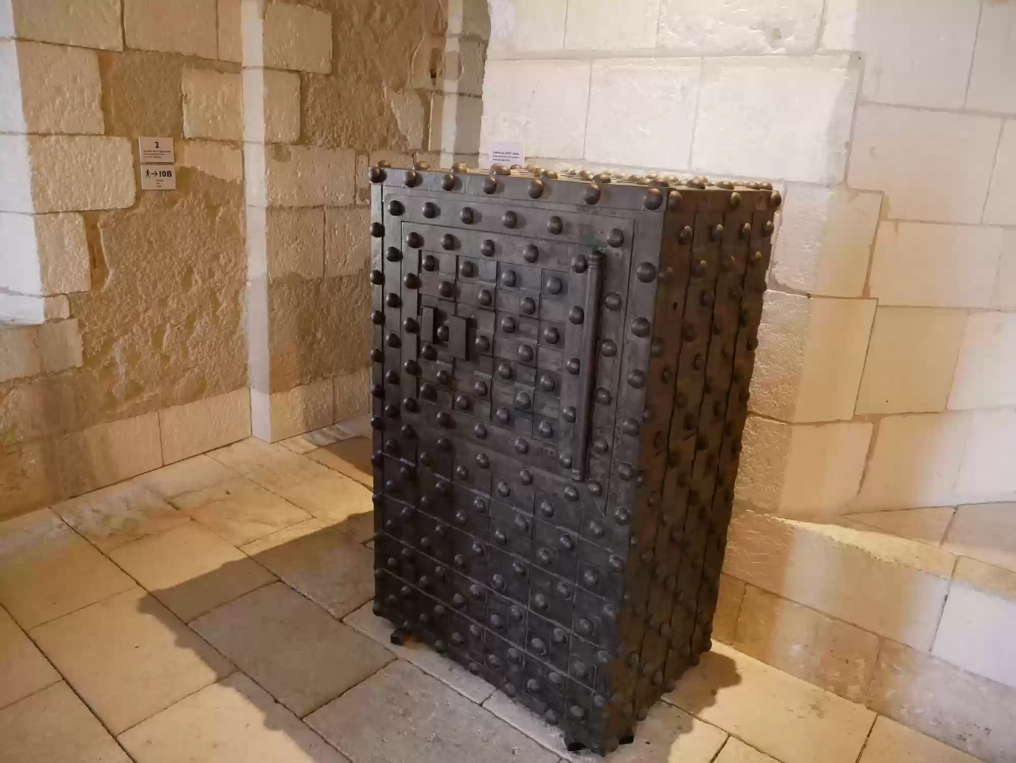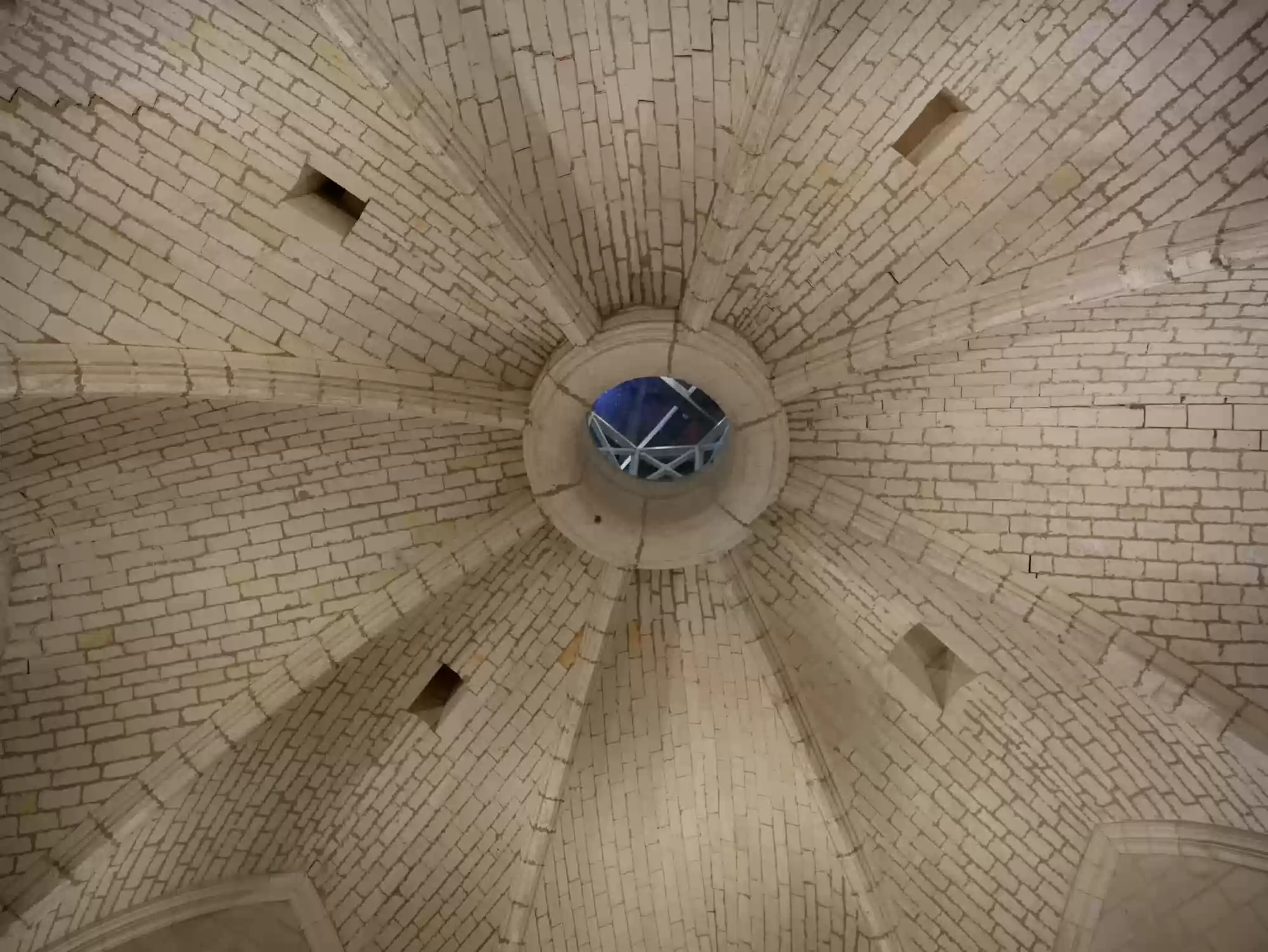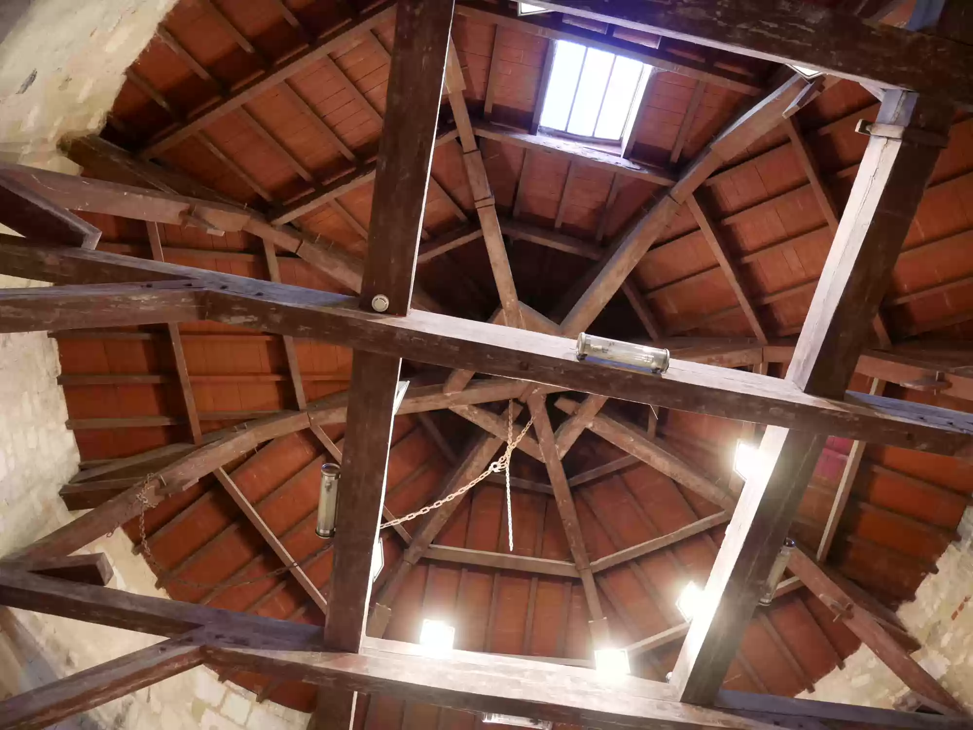 Double-helix staircase. The stairs are very steep as a second set of steps run in parallel in the same staircase. People can cross without seeing each other.