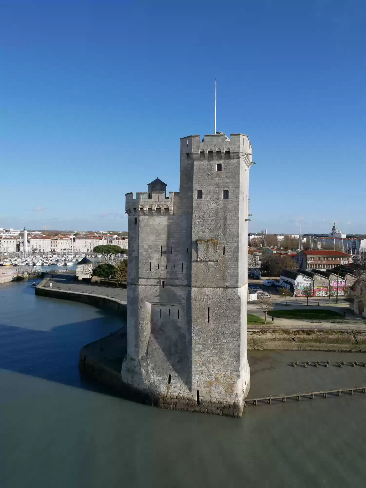 Saint Nicolas tower, 36 tall, second half of the 14th century. The tower was built over piles and started leaning early during the construction phase. The…