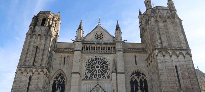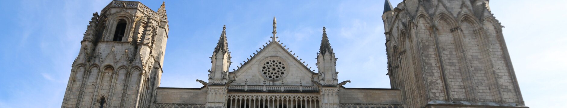 Saint Peter cathedral, 12th and 13th century. Construction lasted over 100 years. Back wall of the cathedral. Back wall of the cathedral. Choir stalls from the mid-13th century. Choir stalls from the mid-13th century. Choir stalls from the mid-13th century. Choir stalls from the mid-13th century. Choir stalls from the mid-13th century. Choir stalls from the mid-13th century. Notre-Dame-la-Grande Labels
