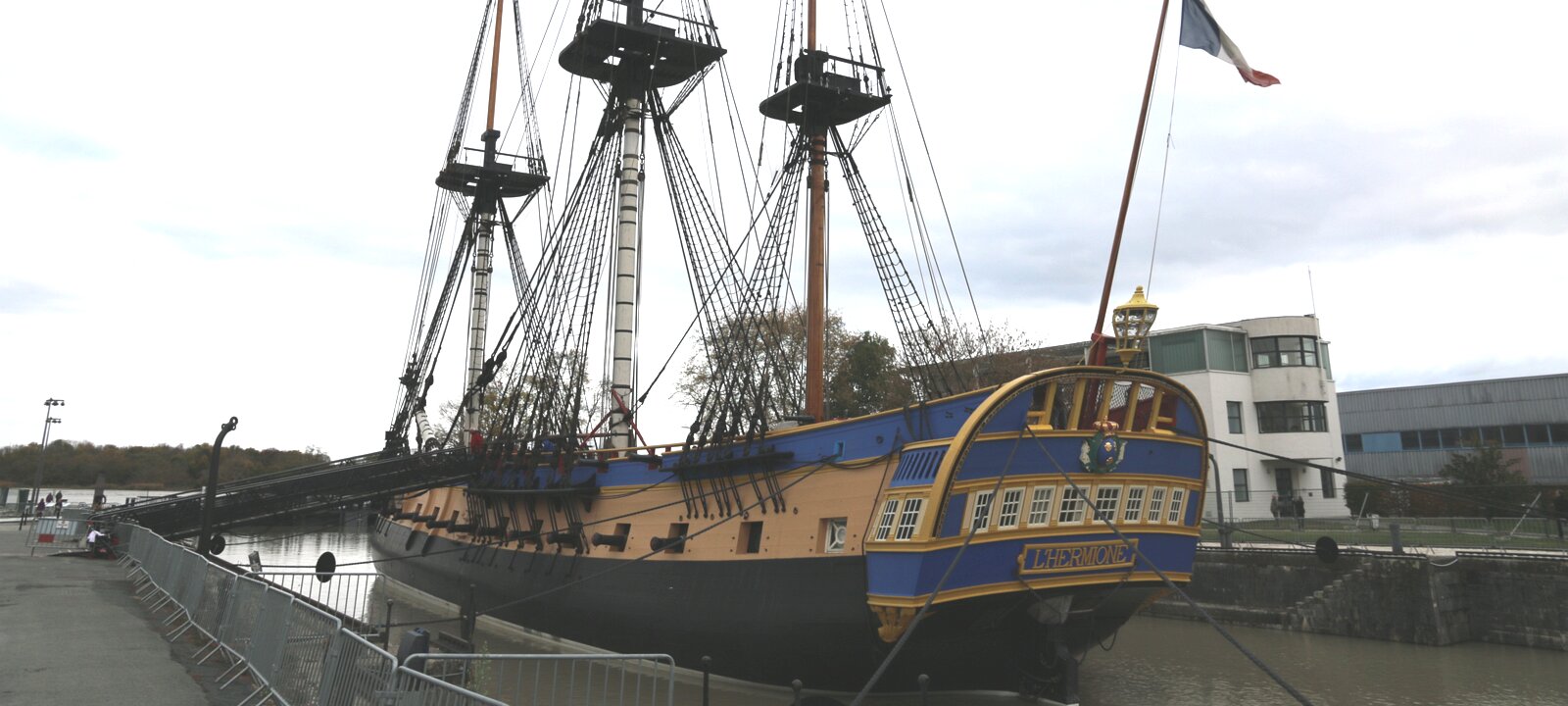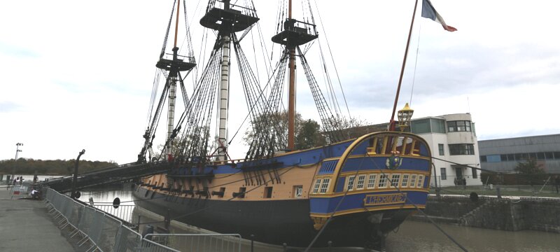 Hermione43 images Building area. Rochefort is around 10km from the sea; boats were launched on the Charentes river before they could reach the Atlantic ocean. Royal rope factory (corderie royale) Labels