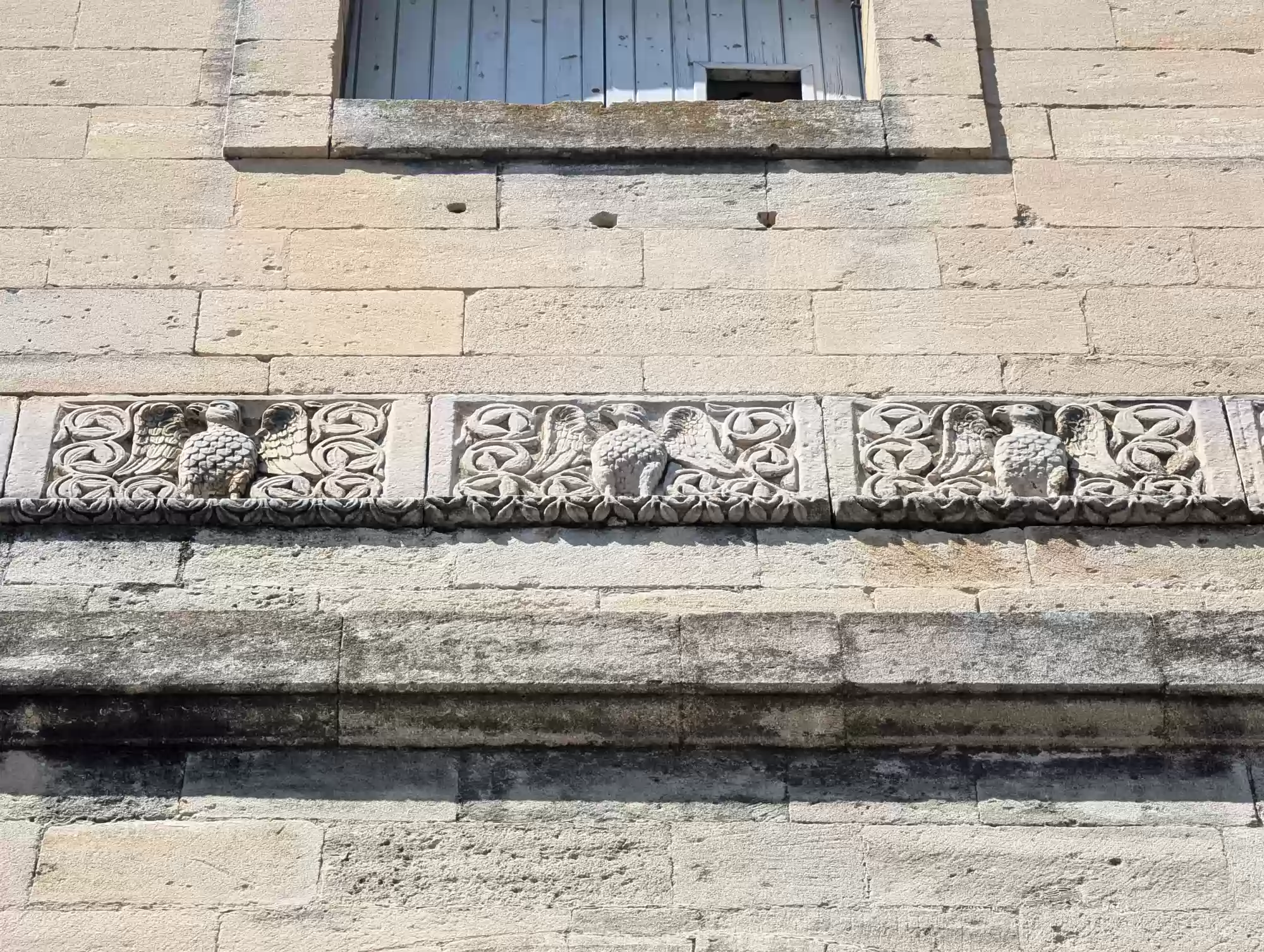 Church, 18th century, with a 12th century frieze from a former church. Frieze, 12th century. Frieze, 12th century. Frieze, 12th century. Frieze, 12th century. CastleSaint-Roman Labels