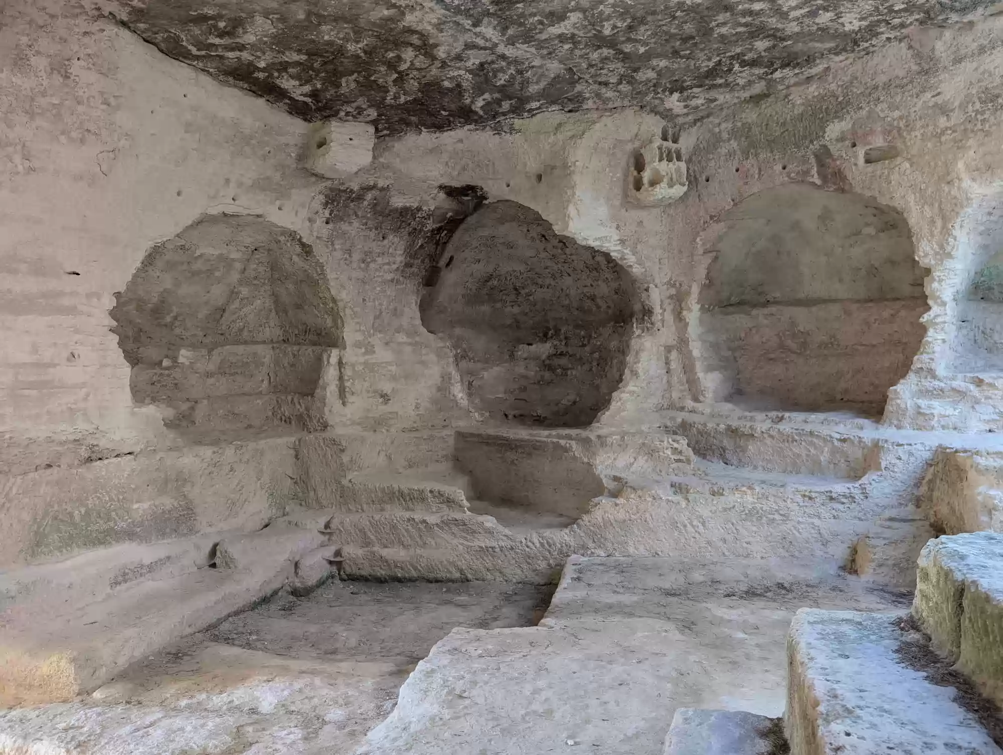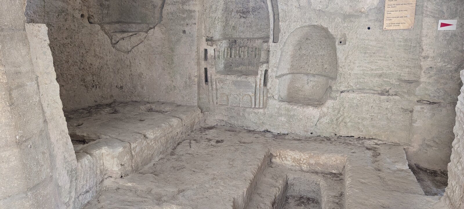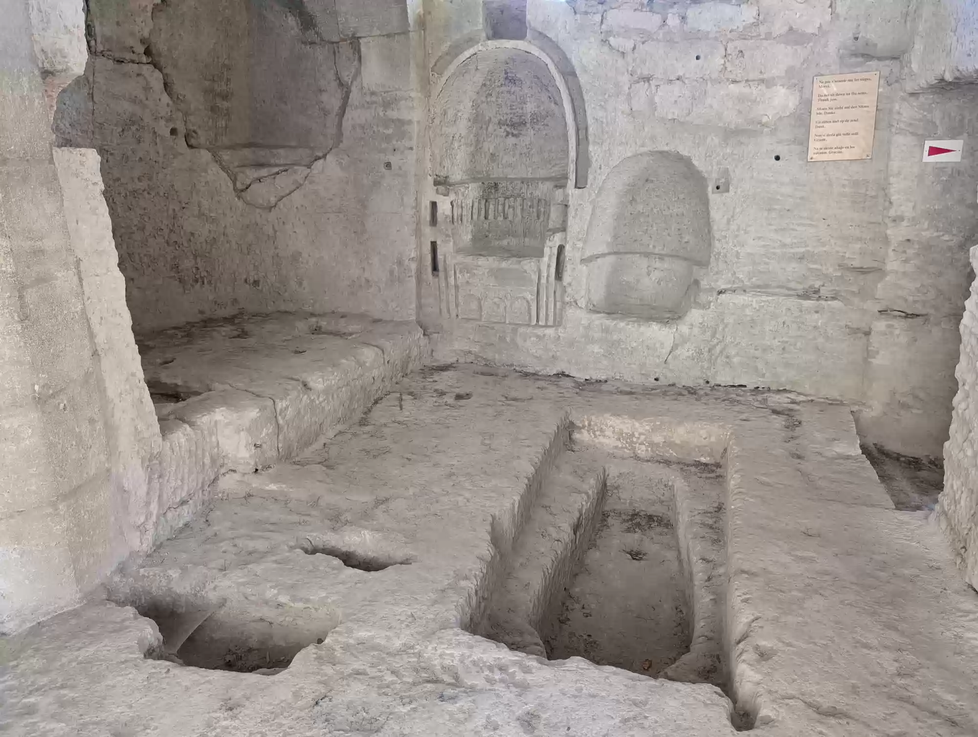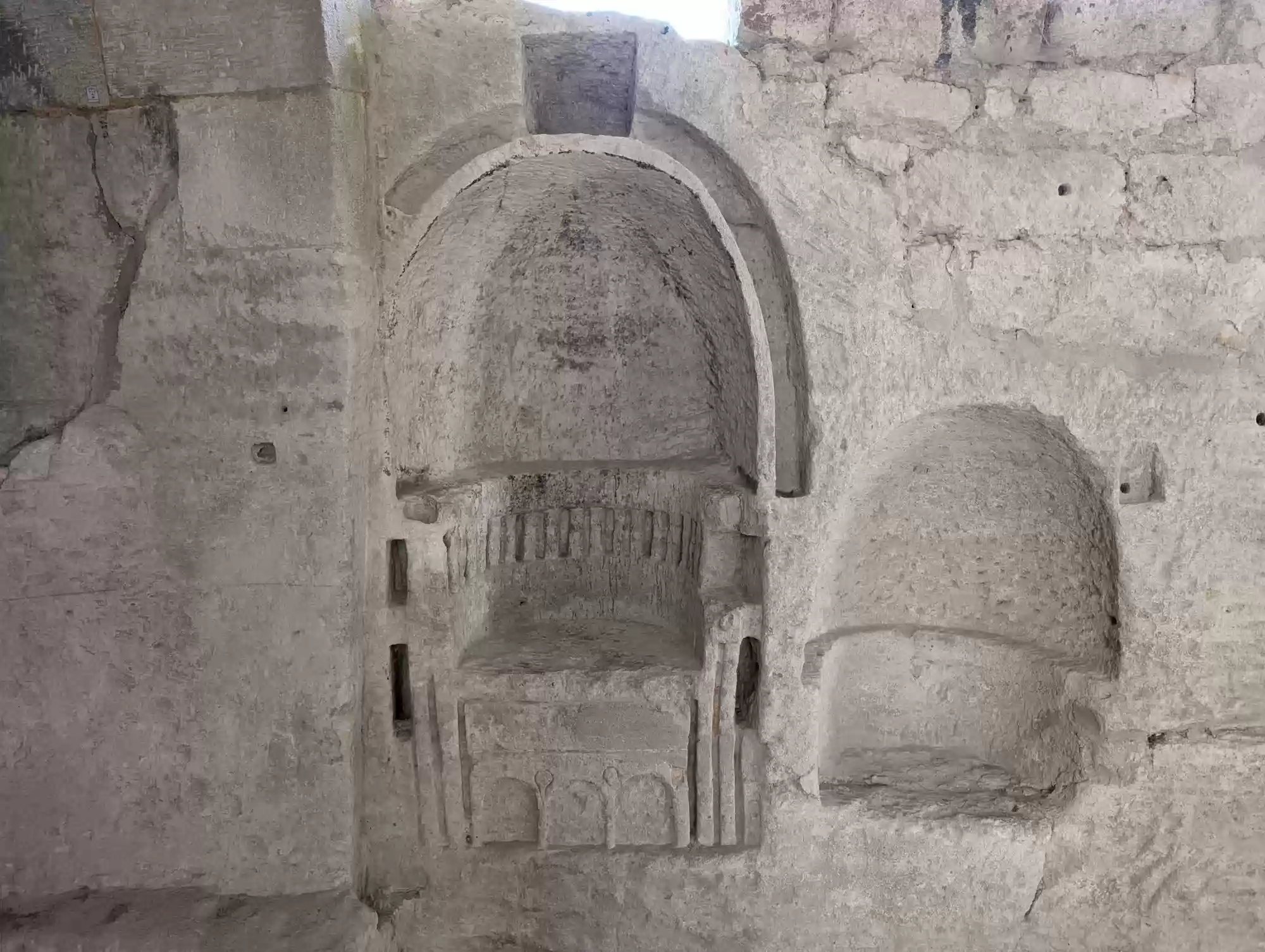 Chapel, medieval, date unclear. The recesses were used to install lights.