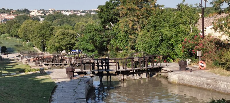 Canal du midi, built in the 17th century between Toulouse and the Mediterranean sea, 241 km. In Béziers, the Fonseranes set of 8 locks allow to climb…