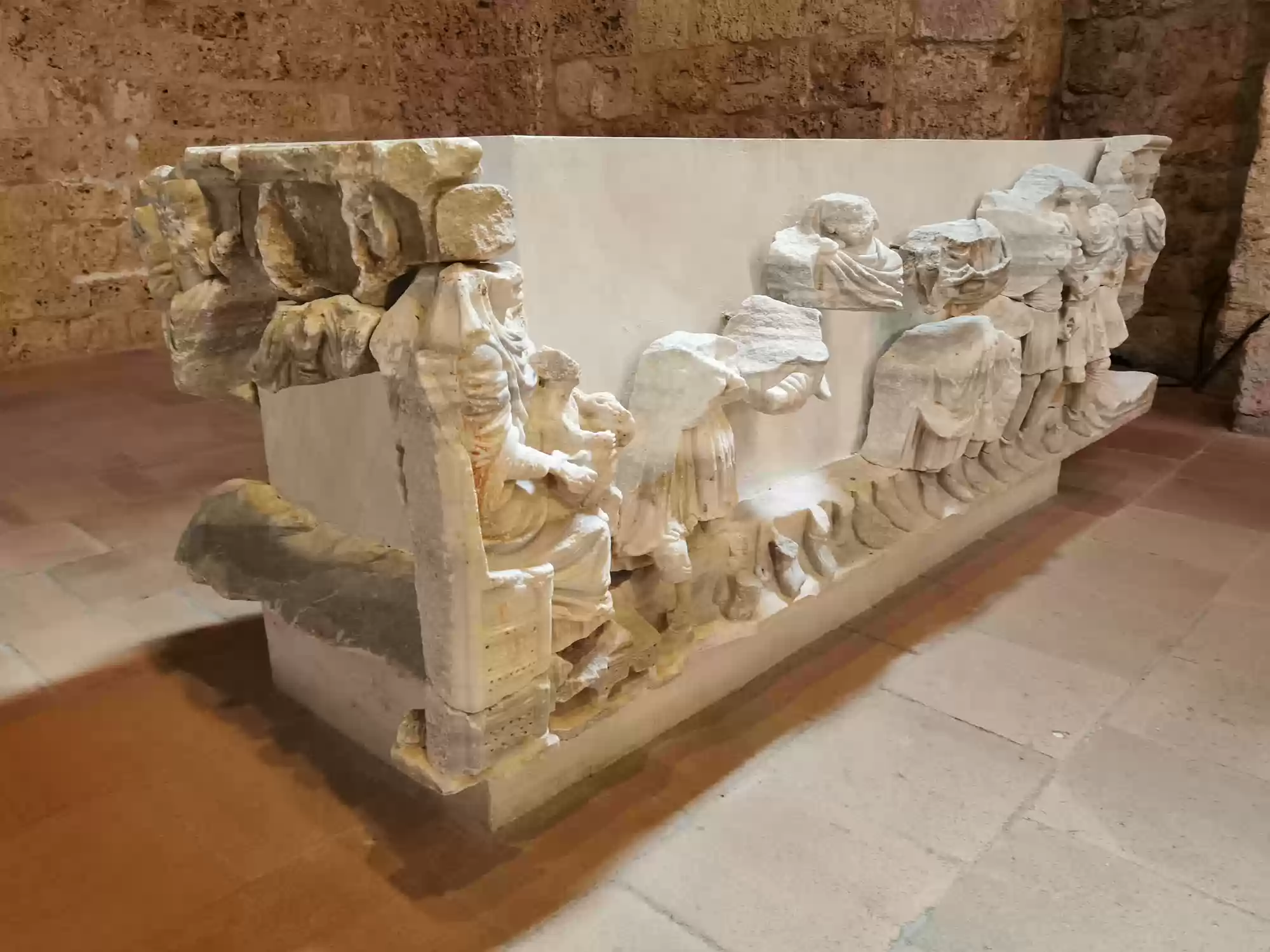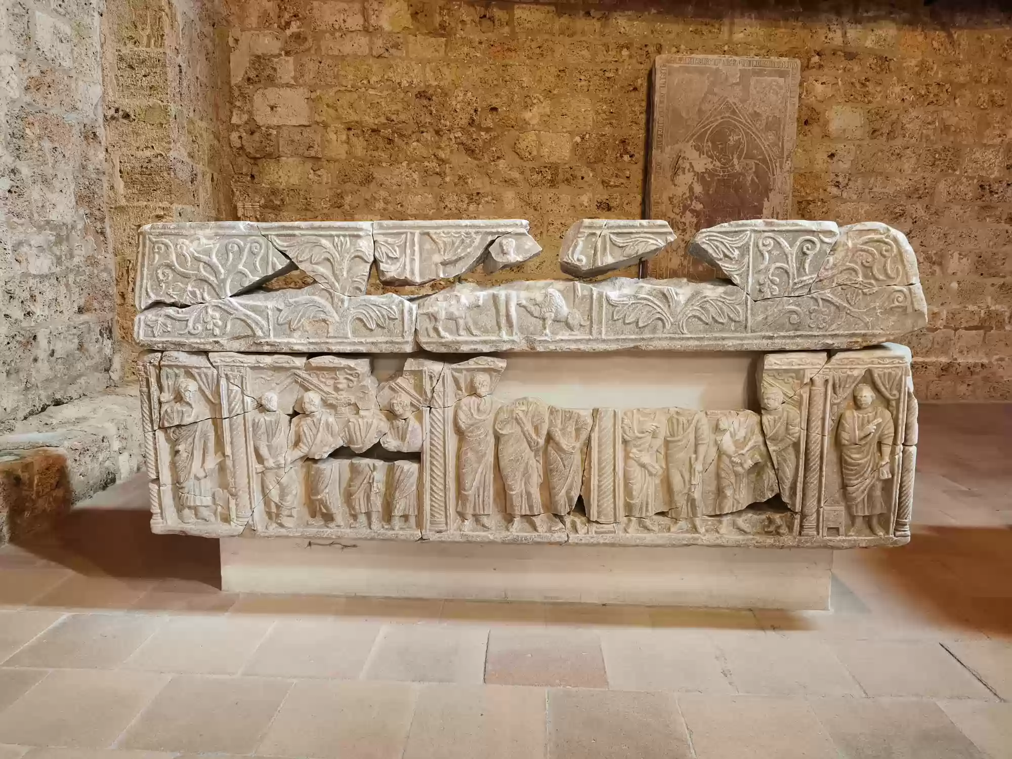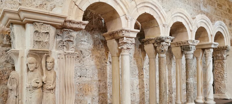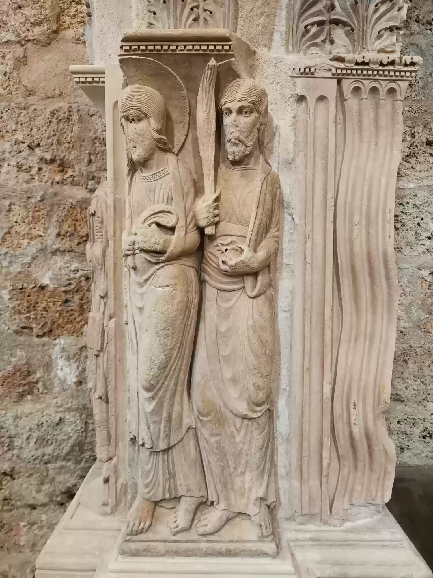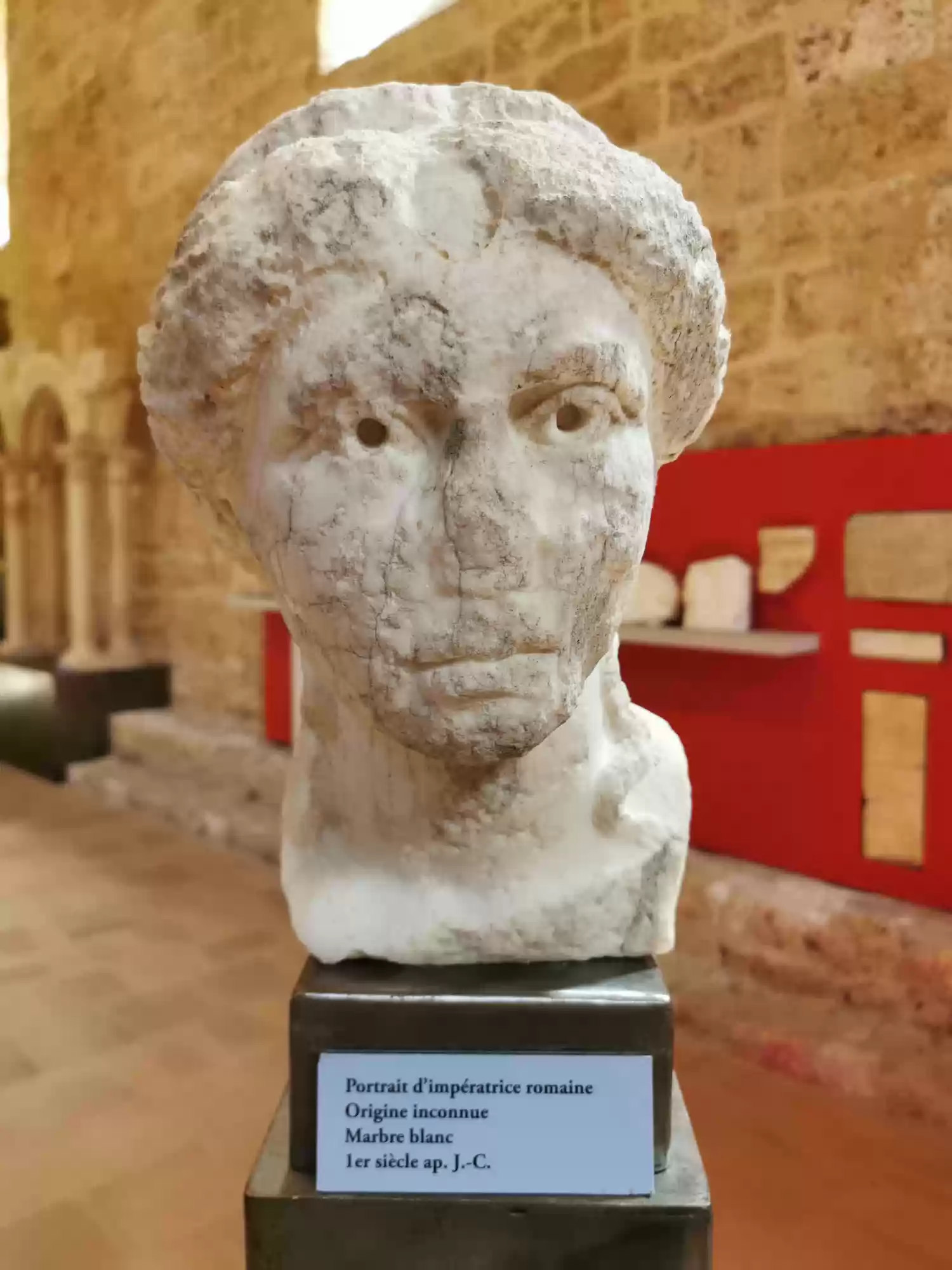 Roman empress, 1st century AD. Female head, second half of the 12th century. Elements of the cloister, ca. 1200. Elements of the cloister, ca. 1200. Elements of the cloister, ca. 1200. Elements of the cloister, ca. 1200. Element of the cloister, late 13th century. Element of the cloister, late 13th century. Elements from the pre-romanesque church, 9-10th centuries. Sarcophagus of Saint Guilhem, marble, 4th century, recut ca. 1200. Sarcophagus of Saint Guilhem, marble, 4th century, recut ca. 1200. Sarcophagus of Albane and Bertrane, marble, 5th century? Sarcophagus of Albane and Bertrane, marble, 5th century? Capital, 1st-2nd century AD. Cloister Labels