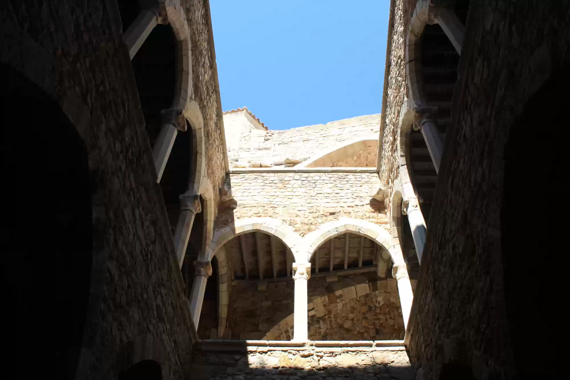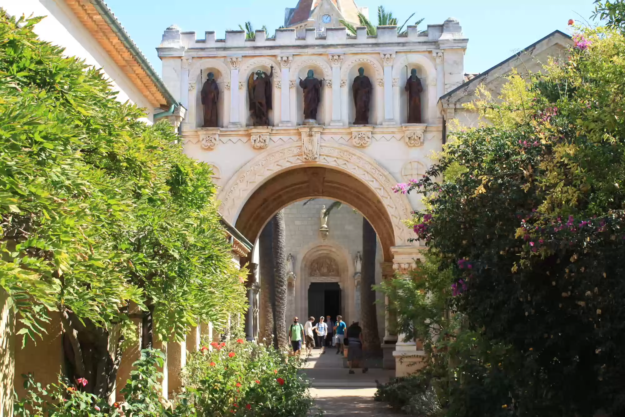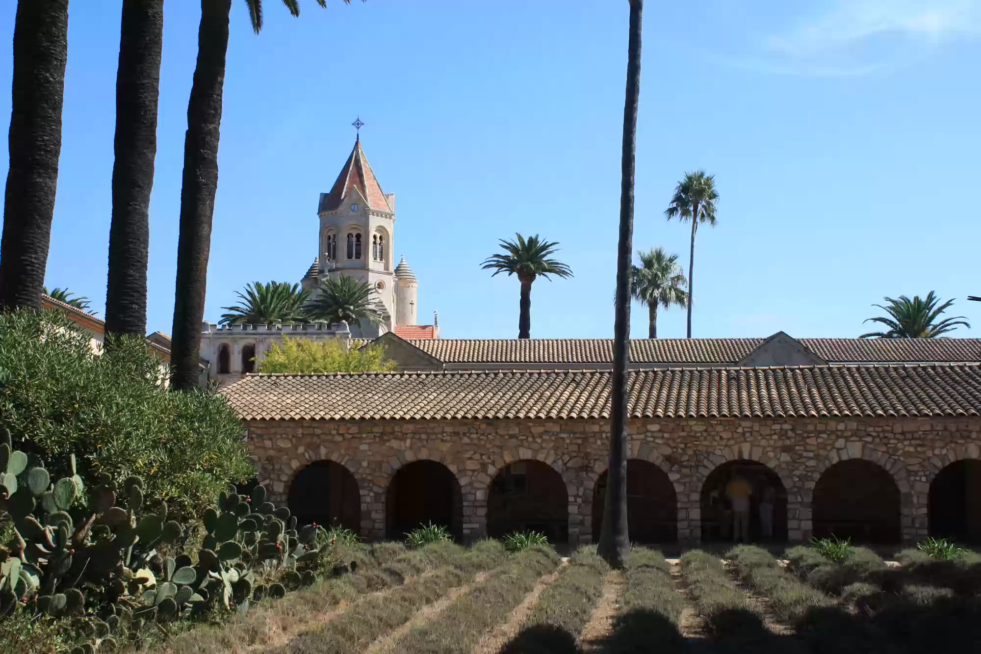 A fortified monastery was built between the 11th and 15th centuries. More recent abbey buildings were added in the 19th centuries. Recent abbey buildings. Recent abbey buildings. Recent abbey buildings. Recent abbey buildings. Recent abbey buildings. Recent abbey buildings. Recent abbey buildings. 20th century church. 20th century church. Fortified monastery (middle ages). Fortified monastery (middle ages). Fortified monastery (middle ages). Fortified monastery (middle ages). Two-level cloister from the 15th century. Downstairs: work cloister. Upstairs: prayer cloister. Two-level cloister from the 15th century. Downstairs: work cloister. Upstairs: prayer cloister. Cloisters. Labels