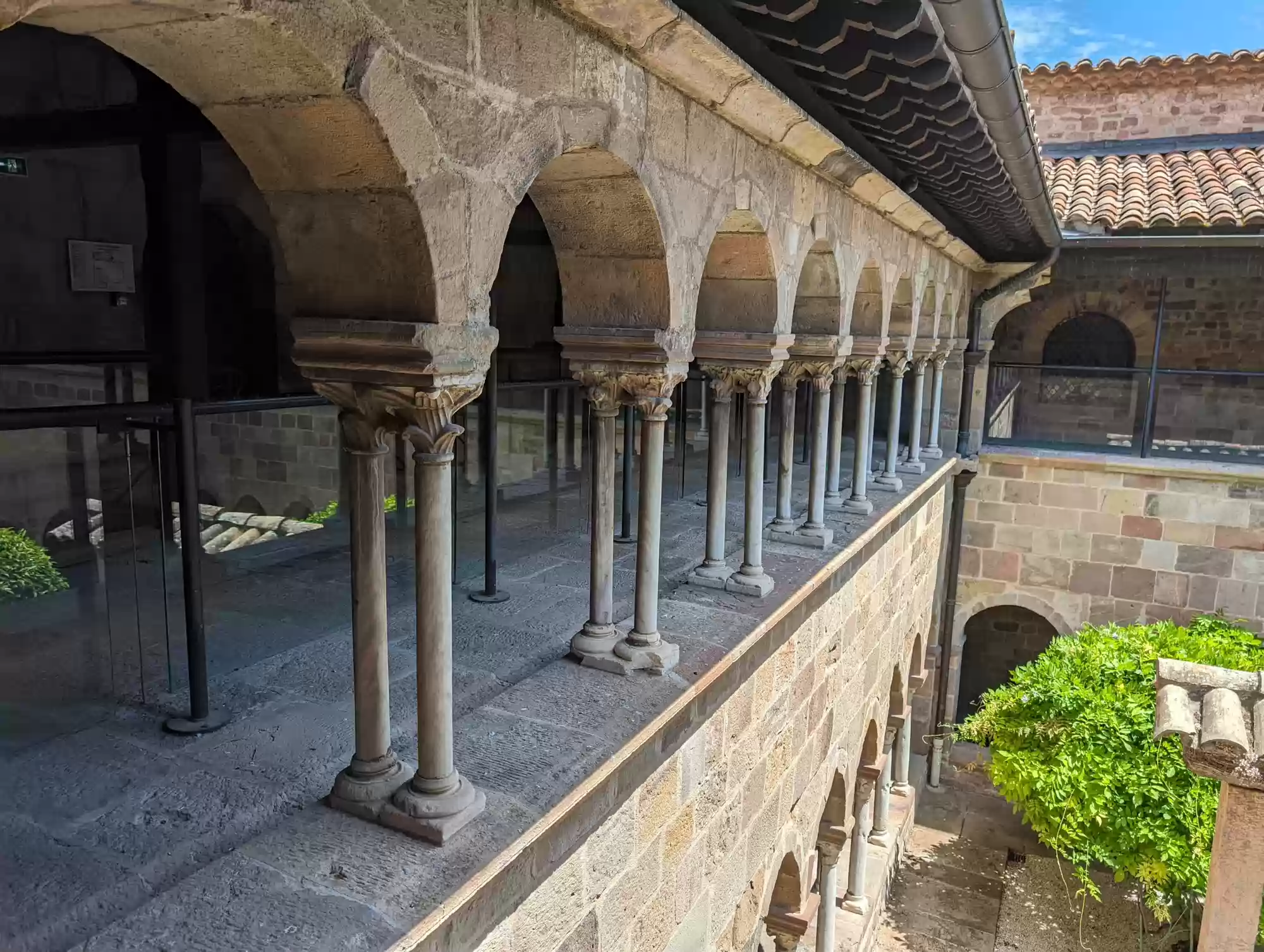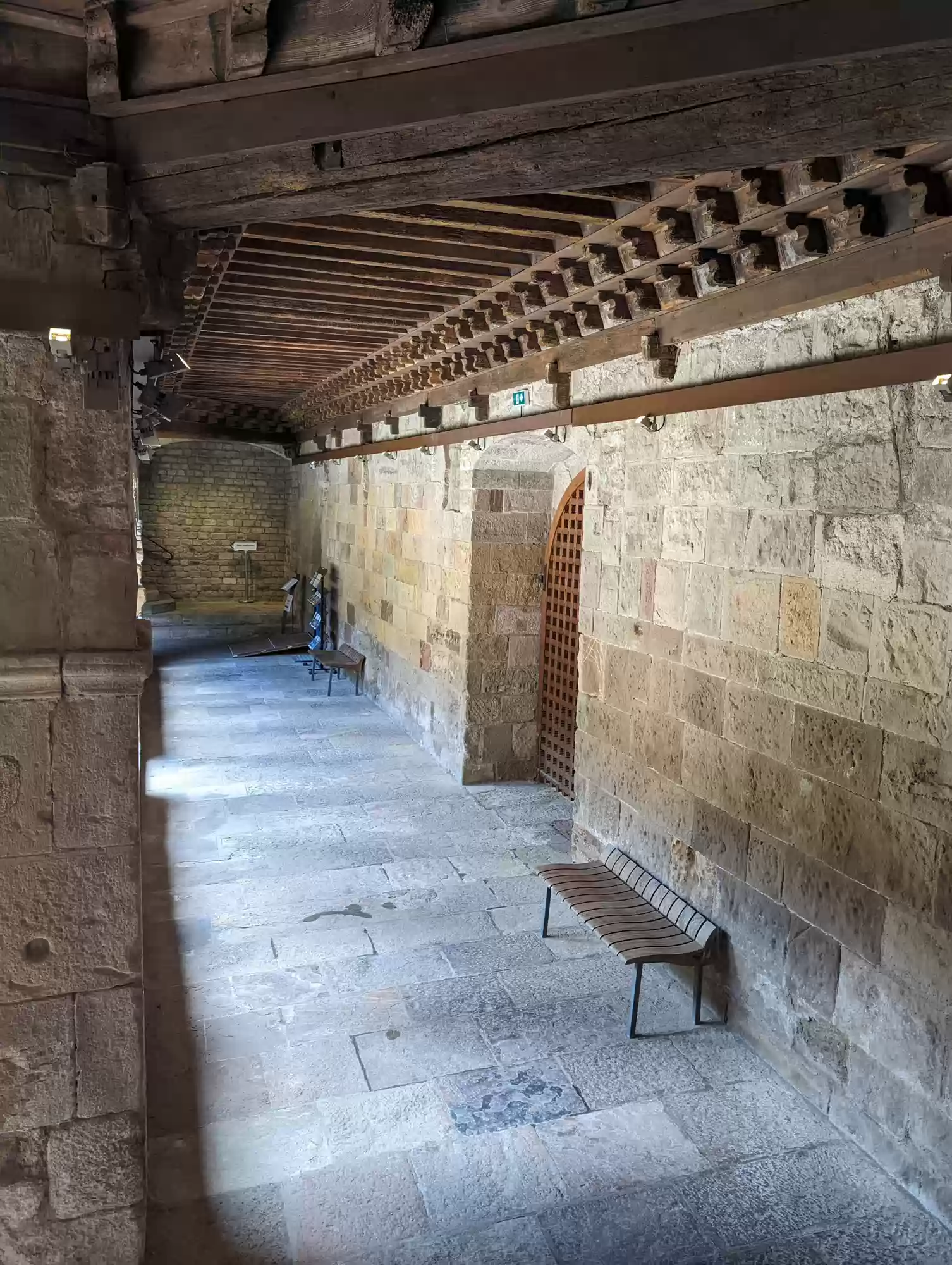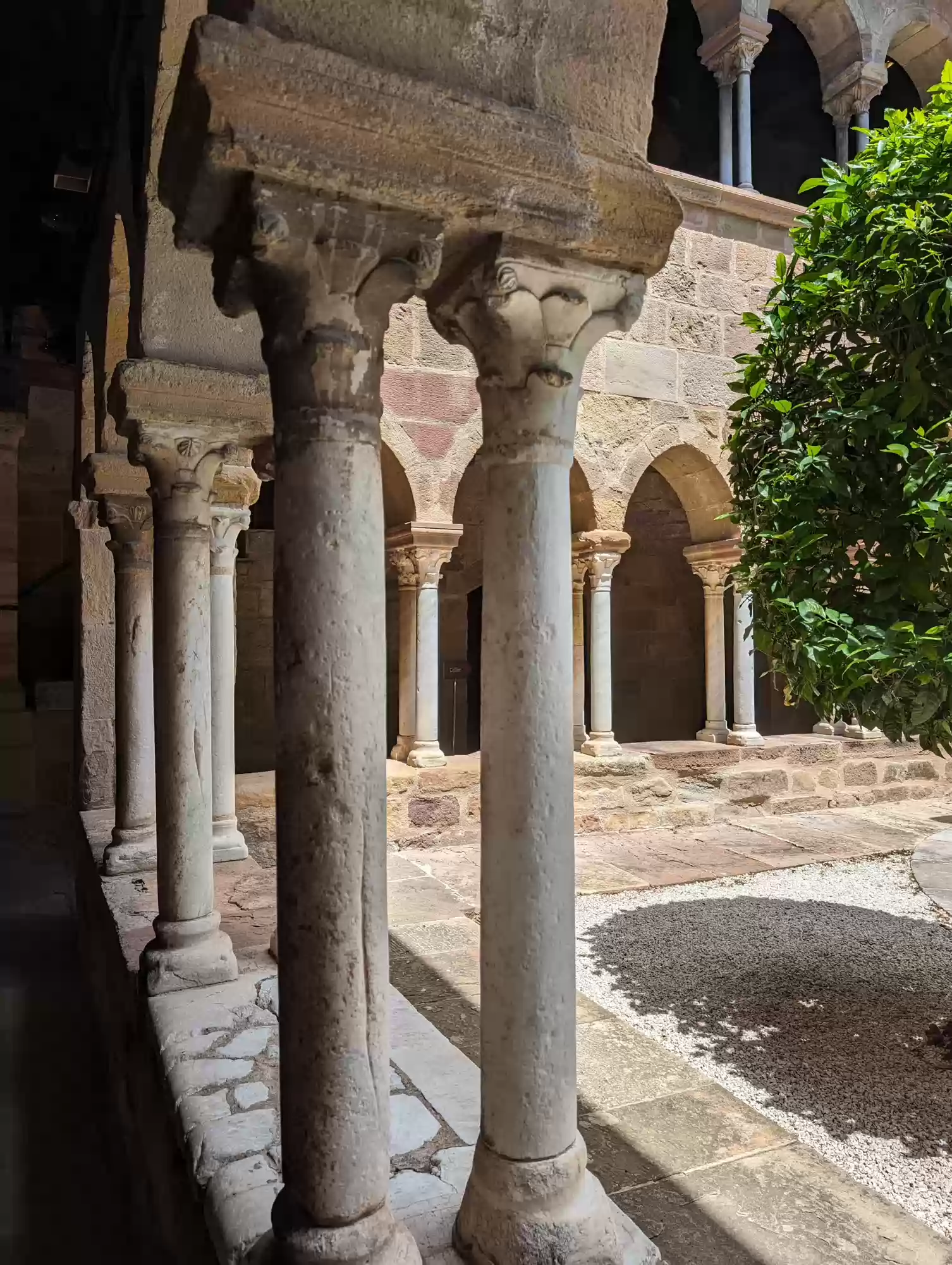 PXL_20240615_105254155 Cloister, 13th century, built of Esterel (a nearby volcanic mountain) stone and Carrara marble columns. The wooden ceiling was built in the 14th century, when...
