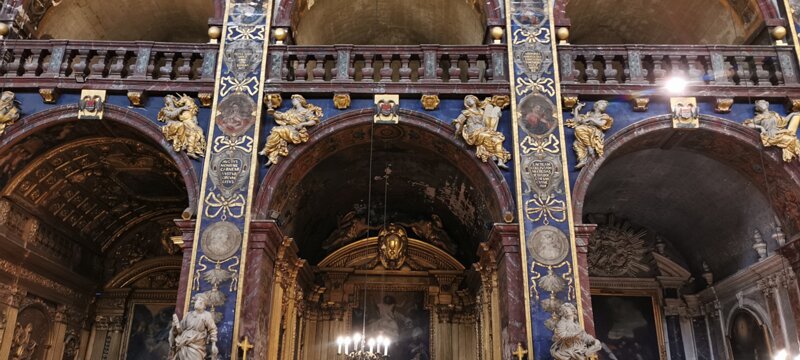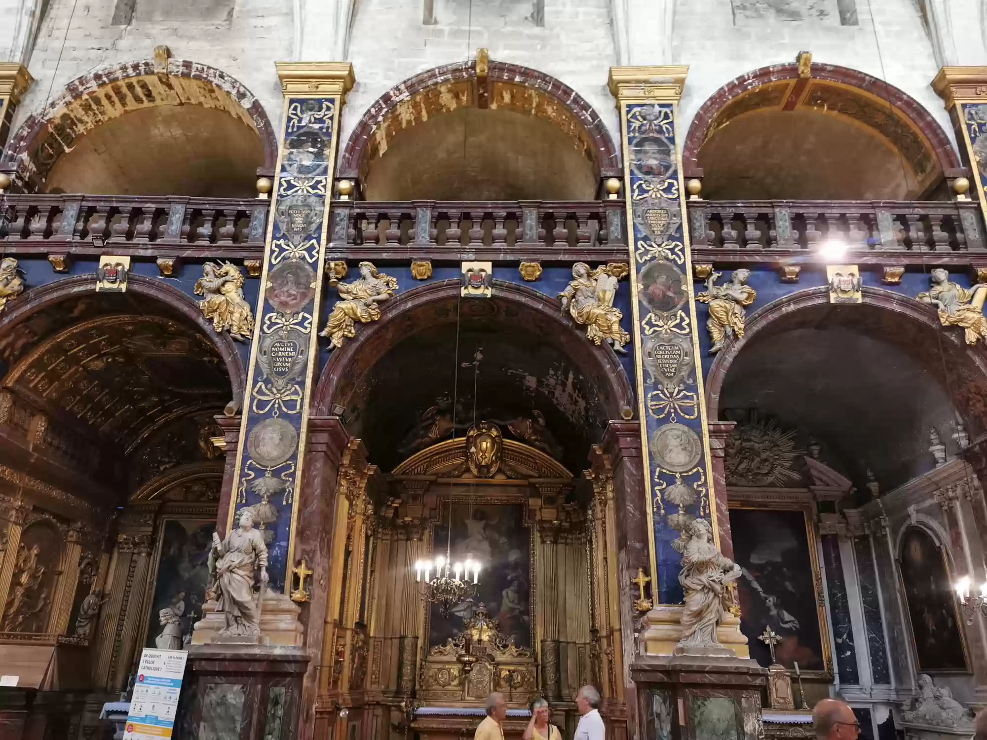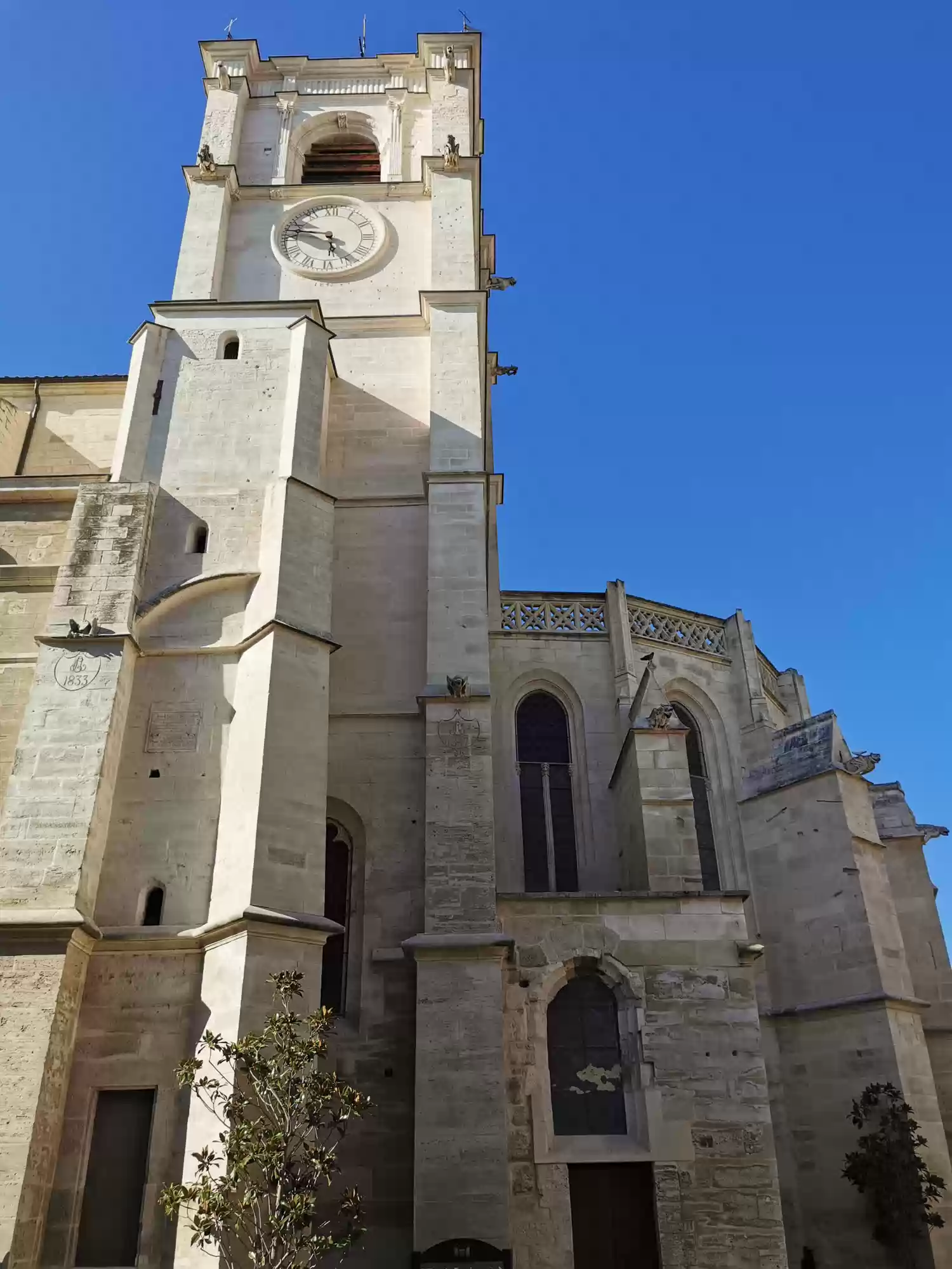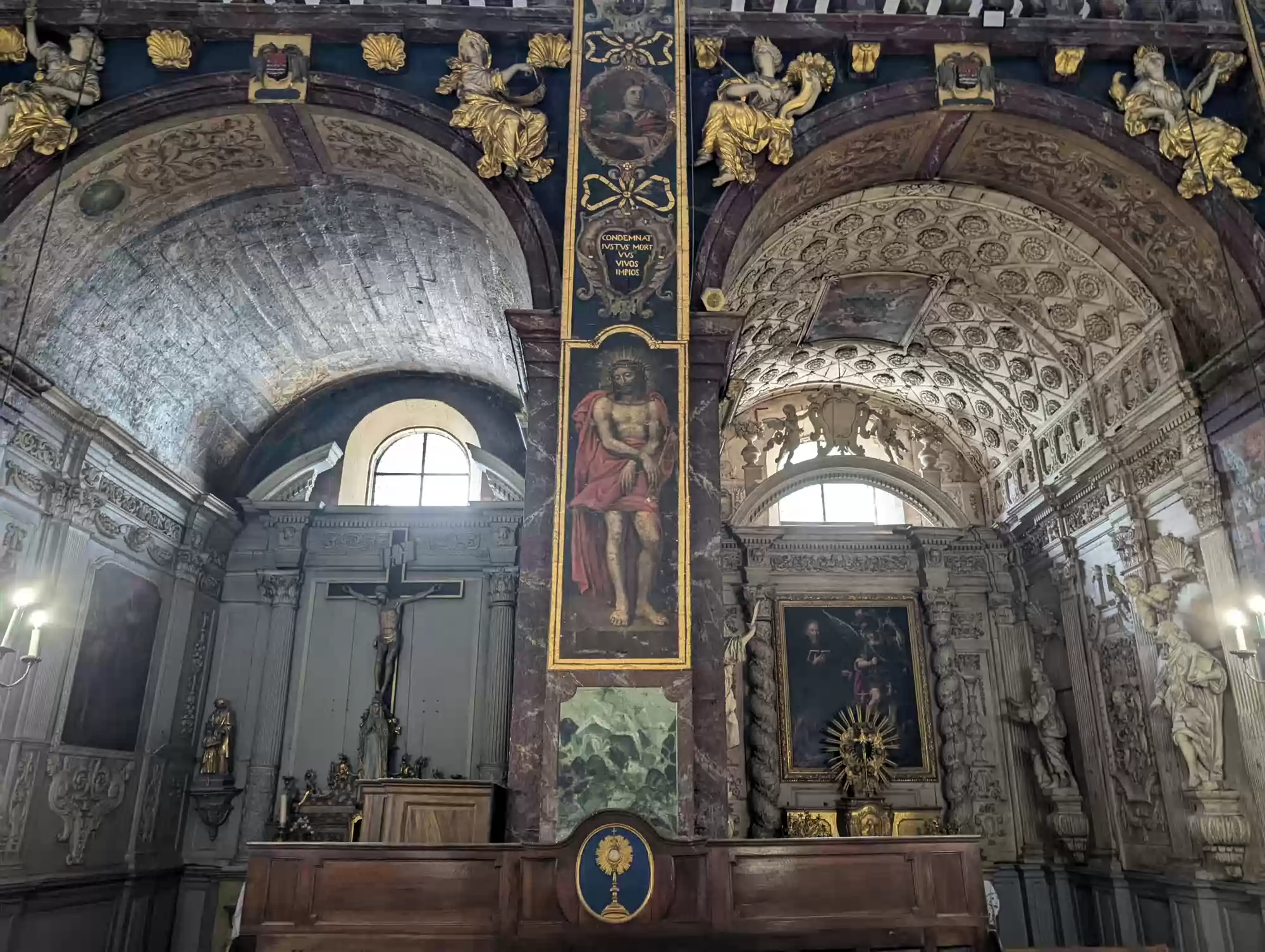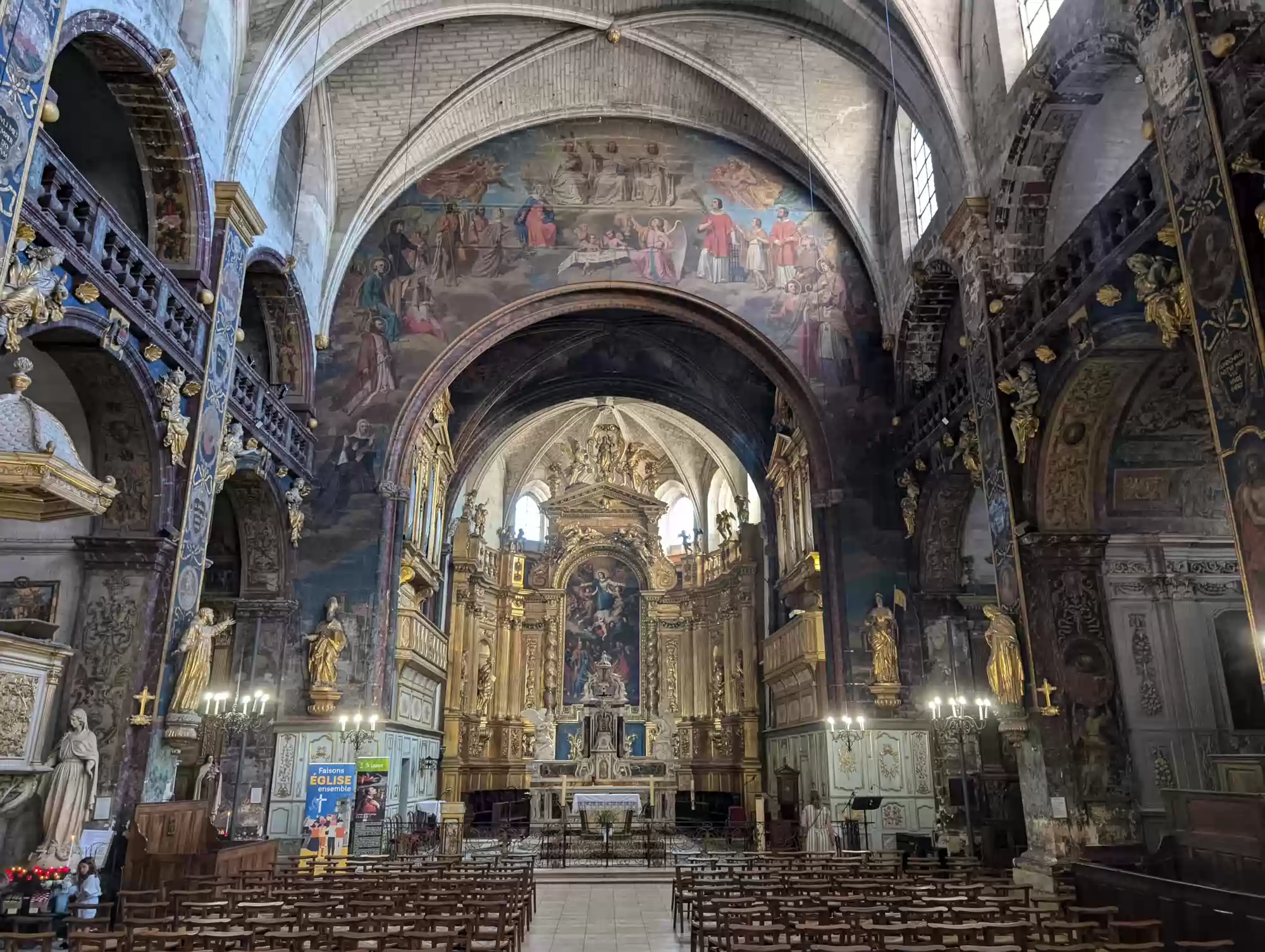 Collegiale Notre-Dame-des-Anges, founded 1212, rebuilt in the 15th century (steeple, apse) and 17th century (nave). Labels