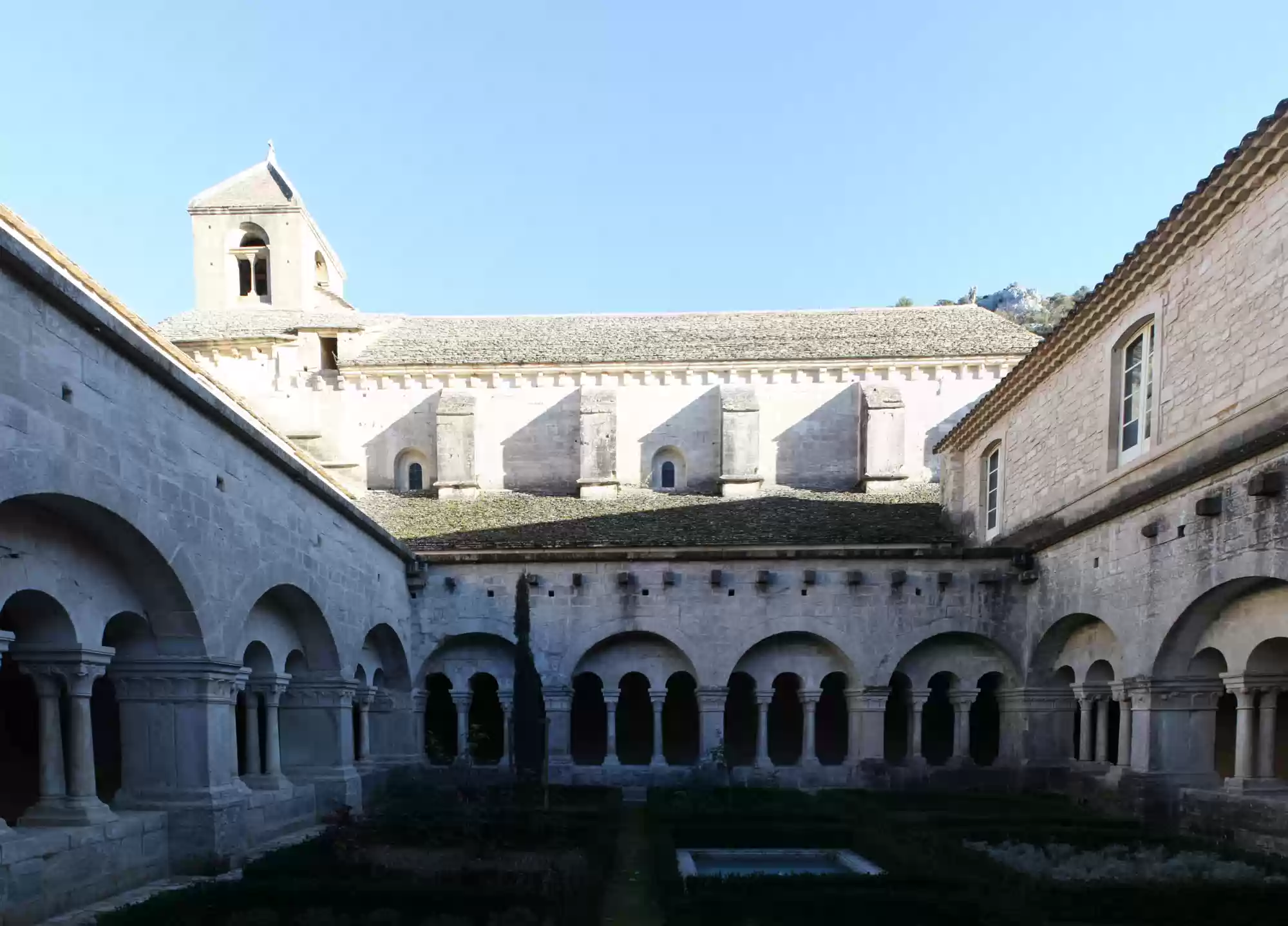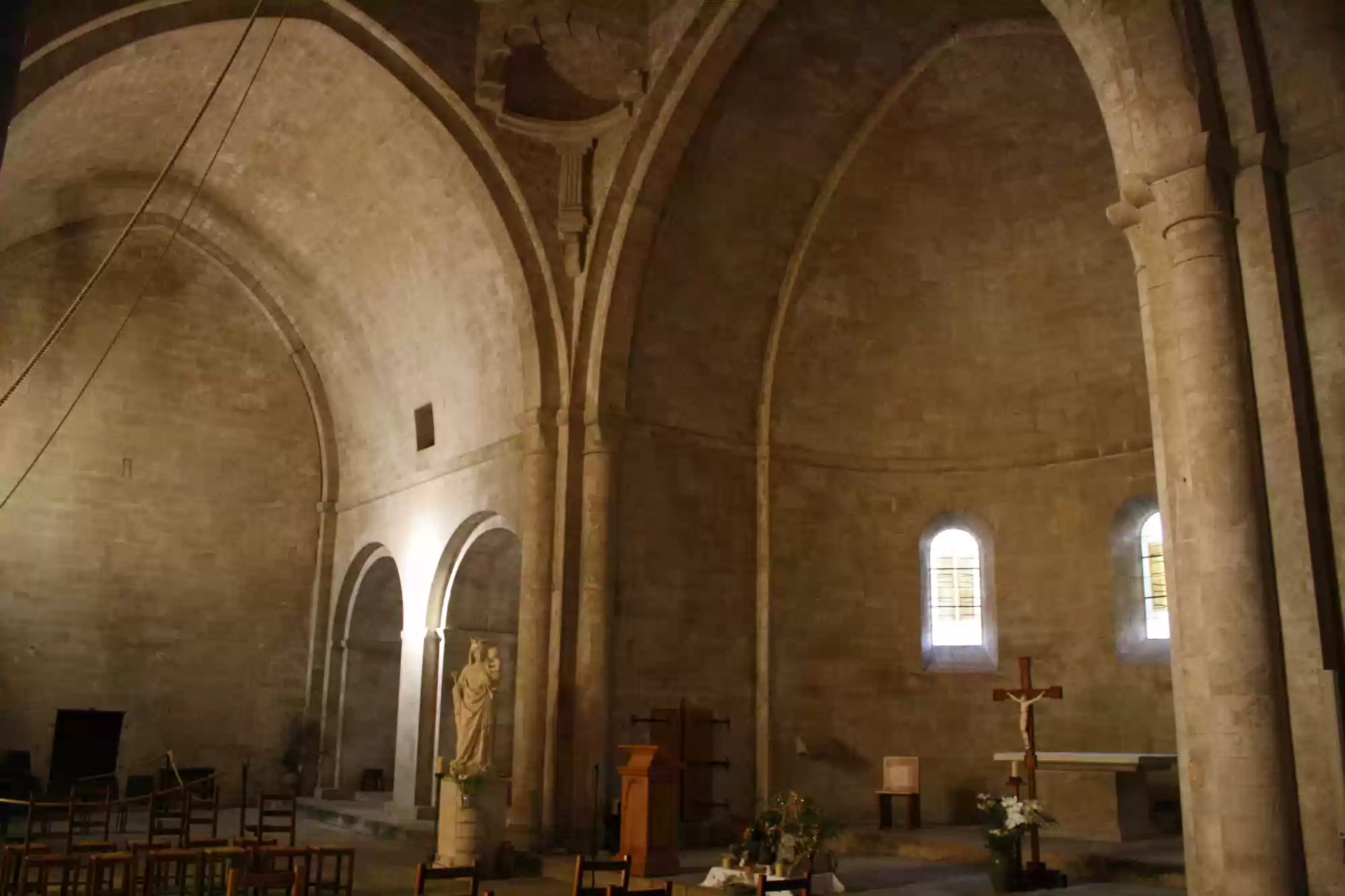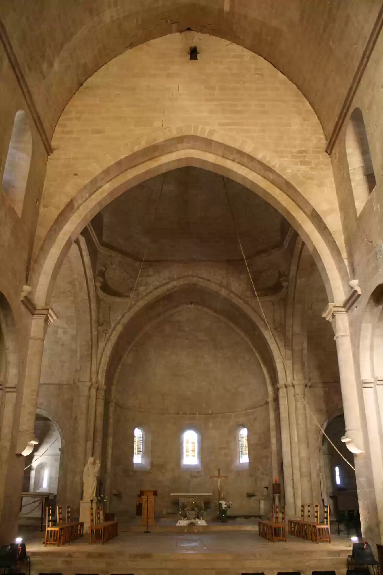 The abbey church, in plain romanesque style, with no decoration so as not to disturb the praying monks.