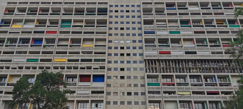 Apartment16 images La Cité Radieuse, or Unité d'habitation, built by Le Corbusier in 1947-1952. As a vertical city, the building contains 337 apartments, a school, a… Entrance of the complex. Entrance of the complex. Entrance of the complex. Borely parkCorniche Labels