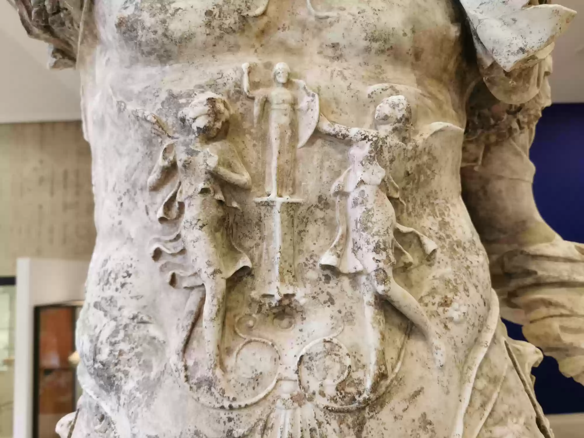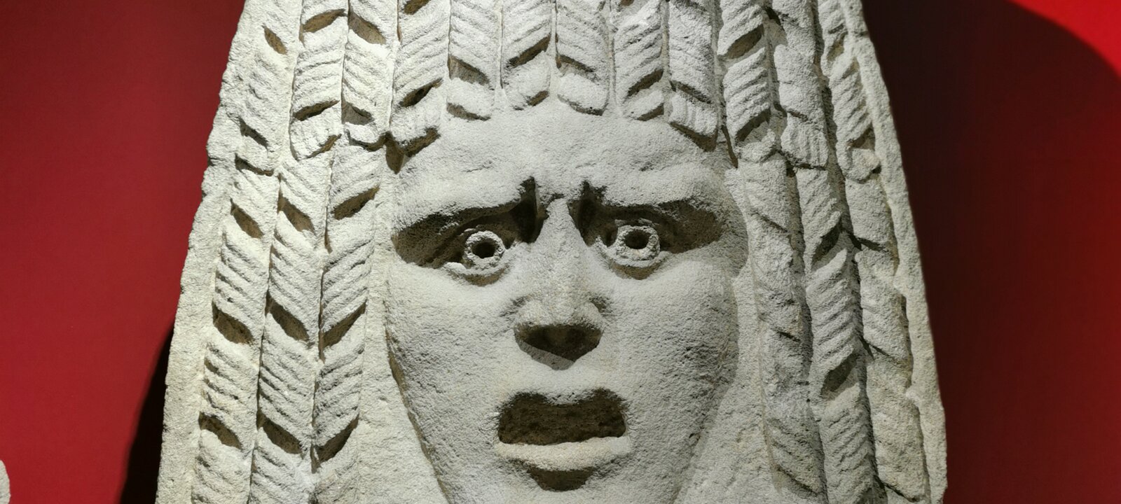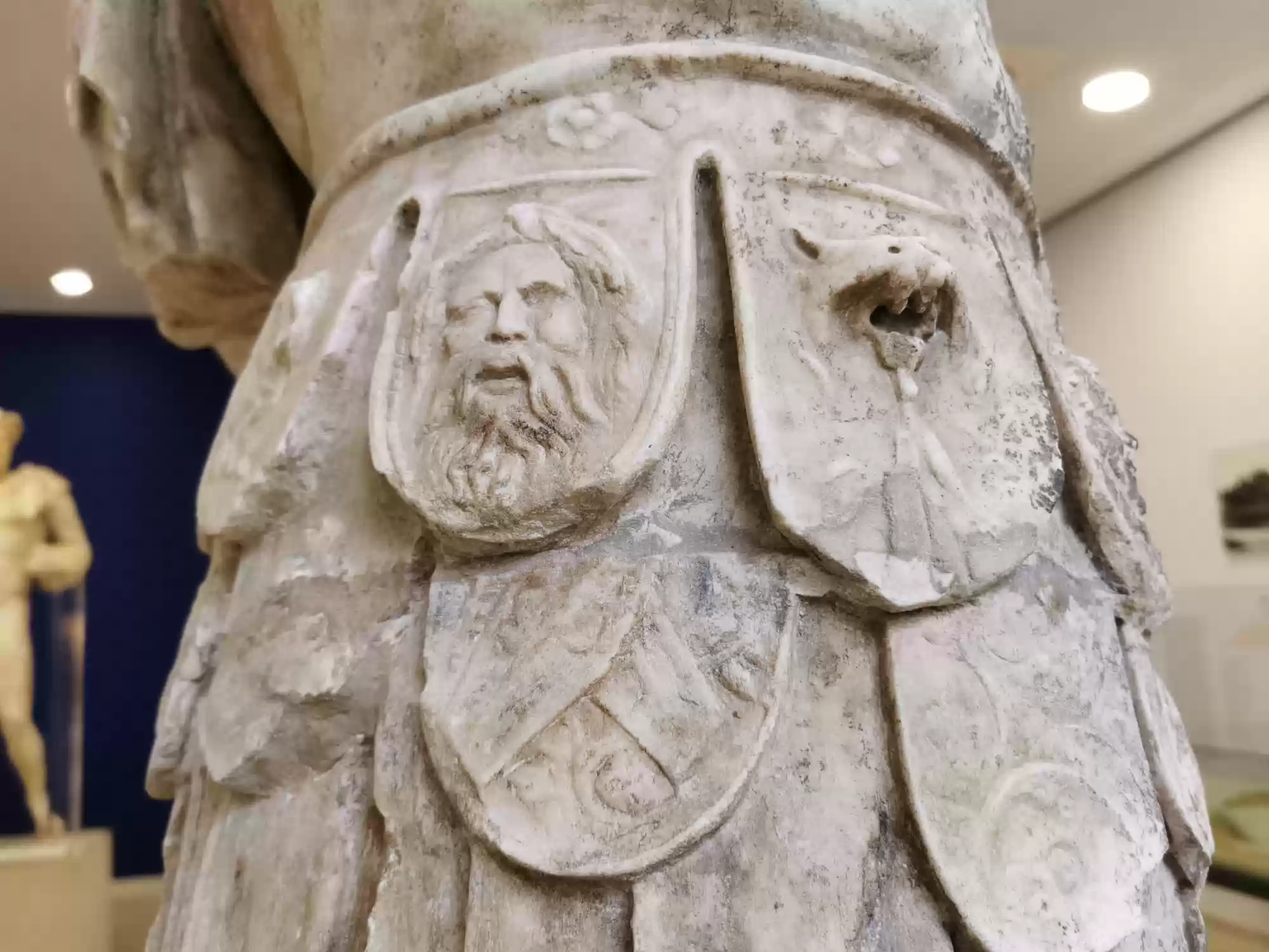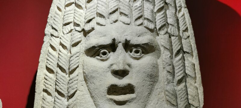 This mosaic is one of the six polychrom pavings (200 m2 of decor) in the Peacock domus, a large house (middle of Ile century…