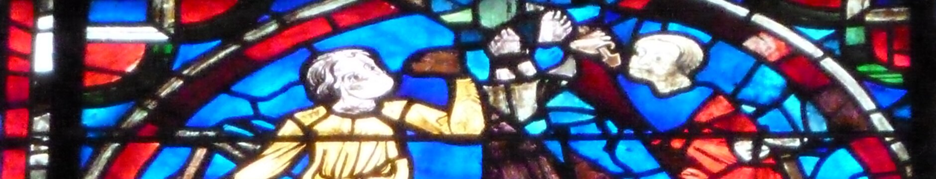 South rose, 15th century by André Robin. Christ of the Apocalypse transforming the times revolving around him.