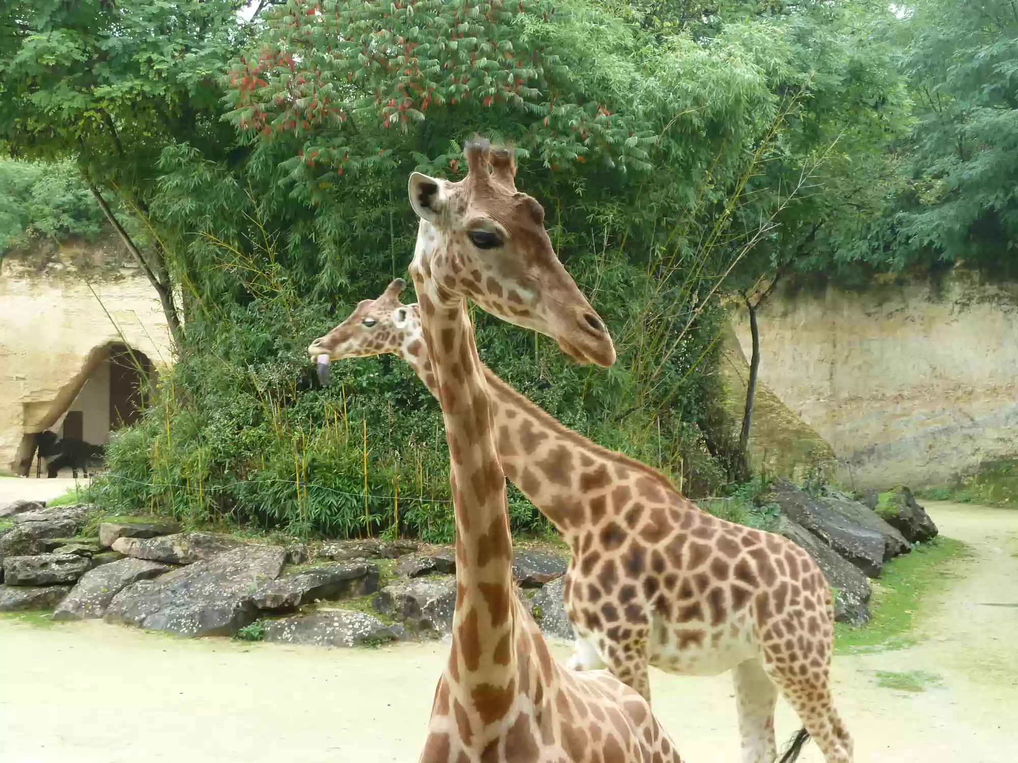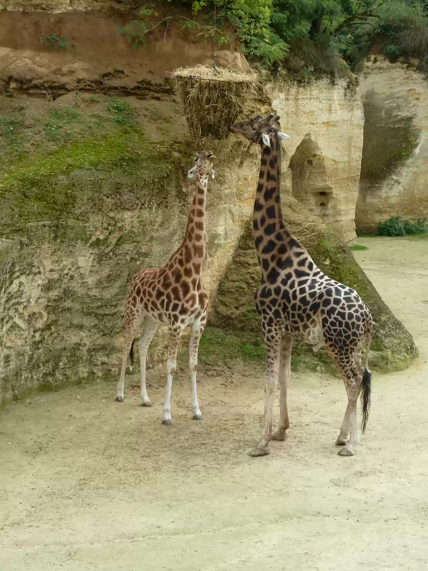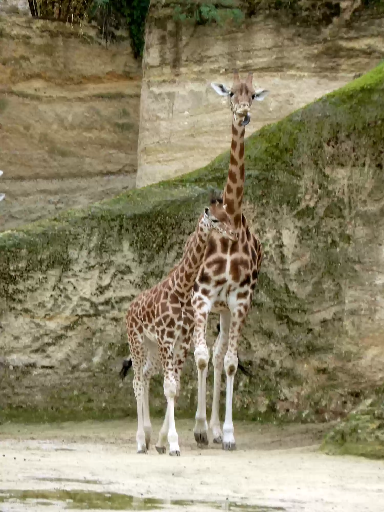 Giraffes darken as they grow old. The giraffe on the right-hand side is above 25 years old, the life expectation of giraffes, Old giraffe. Old giraffe. FelidsMonkeys Labels