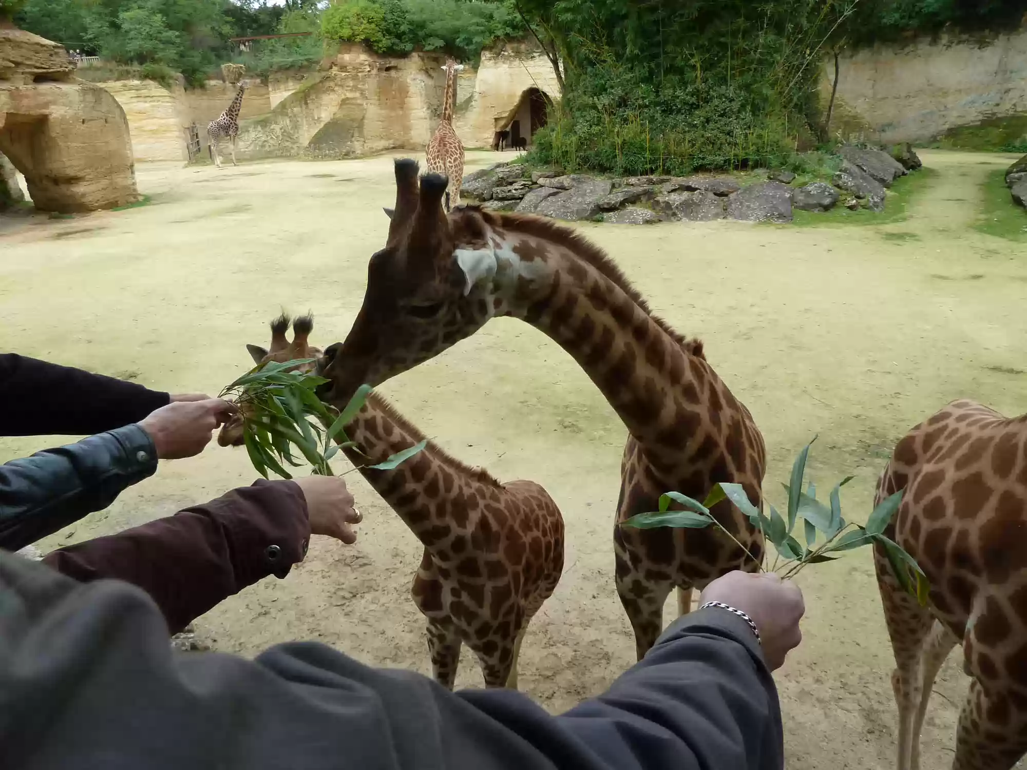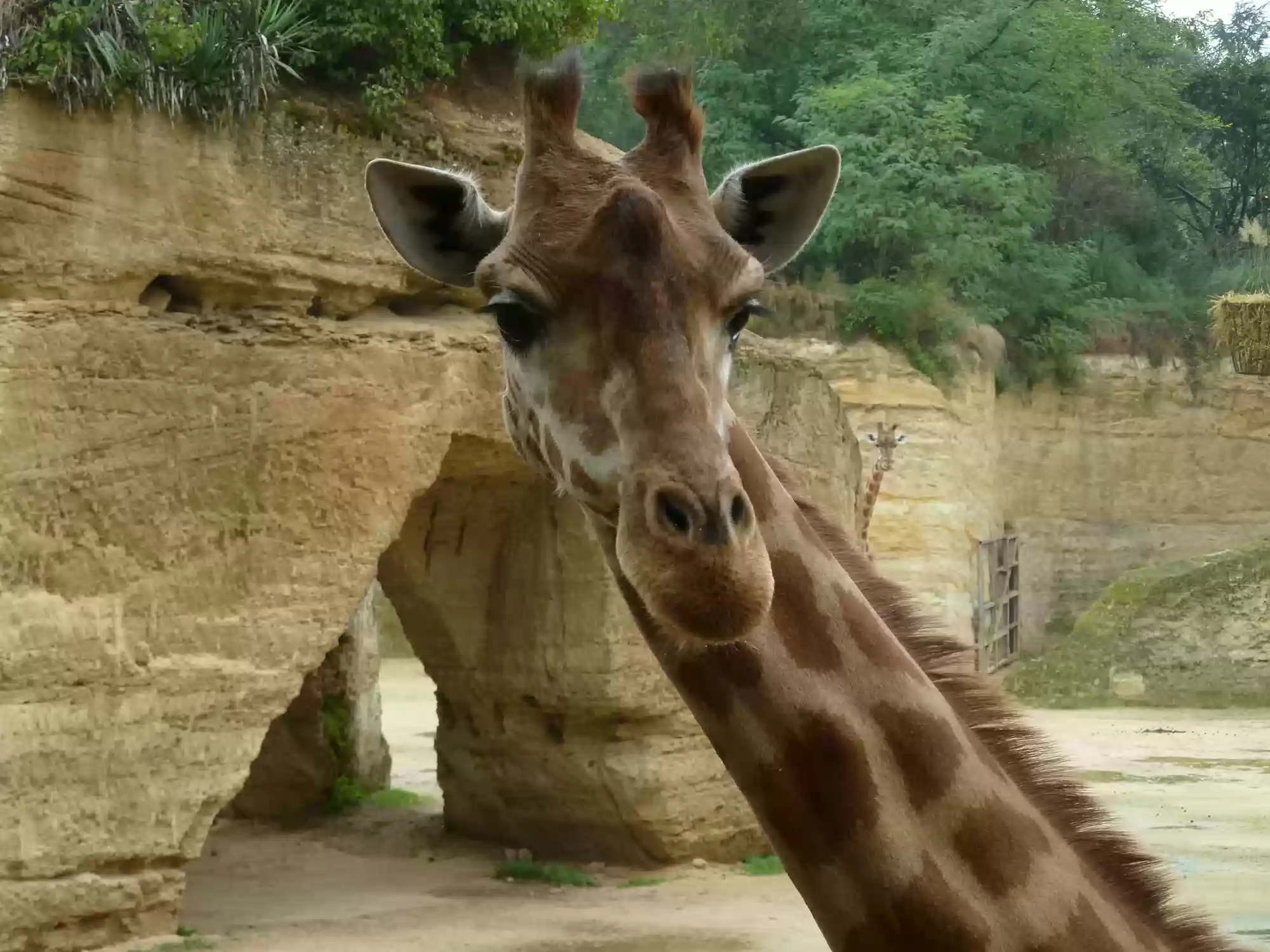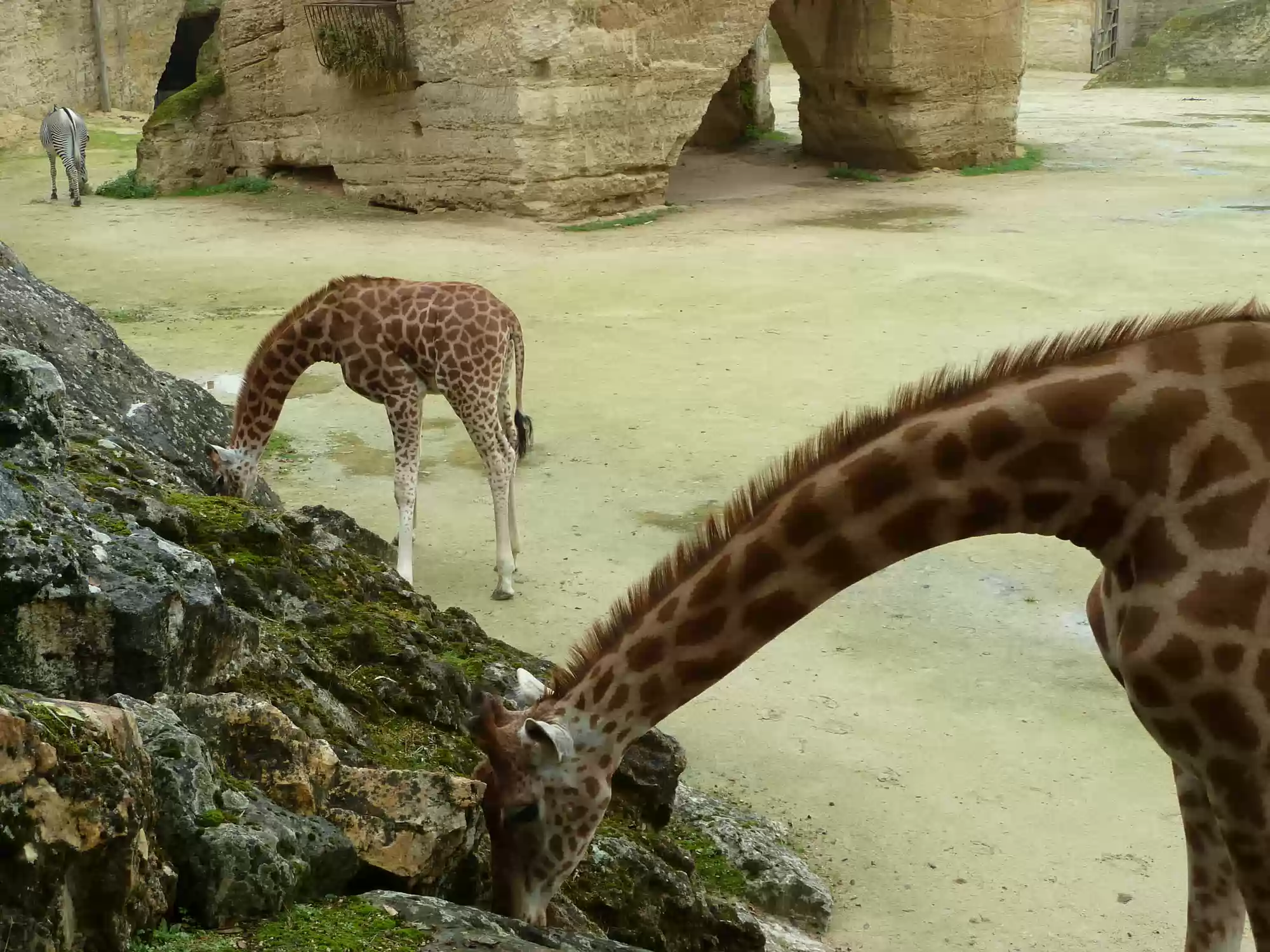 Giraffes darken as they grow old. The giraffe on the right-hand side is above 25 years old, the life expectation of giraffes, Old giraffe. Old giraffe. FelidsMonkeys Labels