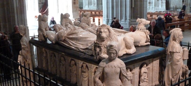 Saint-Peter-and-Saint-Paul cathedral, built between 1434 and 1891 in the gothic style. The apse and north transept were built in the 19th century, after the destruction of the city wall. The facade was completed in the 15th century. Recumbant effigy of François II, duke of Brittany, and his second wife, Marguerite de Foix, parents of Anne of Brittany. The tomb was built at the… CastleLes machines de l'Ile Labels