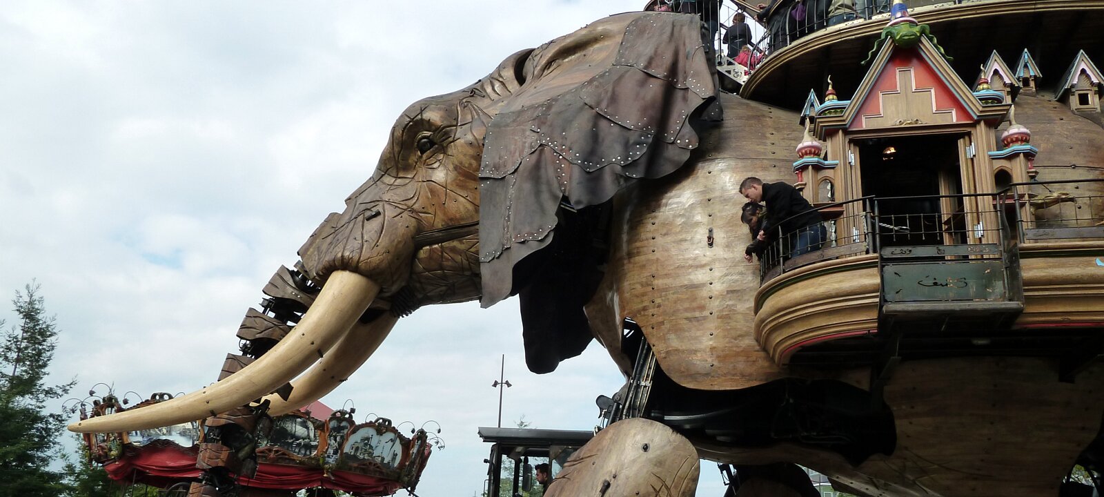 Les machines de l'Ile is a cultural organization that builds large-scale automated machines. Here, the prototype of a branch of a giant tree, which will be…