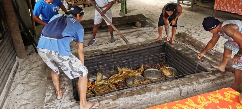 Traditional Tahitian oven at Tara's restaurant. Traditional Tahitian oven at Tara's restaurant. South Labels